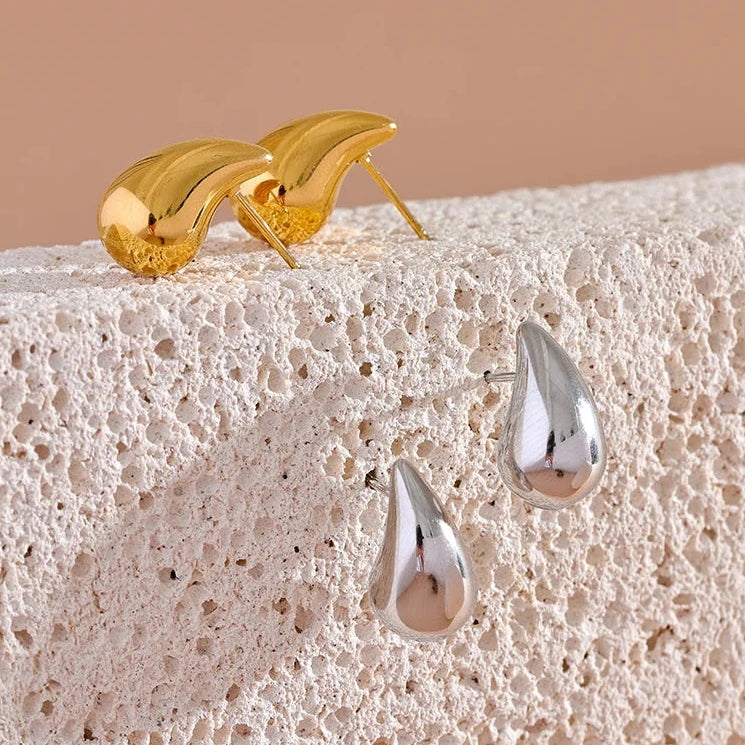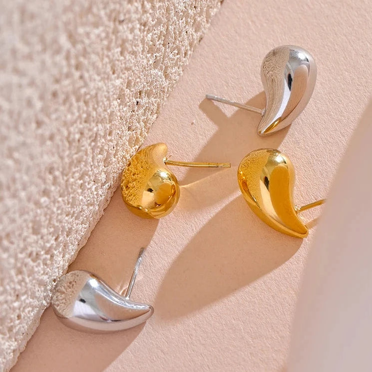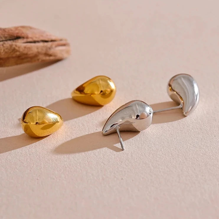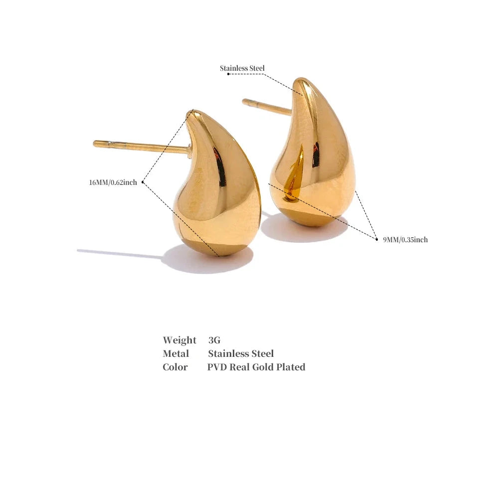 Introducing the smaller chic daily water drop earrings. Made with high quality materials, these waterproof studs are perfect for everyday wear. Add a touch of elegance to your outfit. They come in cute reusable pouches.