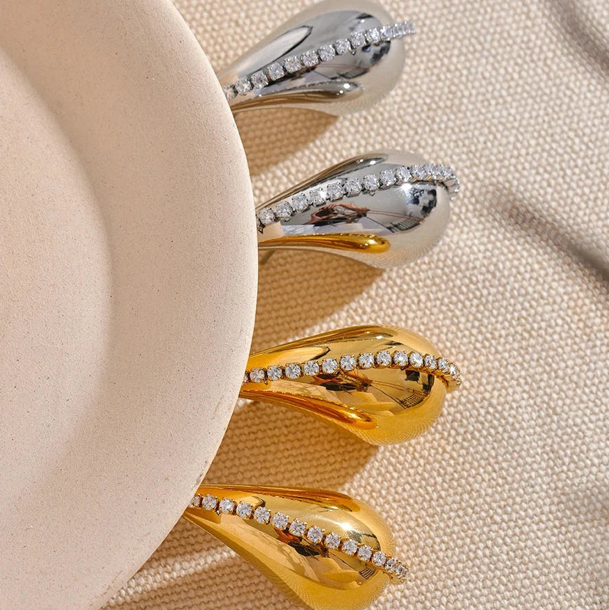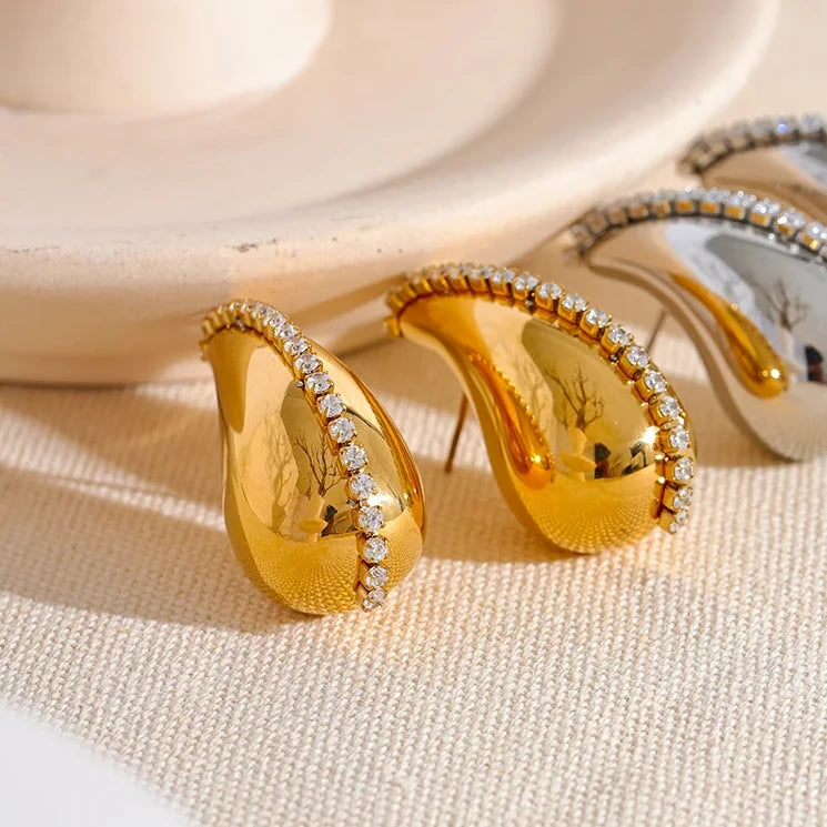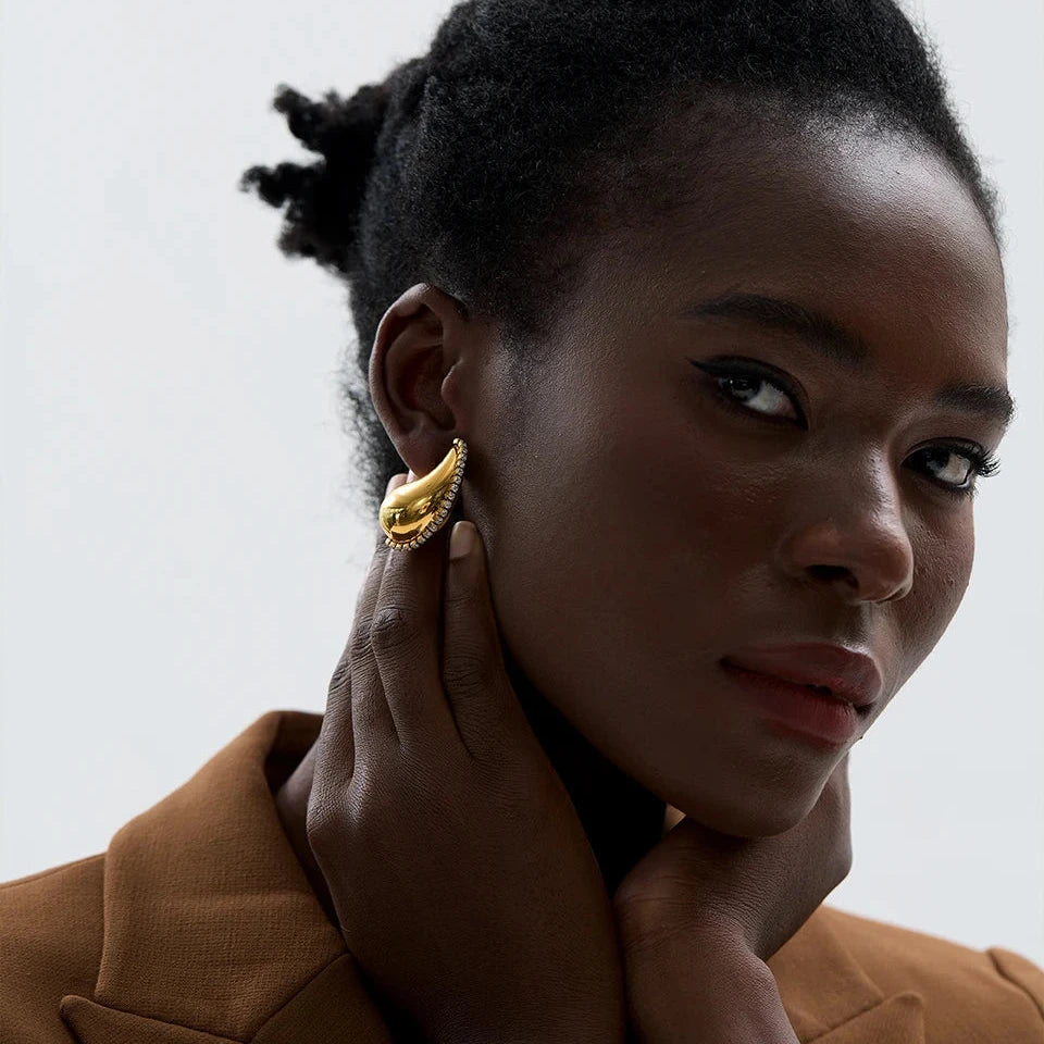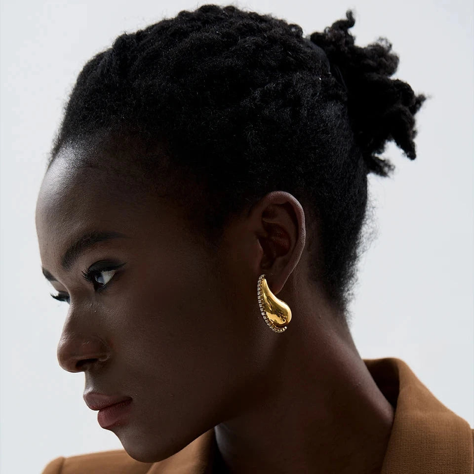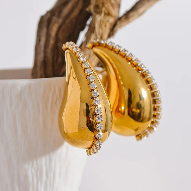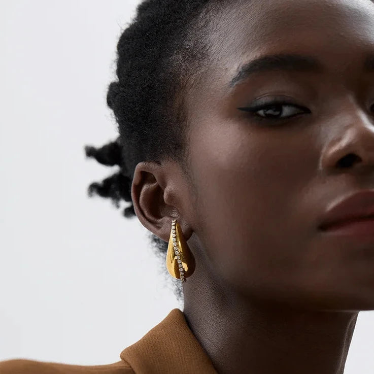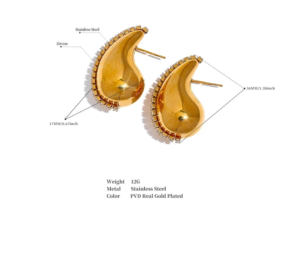 These stunning water drop earrings are a must-have. Crafted with high-quality stainless steel and adorned with sparkling cubic zirconia, these earrings offer a touch of elegance to any outfit. The 18K gold plating adds a touch of luxury.