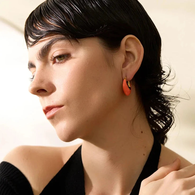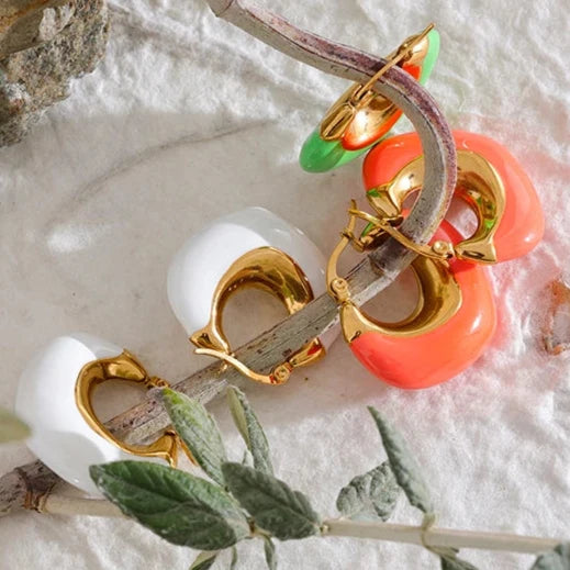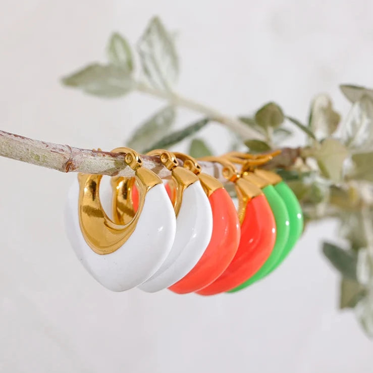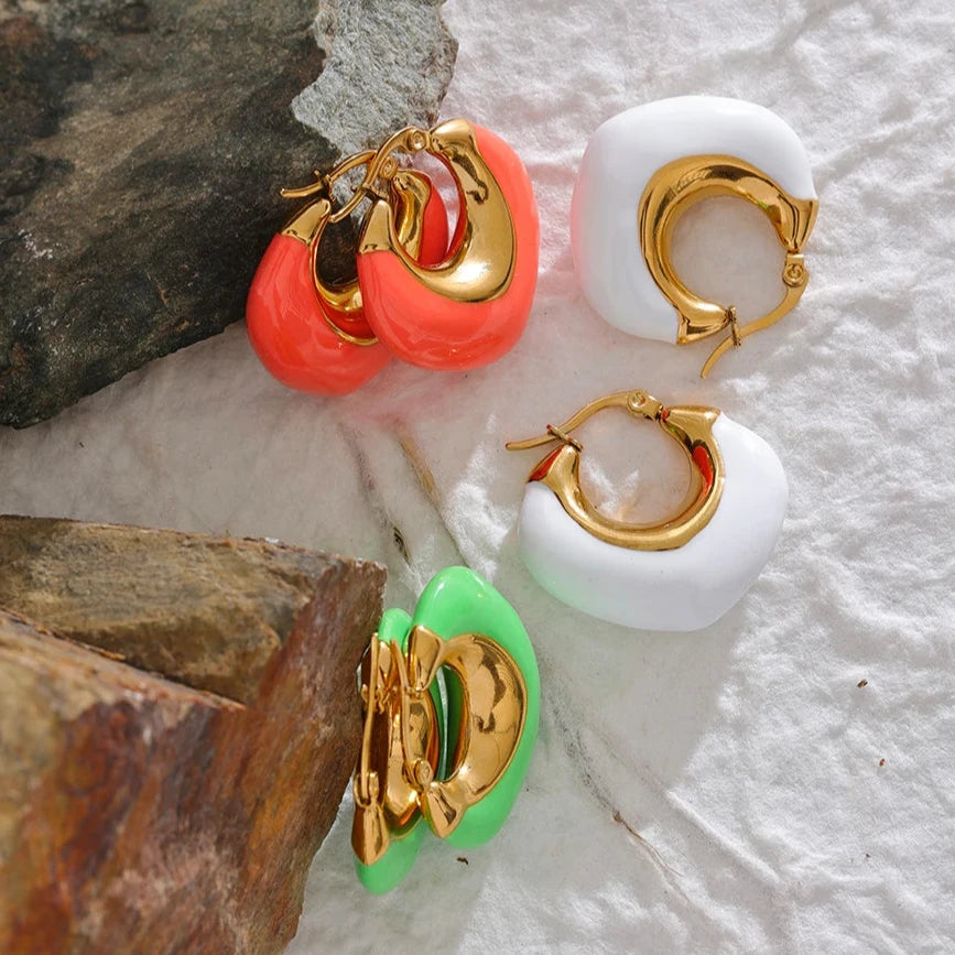 Add a pop of colour to your jewellery collection with these statement enamel stainless steel geometric chunky hoop earrings. Made with high-quality materials, these earrings are not only stylish but also waterproof.