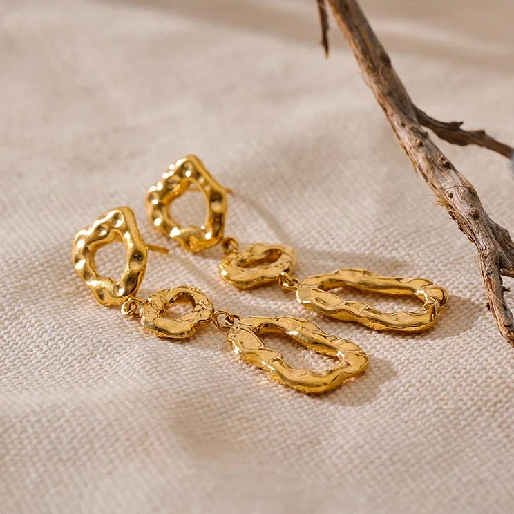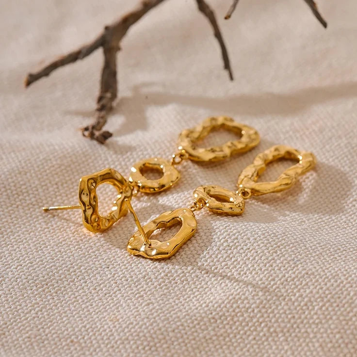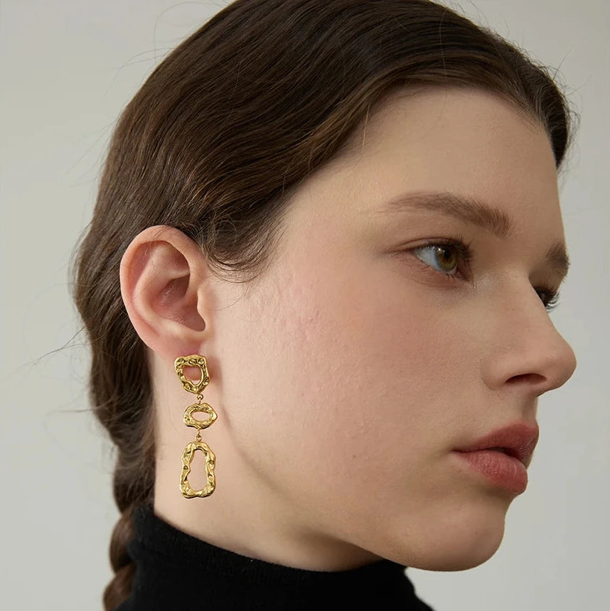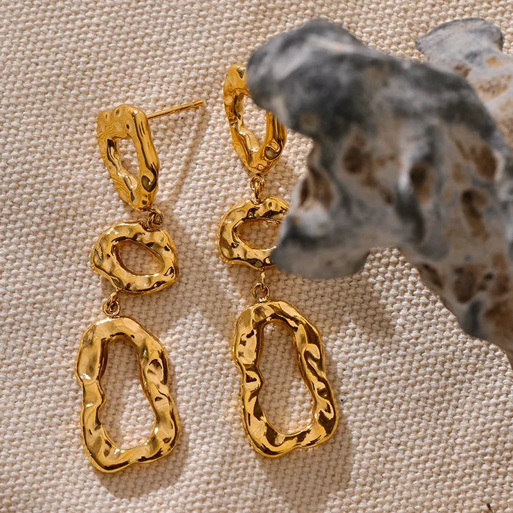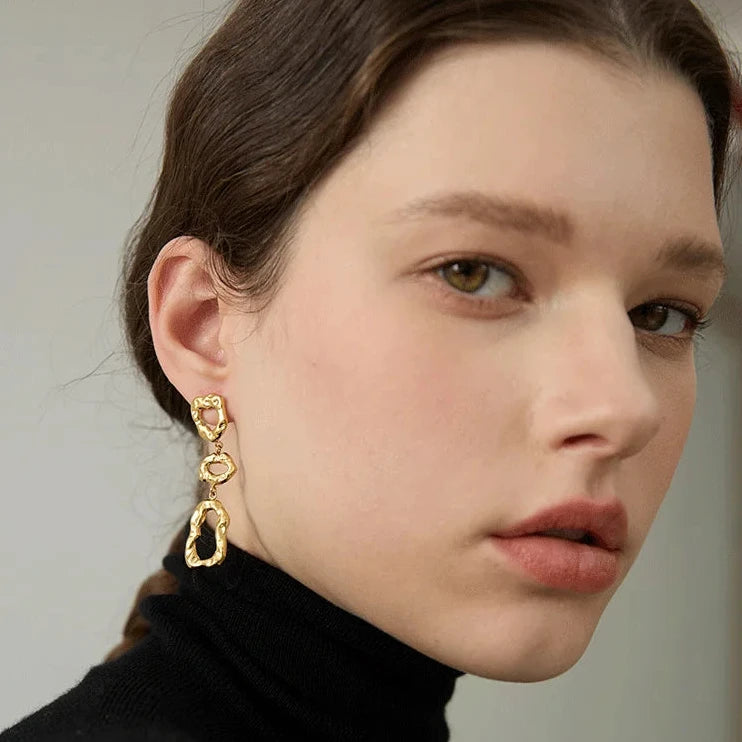 Made from durable stainless steel and featuring a chic geometric design, these earrings are perfect for elevating any outfit. The drop dangle design adds a touch of modern sophistication.