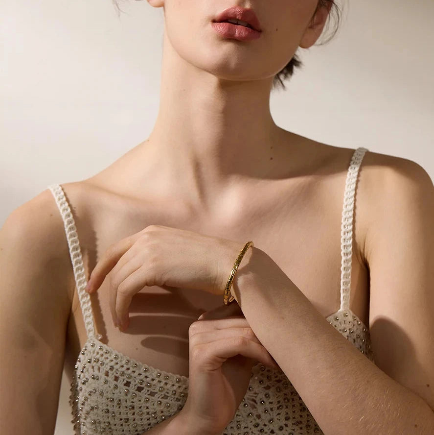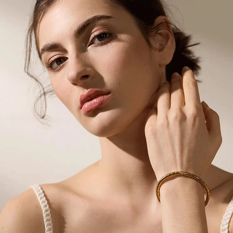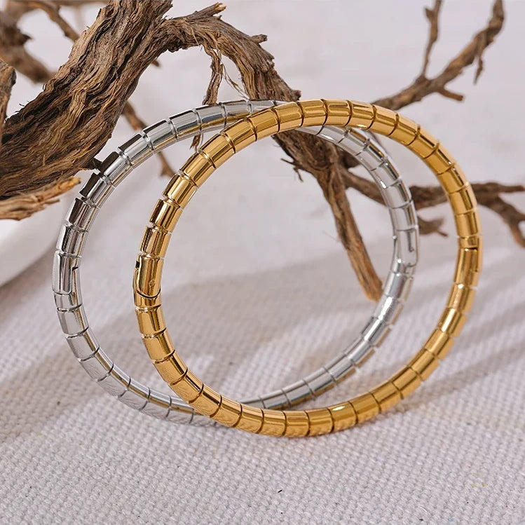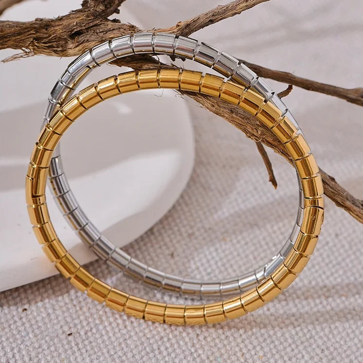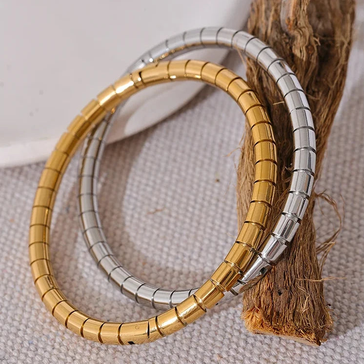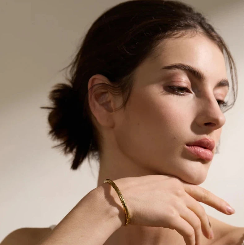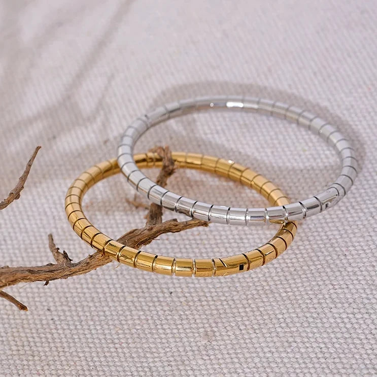 Made with high-quality stainless steel, this bracelet is rust-proof and comes in gold and silver colours. Elevate your style with this sleek stackable piece. Beautiful for everyday wear, alone or paired.