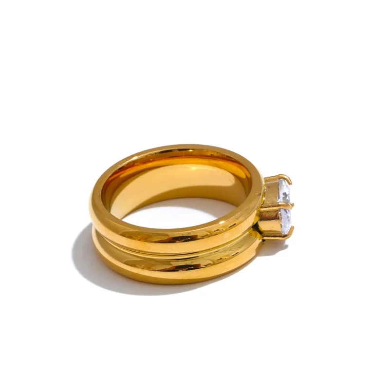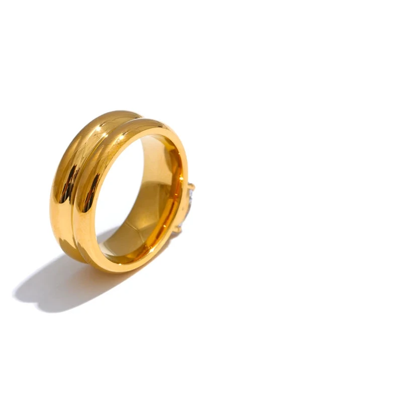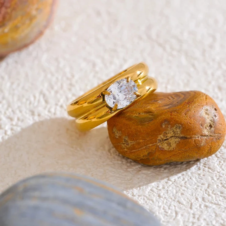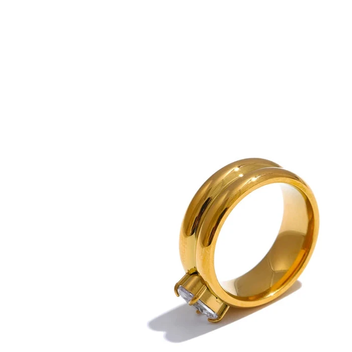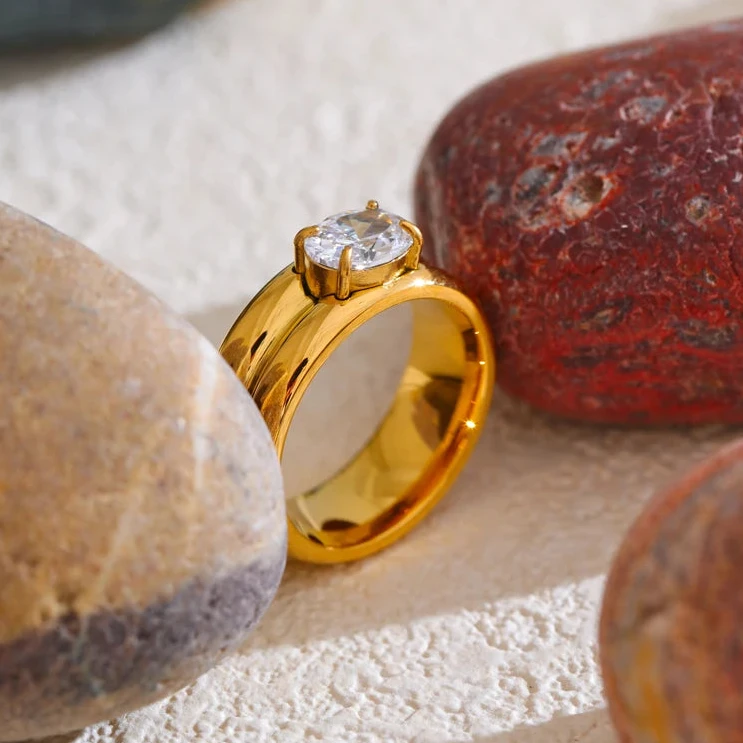 Adorned with a brilliant zirconia stone, it offers a sophisticated sparkle that complements any outfit. Its versatile design makes it suitable for both everyday wear and special occasions, combining elegance with resilience for a timeless accessory.