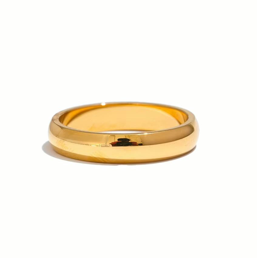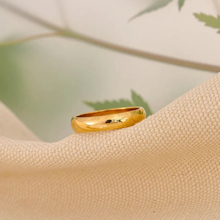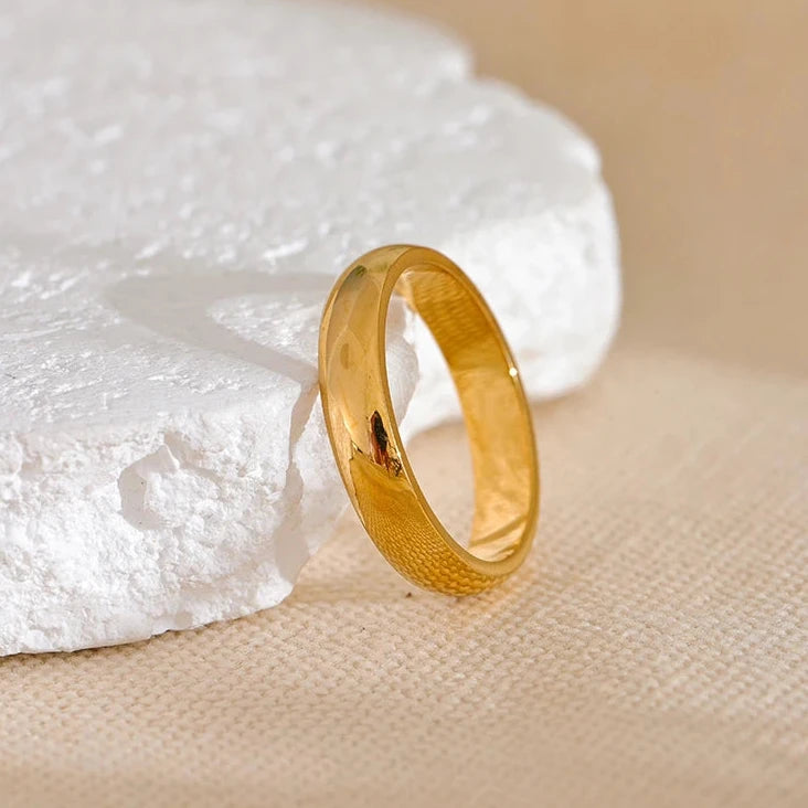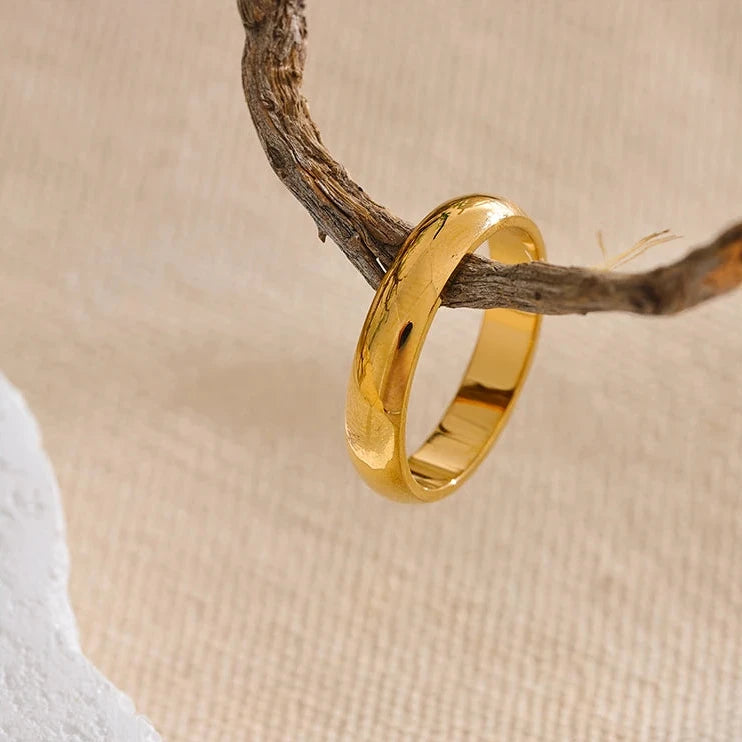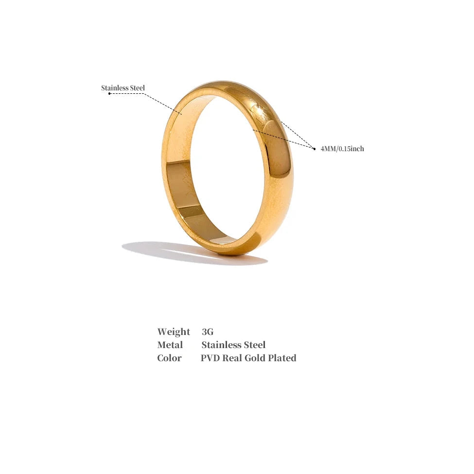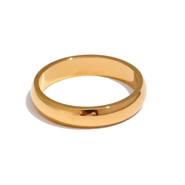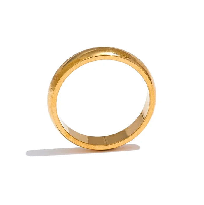 This ring is the perfect combination of style and quality. Made with stainless steel and plated with 18k gold, it is both fashionable and hypoallergenic. The smooth, glossy finish adds a touch of sophistication to any outfit.