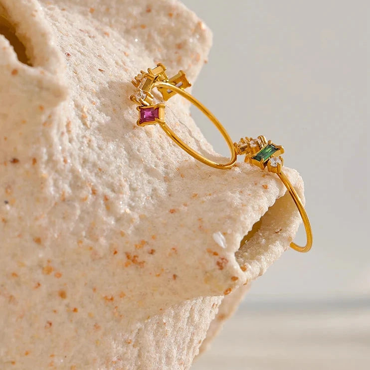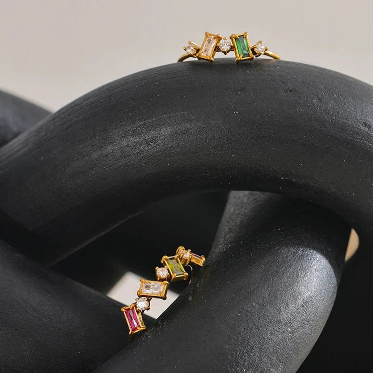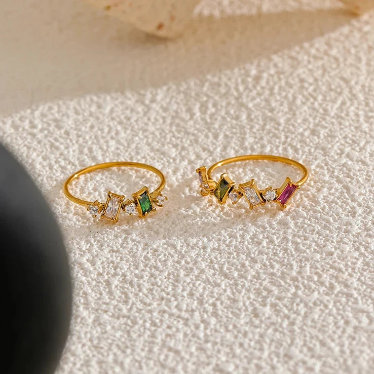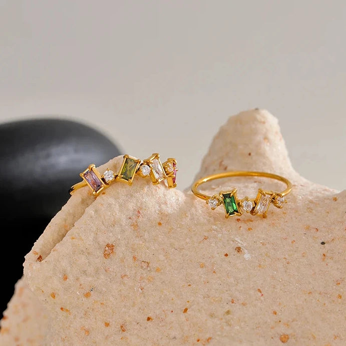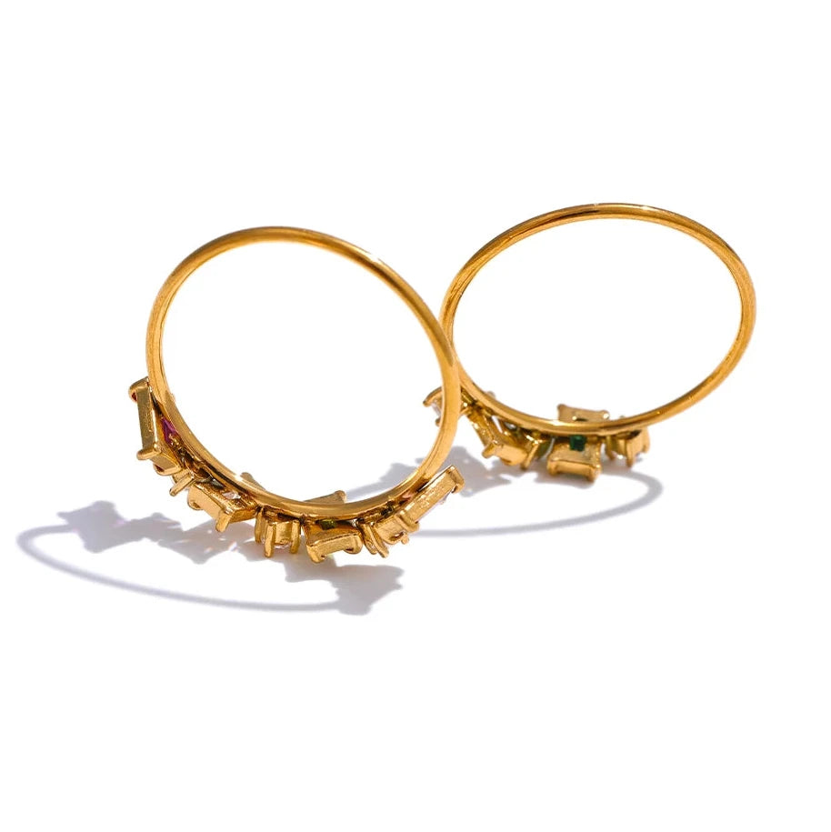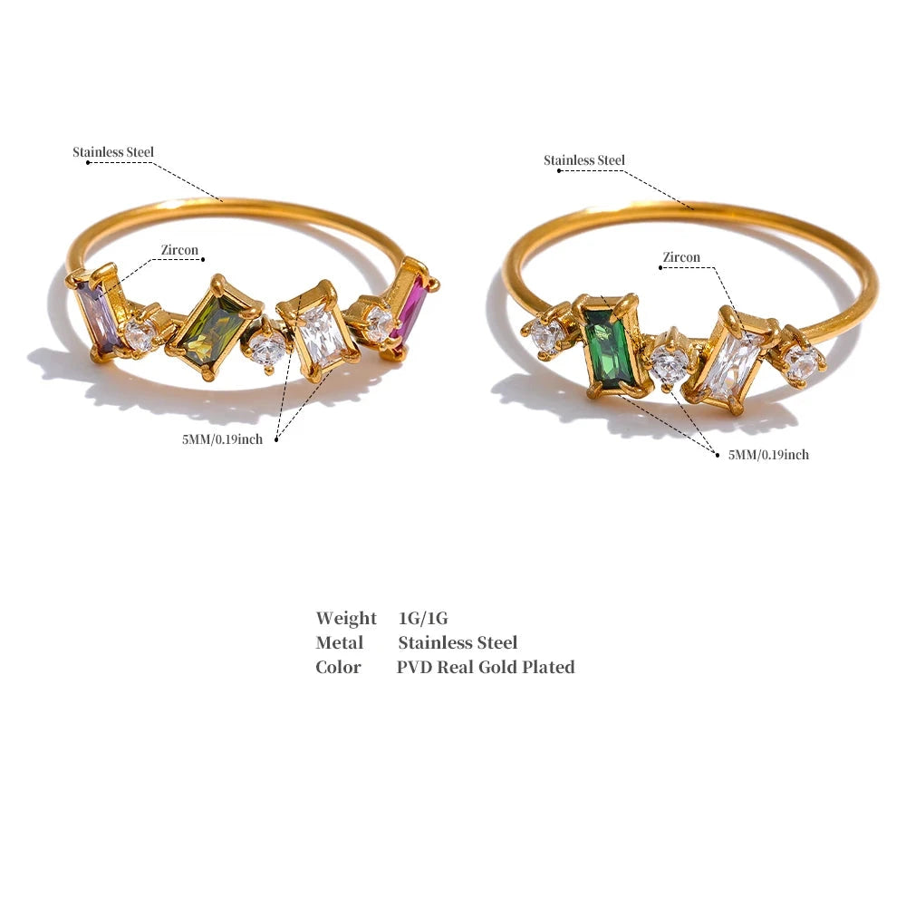 Elevate your style with this chic bling colourful ring. This stunning piece features a sparkling cubic zirconia design, crafted from waterproof stainless steel for long-lasting wear. Make a statement with either or both trendy and exquisite pieces.