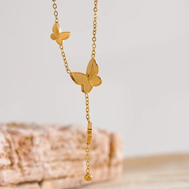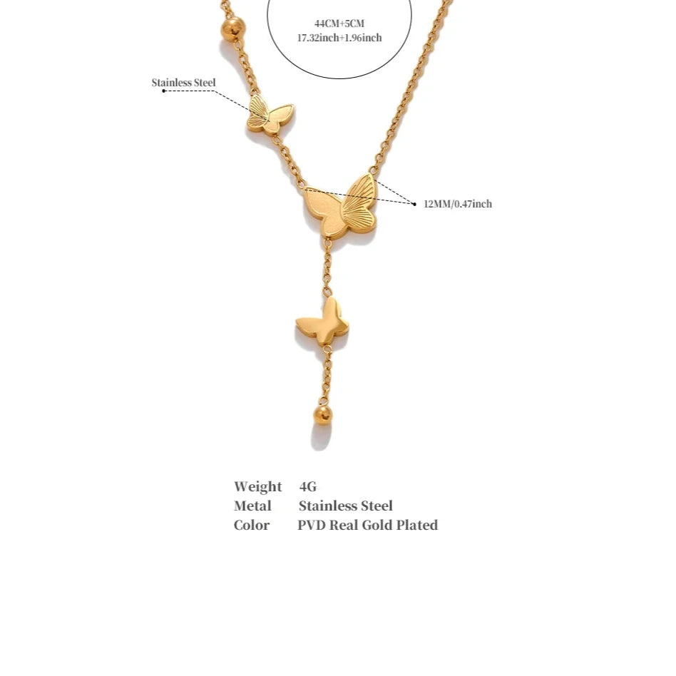 This necklace features an exquisite butterfly chain pendant, adding a touch of elegance to any outfit. Made of high-quality stainless steel, it is both stylish and durable. Its water-resistant design makes it perfect for everyday wear.