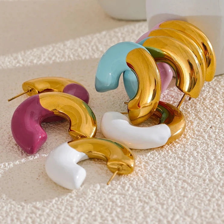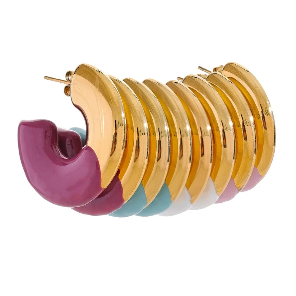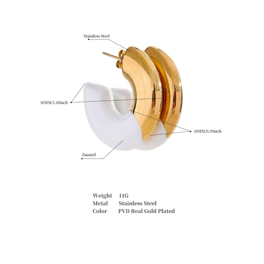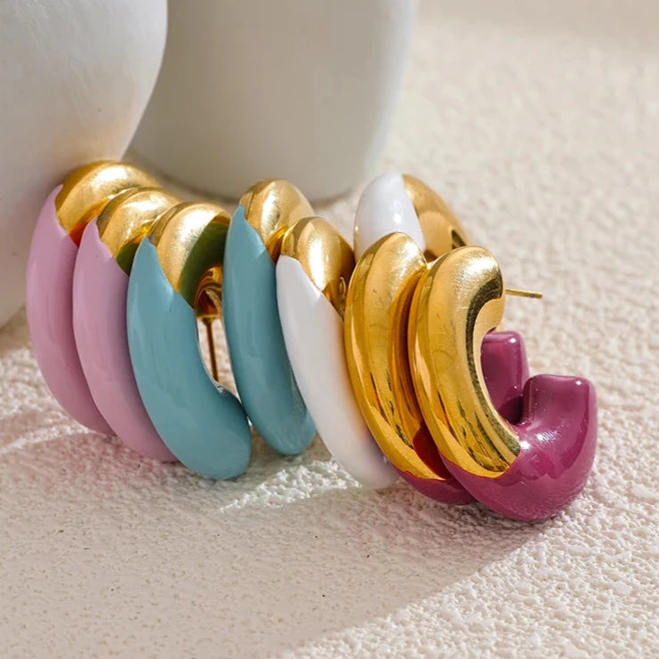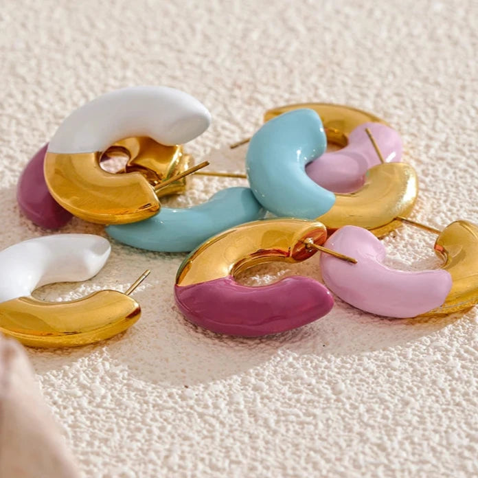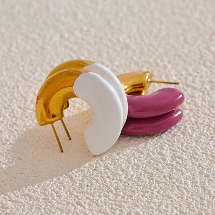 Crafted with durable stainless steel and coated in gold, these earrings are versatile for daily wear and waterproof for any occasion. The dipped enamel design adds a pop of colour to elevate any outfit.