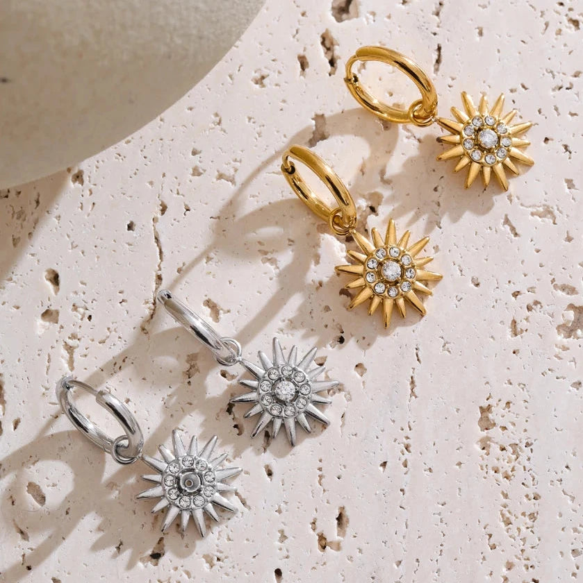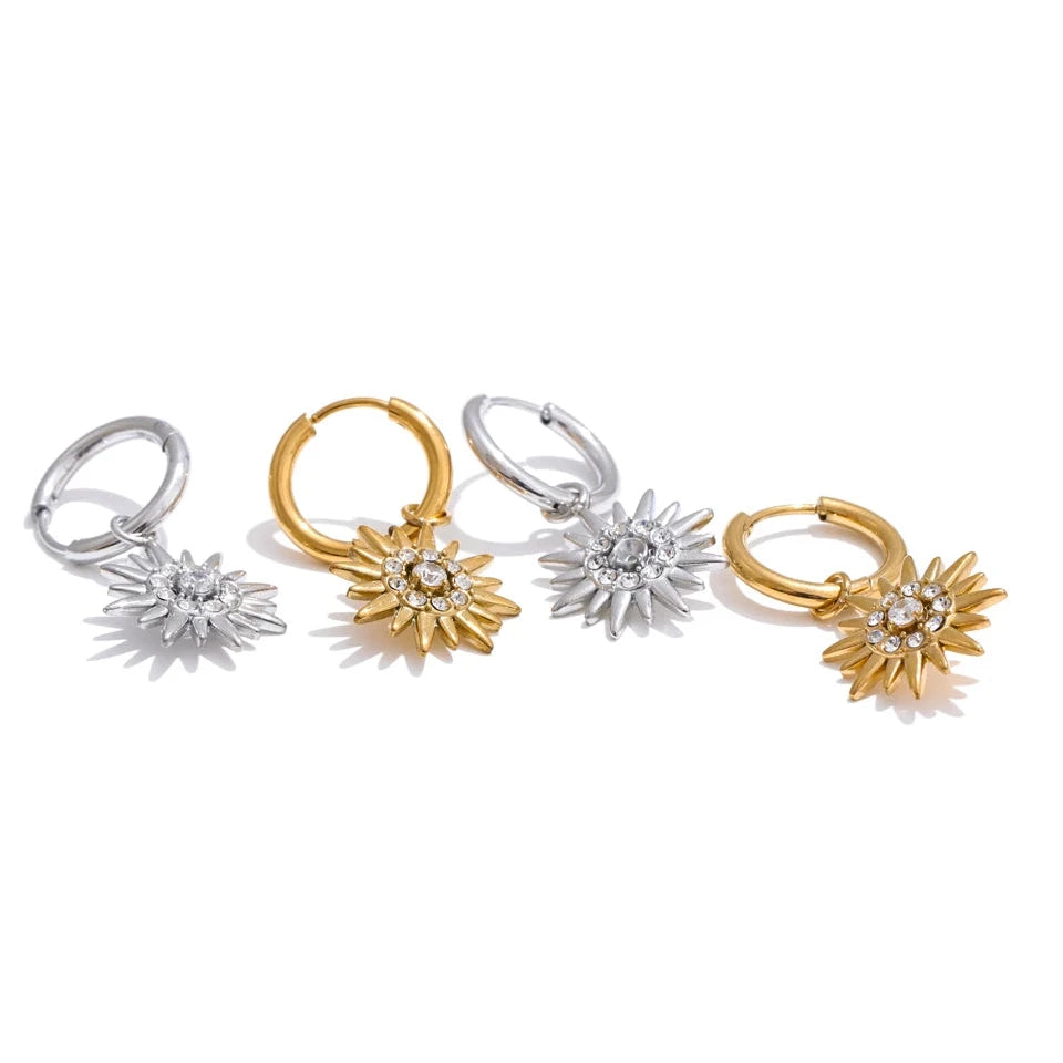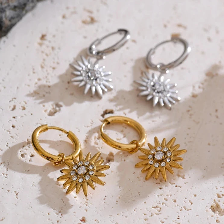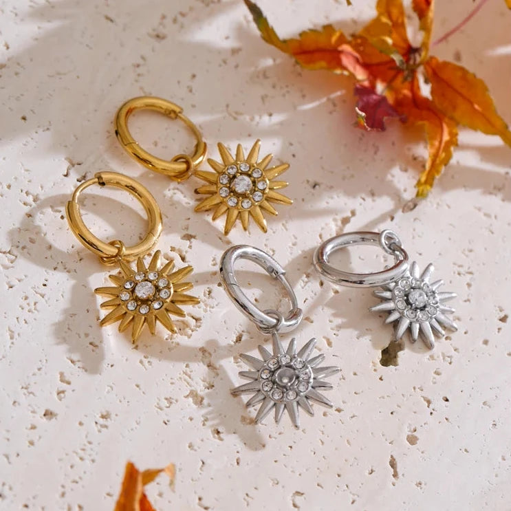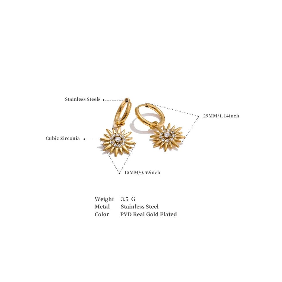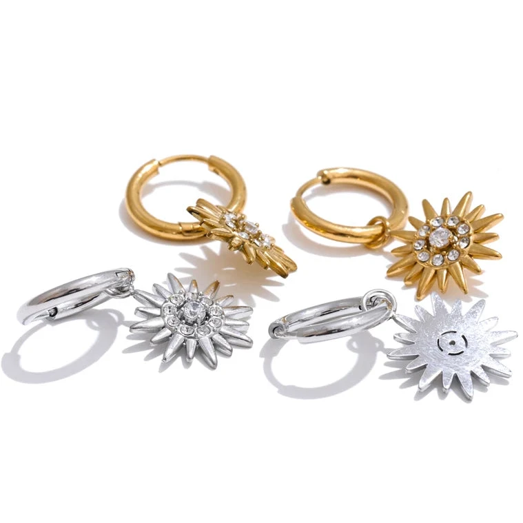 These exquisite sun drop hoop earrings feature finely inlaid zirconia stones set in durable stainless steel, offering a delicate yet striking accessory for daily wear. Designed with hypoallergenic materials, they provide comfort for sensitive skin while maintaining elegance.