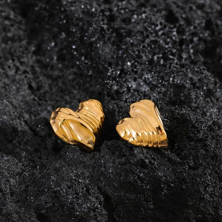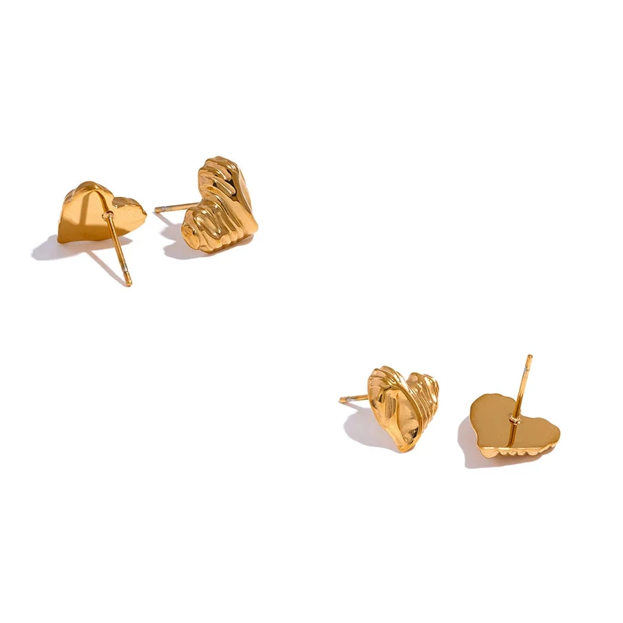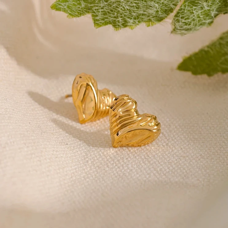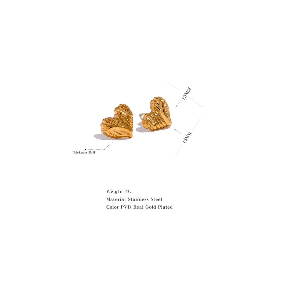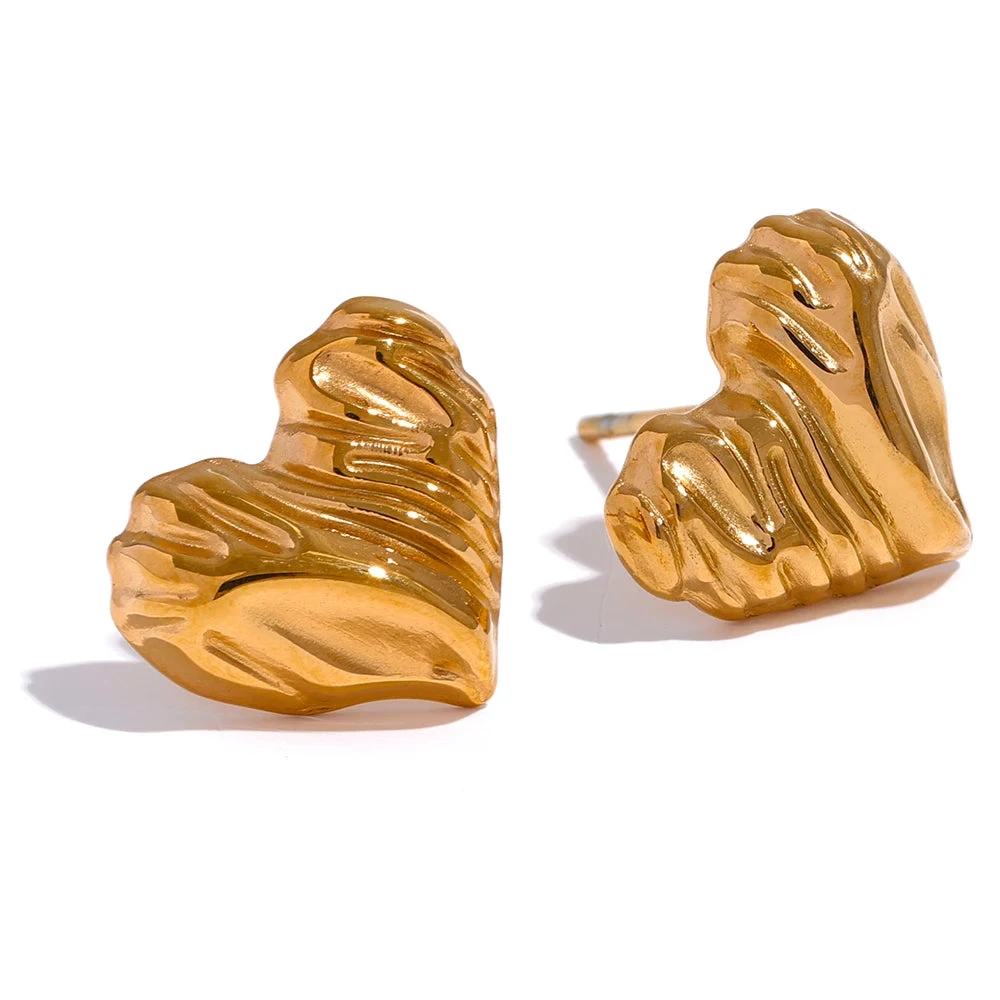 These heart stud earrings have a textured design that adds subtle elegance, while the waterproof quality makes them suitable for everyday wear. Ideal for those seeking a charming yet resilient accessory.