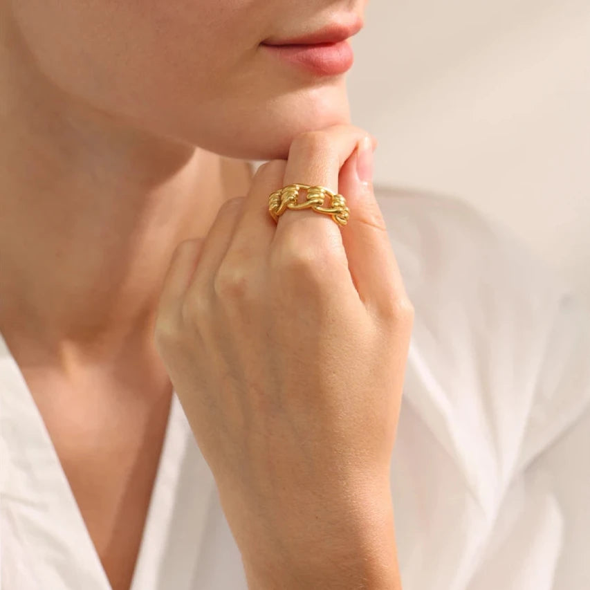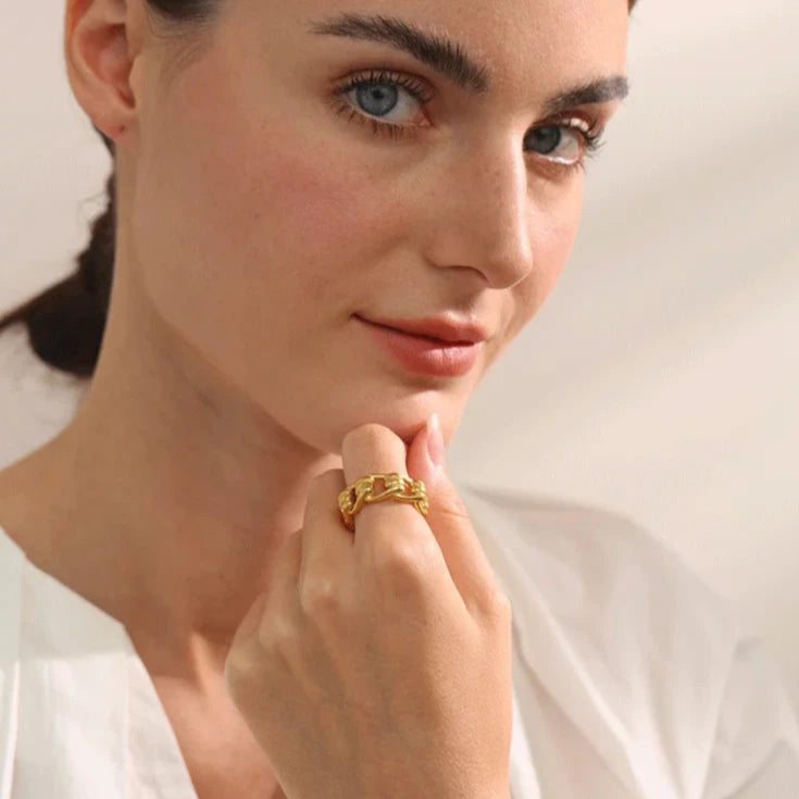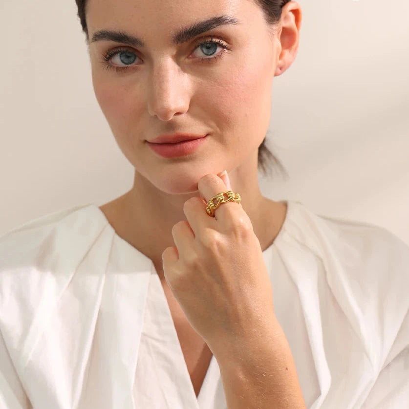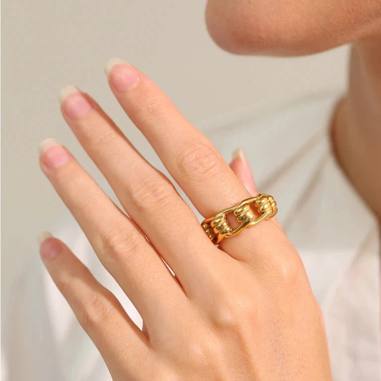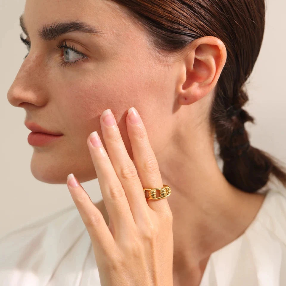 Made from water-resistant metal, this statement piece adds a touch of elegance to any outfit. The gold colour charm and finger jewellery design make it a perfect accessory for any occasion. Stand out with this unique and fashionable piece.