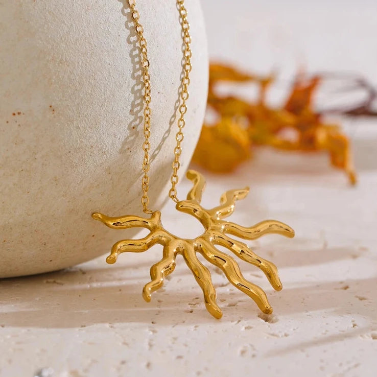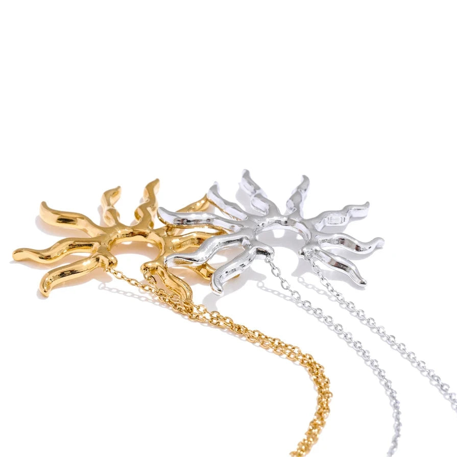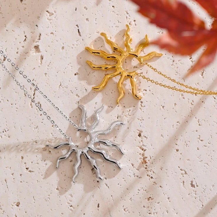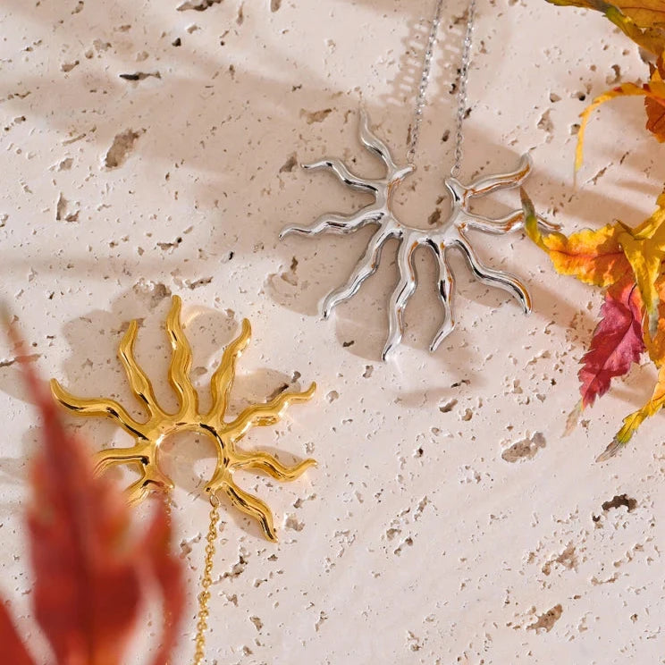 Crafted from durable stainless steel, the Leo pendant necklace combines modern design with lasting quality. Its sleek sun motif adds a trendy, eye-catching touch to any outfit, while the waterproof finish ensures it remains vibrant through daily wear.