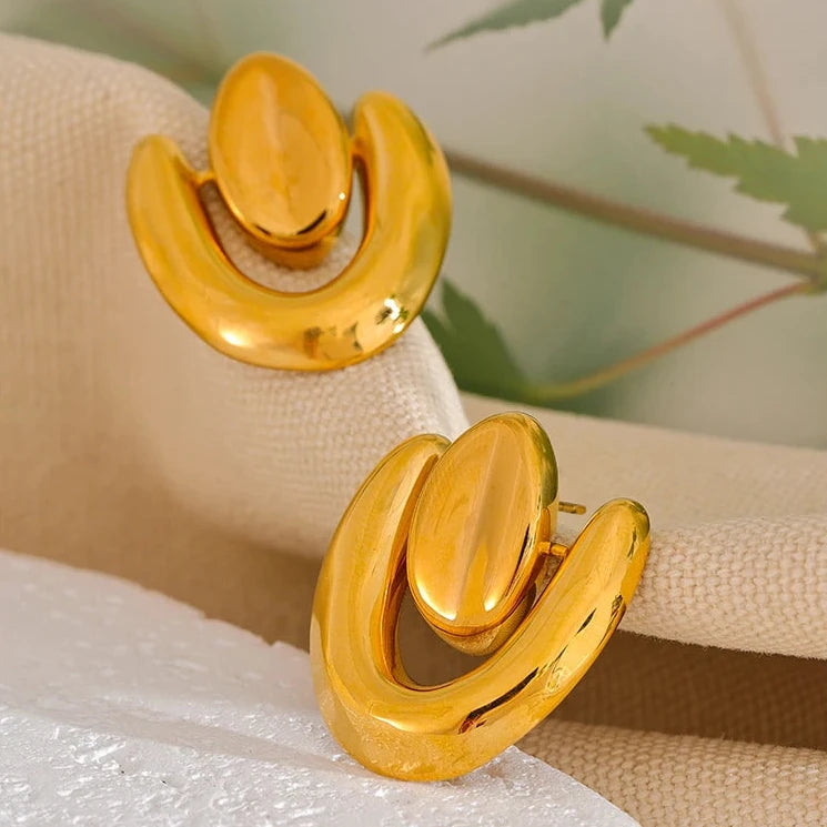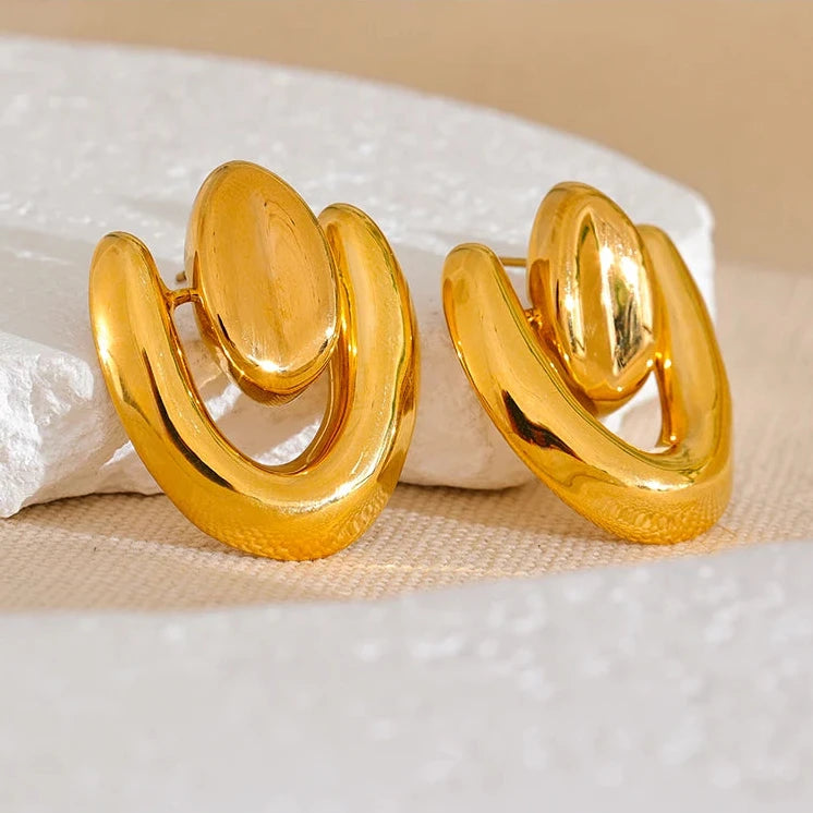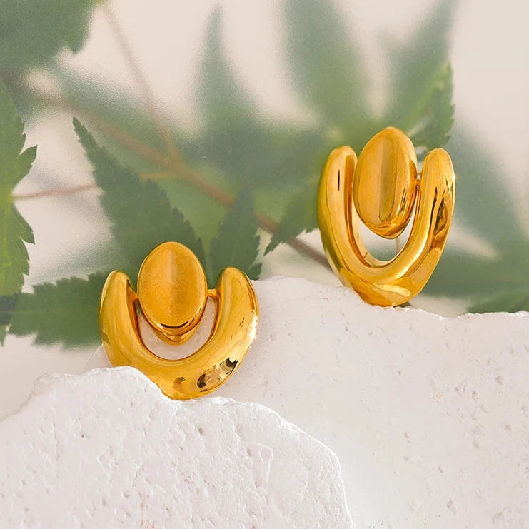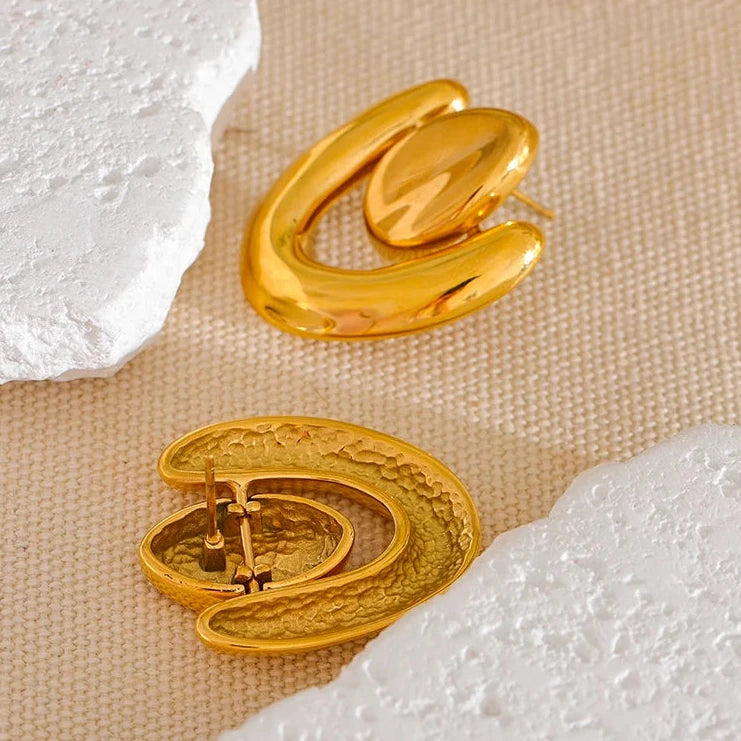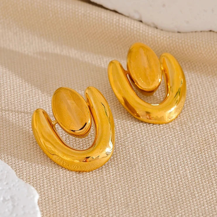 The Seya earrings are gorgeous U-Shape Geometric Studs. Made with high-quality stainless steel, these earrings feature a unique golden texture. Hypoallergenic and designed for comfort, they will add a statement to any outfit.