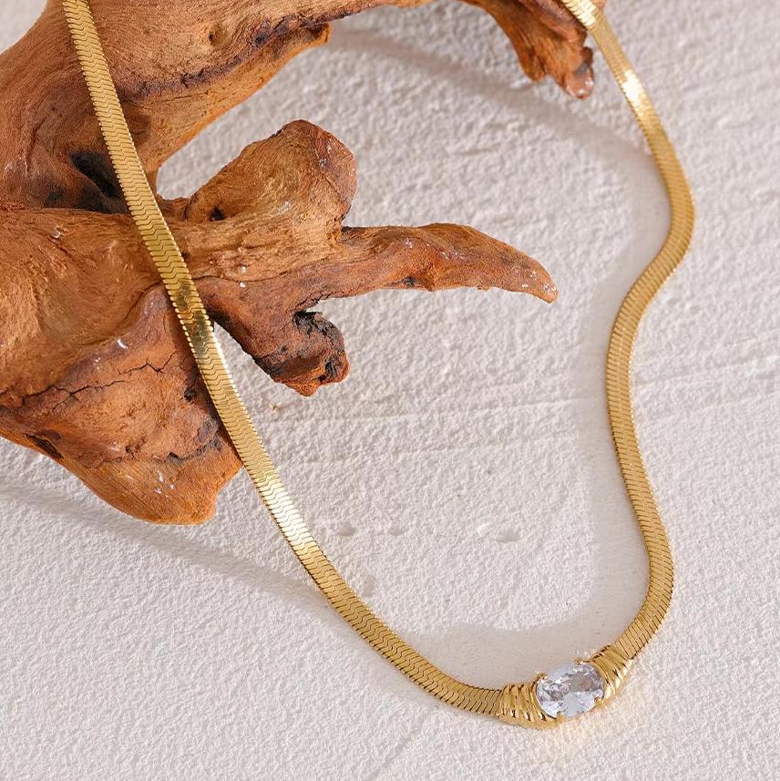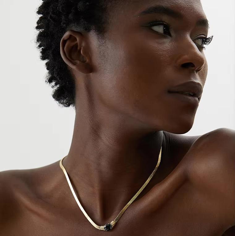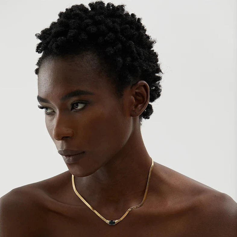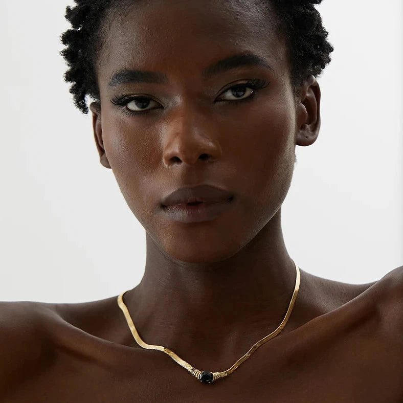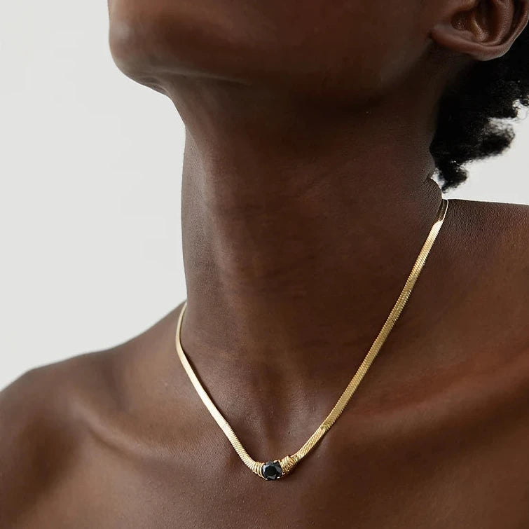 Crafted with premium stainless steel and a snake chain design, this necklace exudes elegance and sophistication. Elevate your style with this exquisite piece of jewellery - perfect for any occasion.