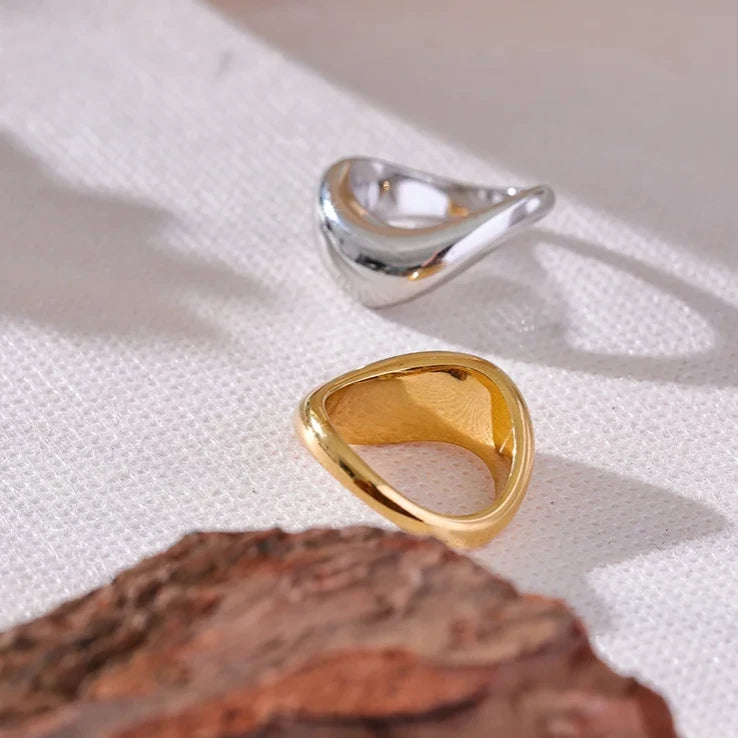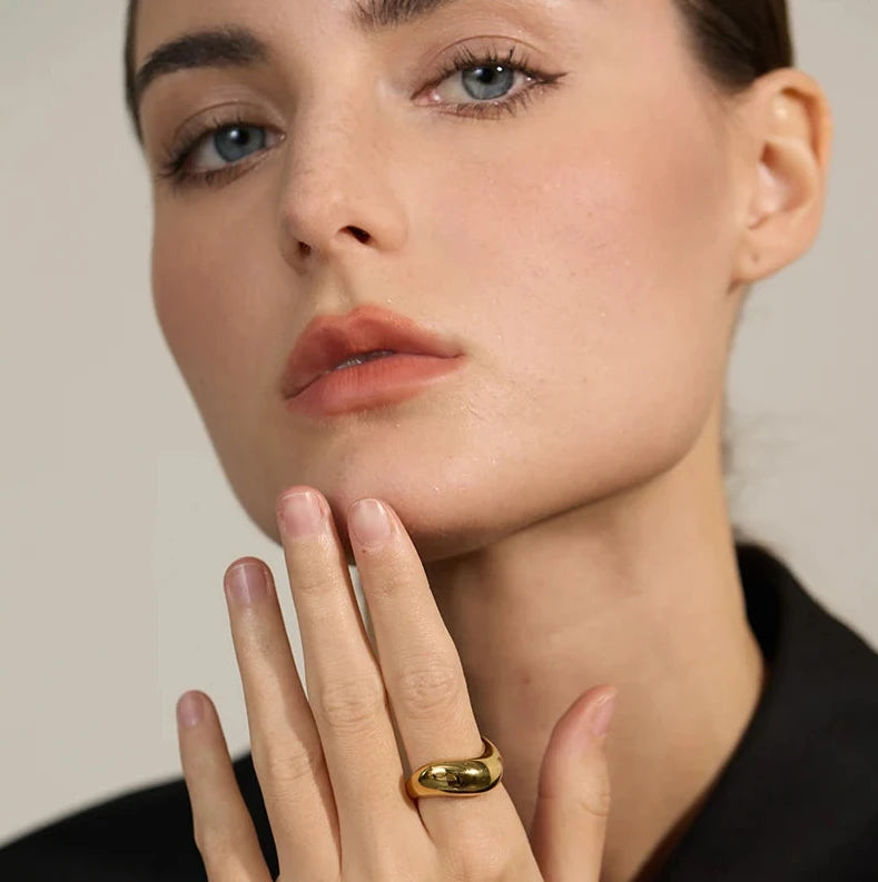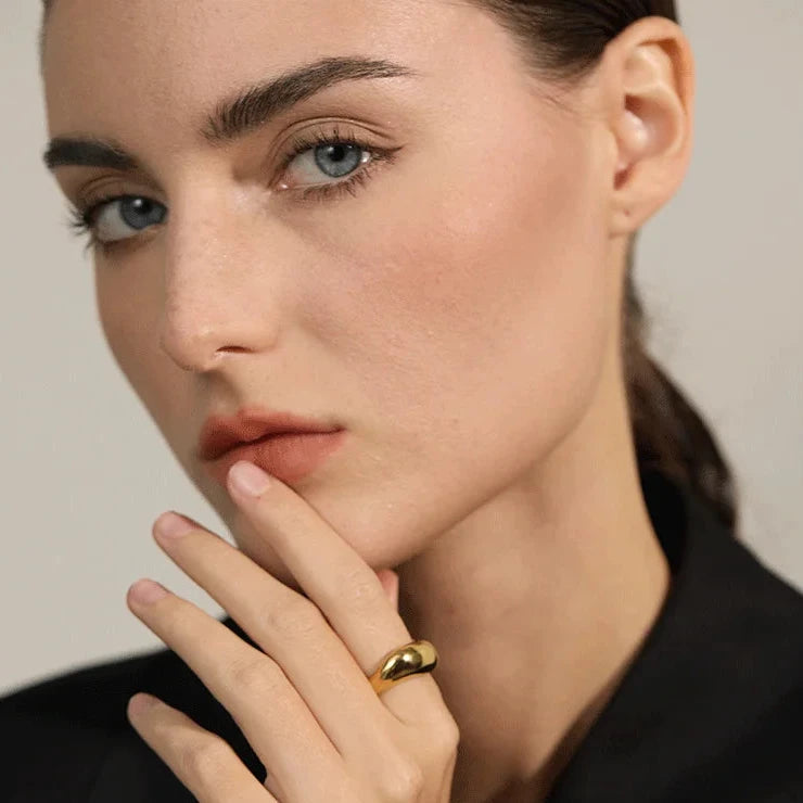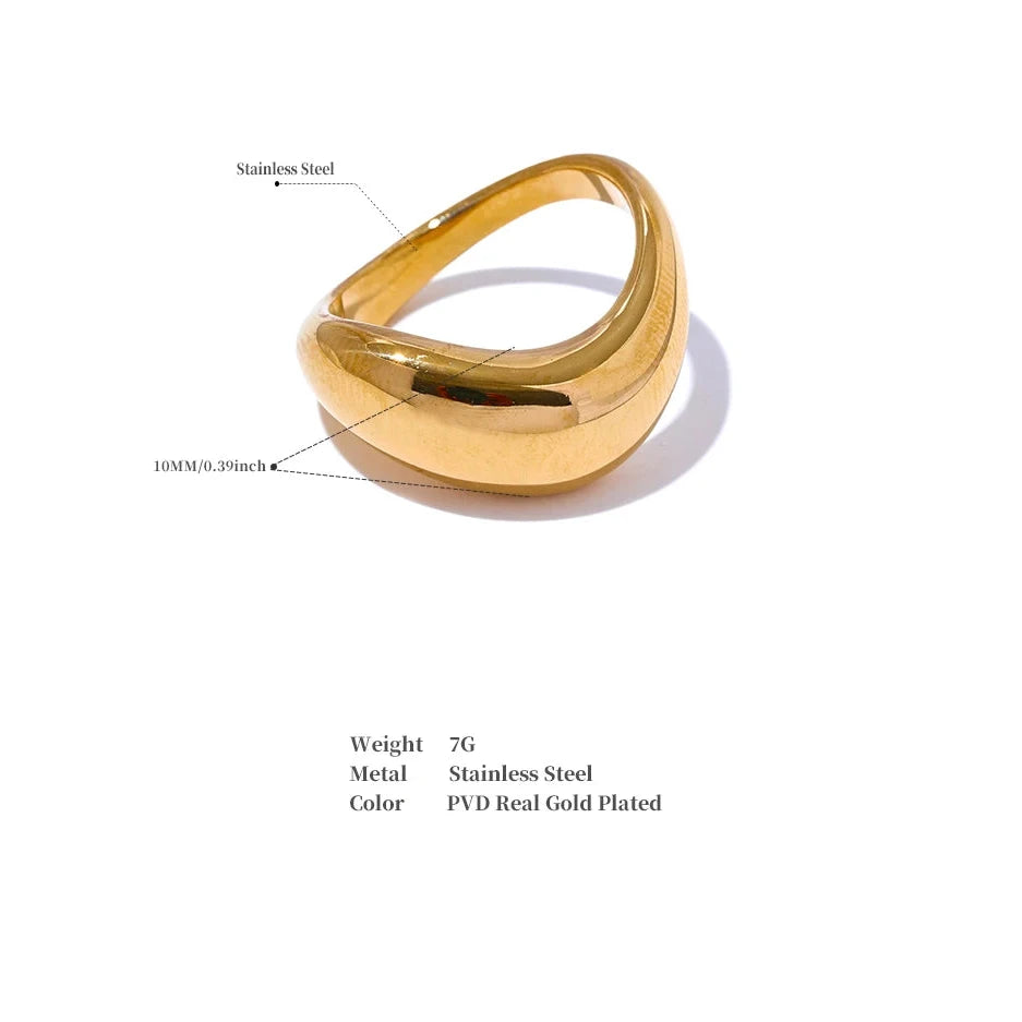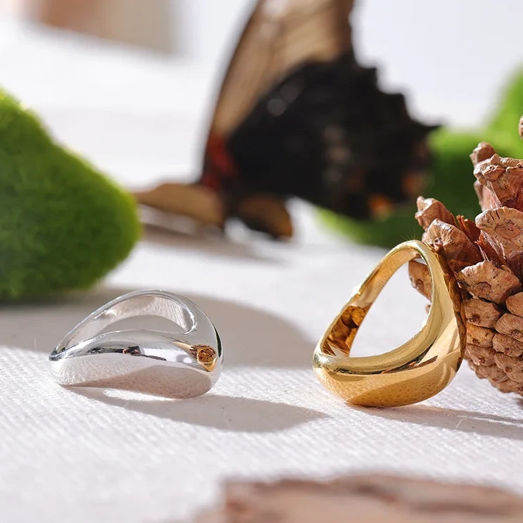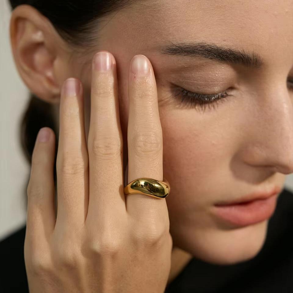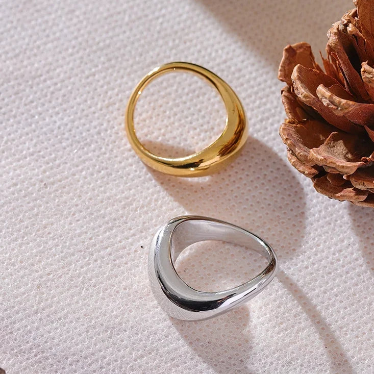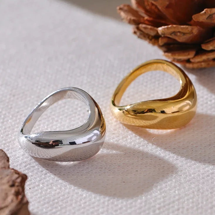 Upgrade your style with our minimalist smooth stainless steel ring. Its geometric design and 18K PVD plating make it distinctive and waterproof. It's durable and scratch-resistant. Elevate any outfit and ensure a touch of elegance with this piece.