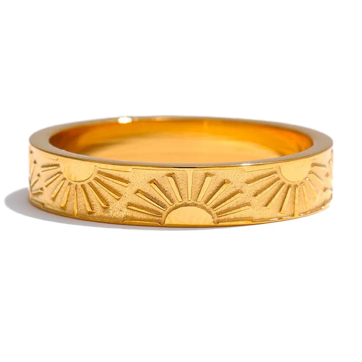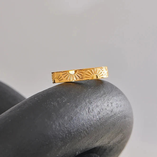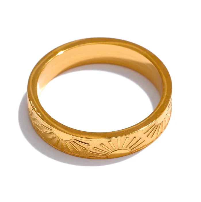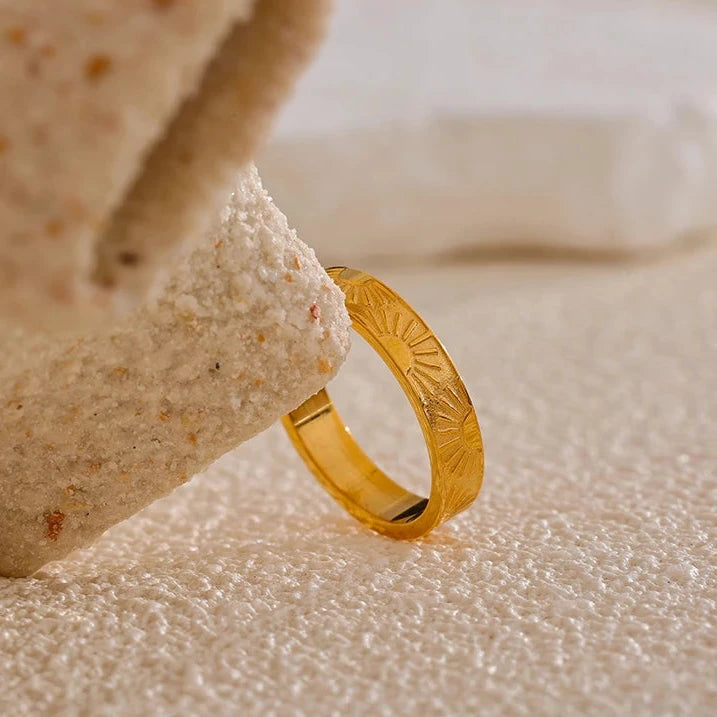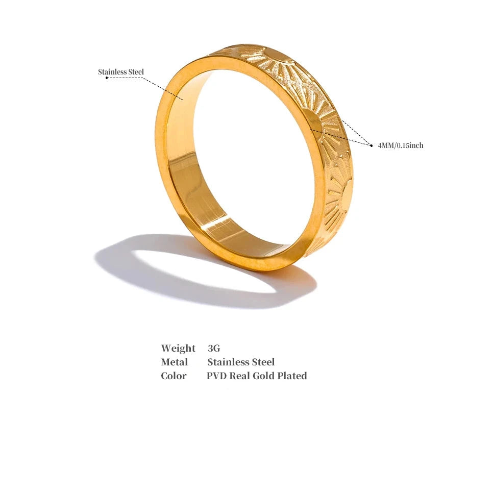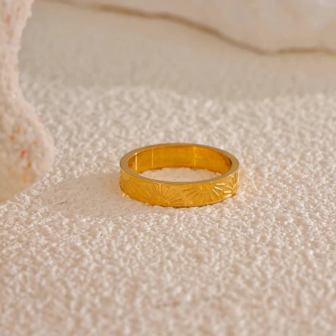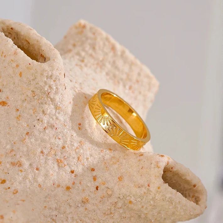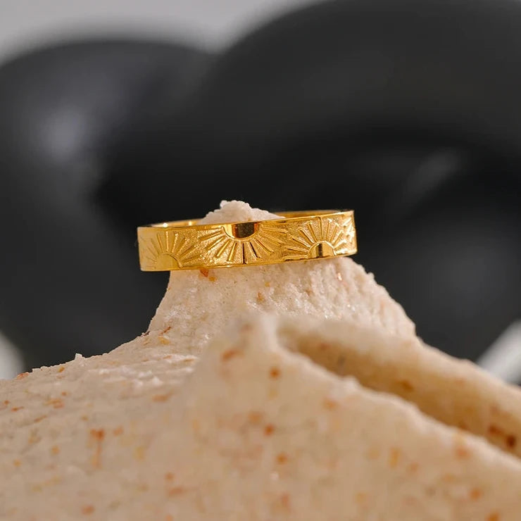 This minimalist sun design ring is the perfect addition to your collection! Made with water-resistant materials, this ring is both stylish and functional. Stay chic and unique with this individualistic design.