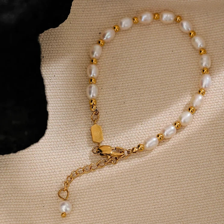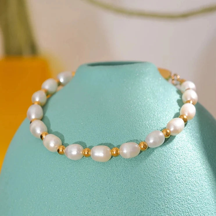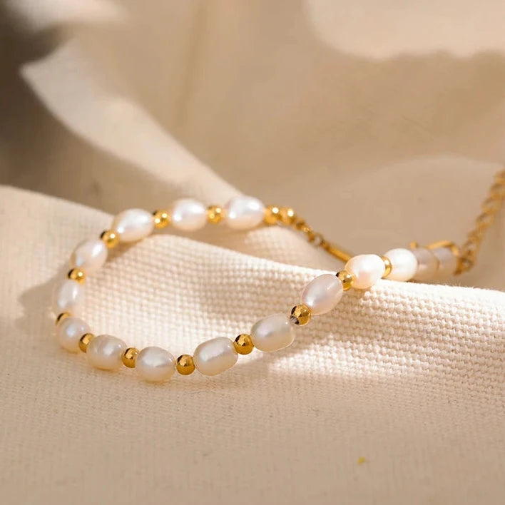 Discover timeless elegance with this natural freshwater Pearl handmade bracelet. Crafted with waterproof PVD charms and stainless steel beads, this bracelet combines fashion and durability. The natural freshwater pearls add a touch of classic sophistication.