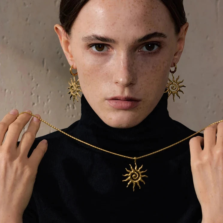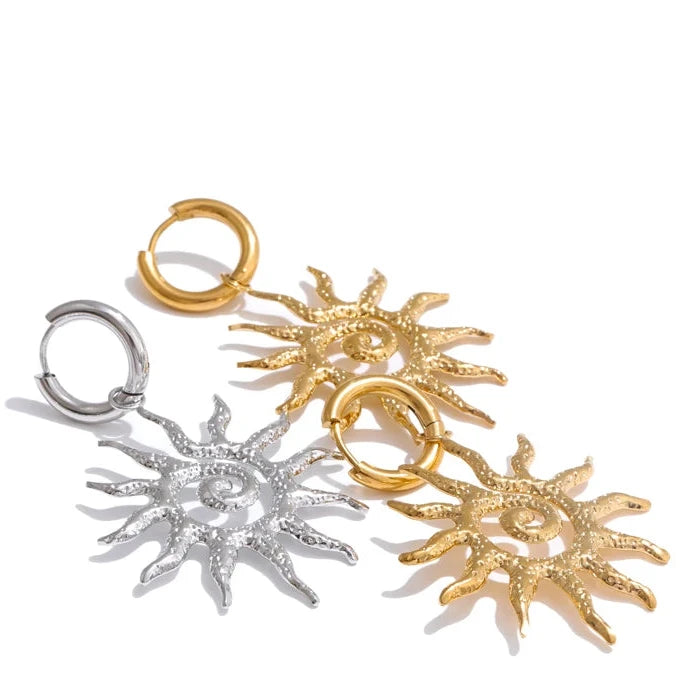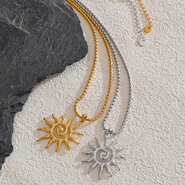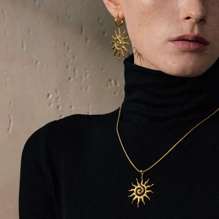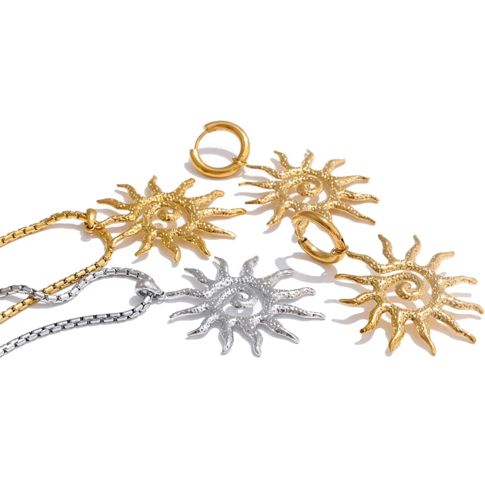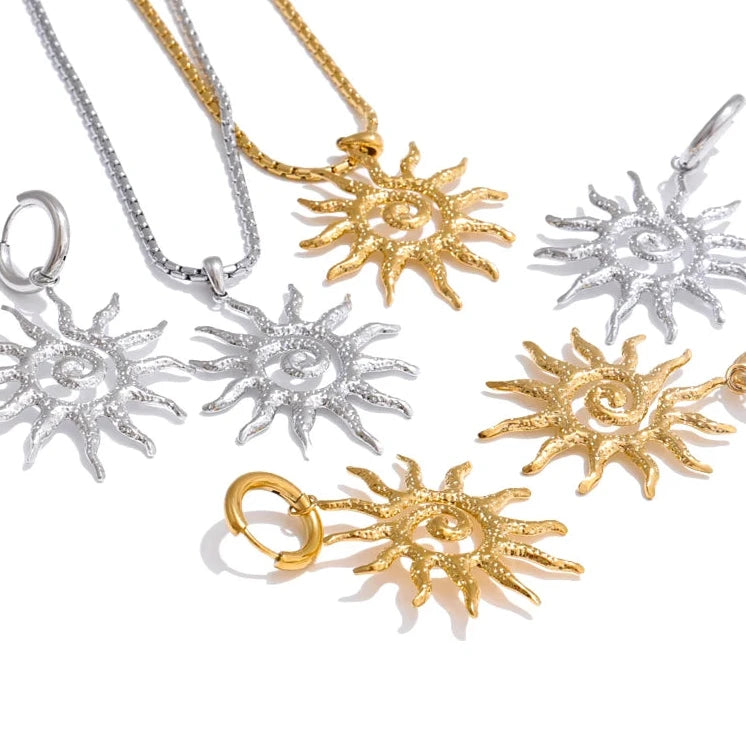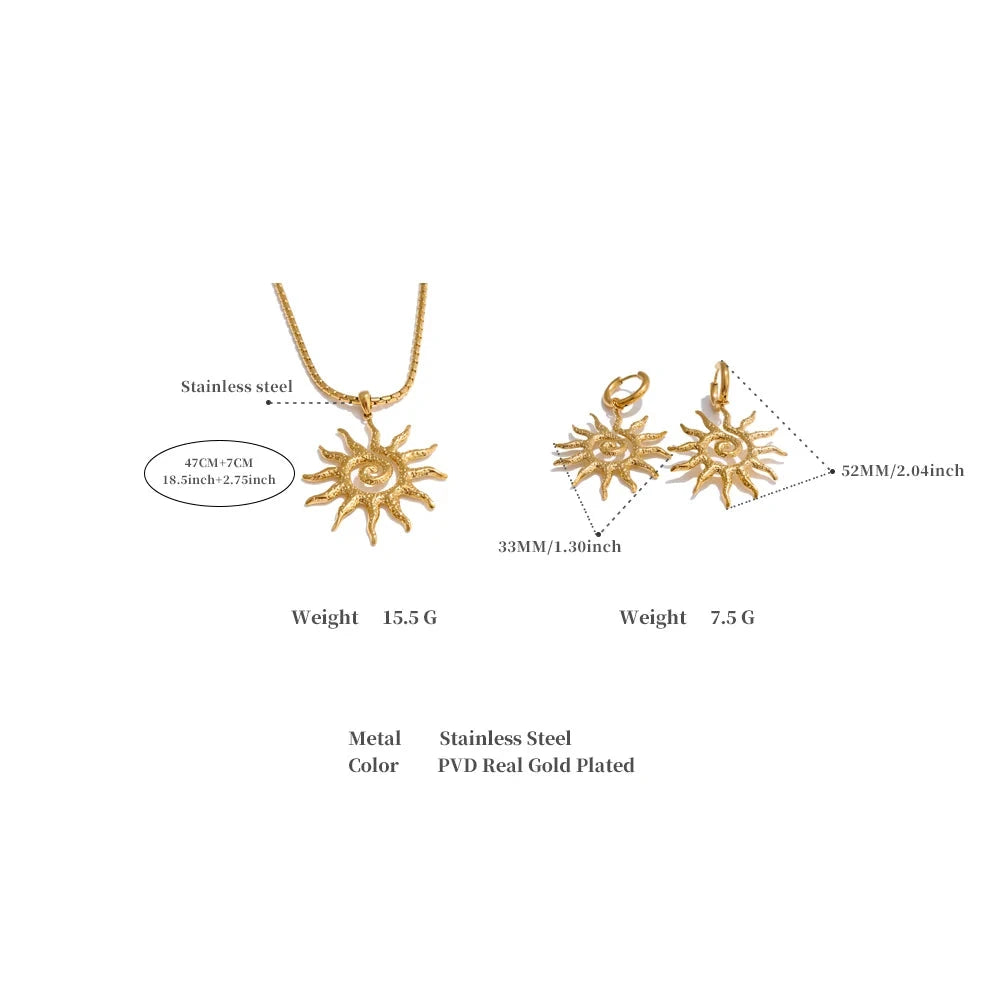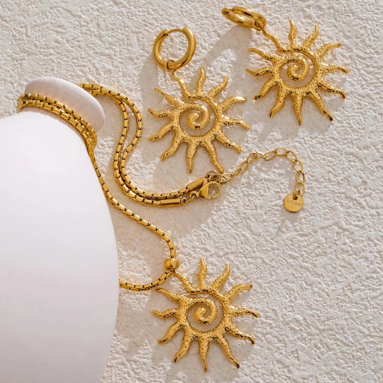 The sun drop pendant adds a distinctive charm, while the hoop earrings offer a classic yet contemporary appeal. Perfect for daily wear or special occasions, this set combines style with resilience.