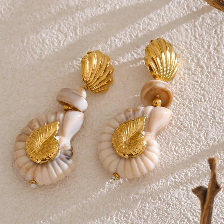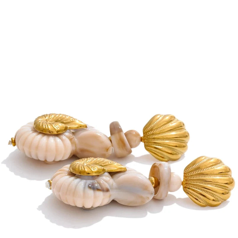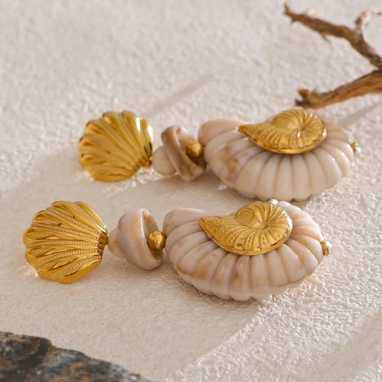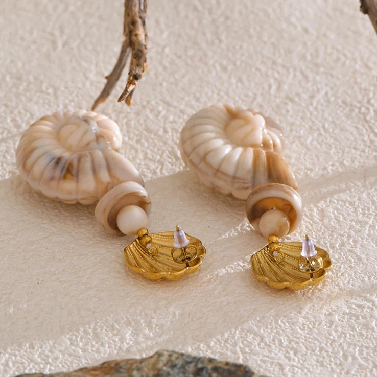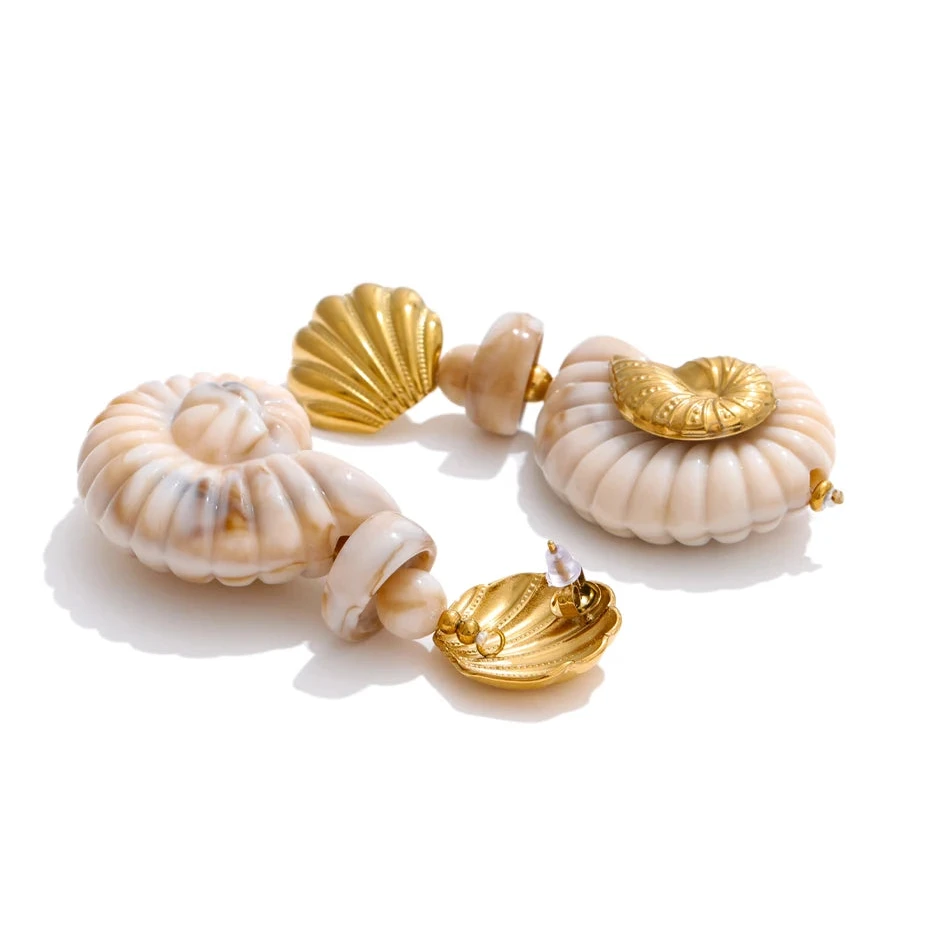 Elevate your summer style with these Ocean Series Resin Shell Conch Drop Earrings. Crafted with durable stainless steel and detailed resin shells, they offer lasting wear and a distinctive seaside charm.