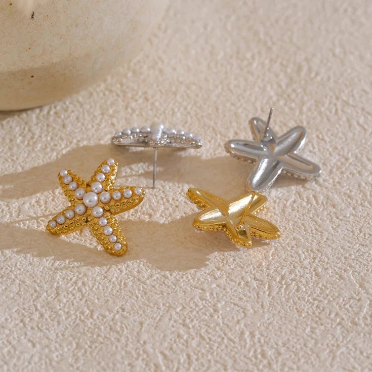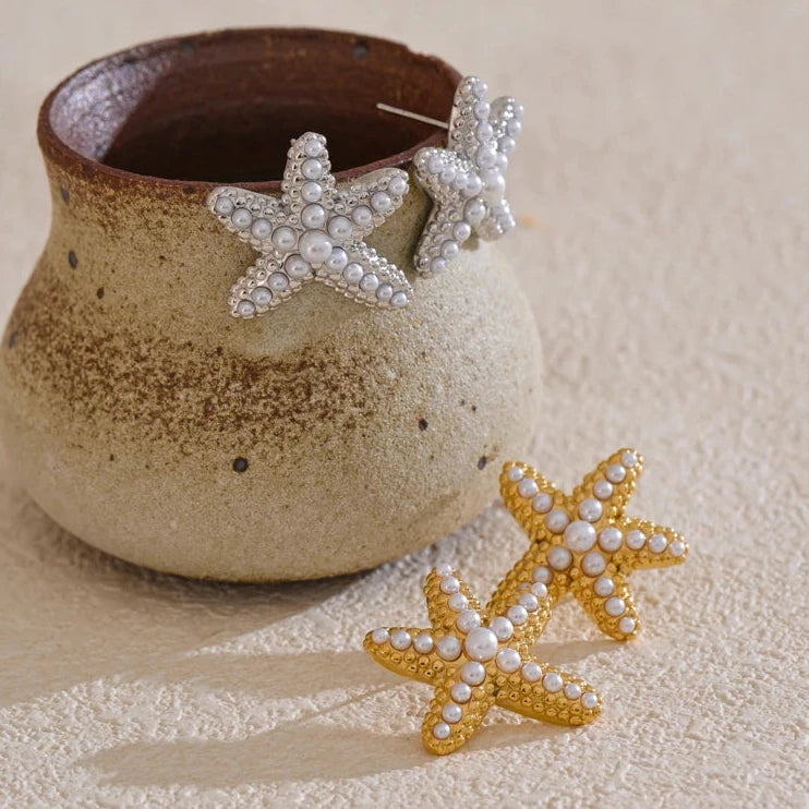 These starfish stud earrings feature ocean-inspired imitation pearls set in durable stainless steel, offering a refined accessory perfect for summer holidays. Crafted for lasting wear, these earrings combine style and resilience for everyday.