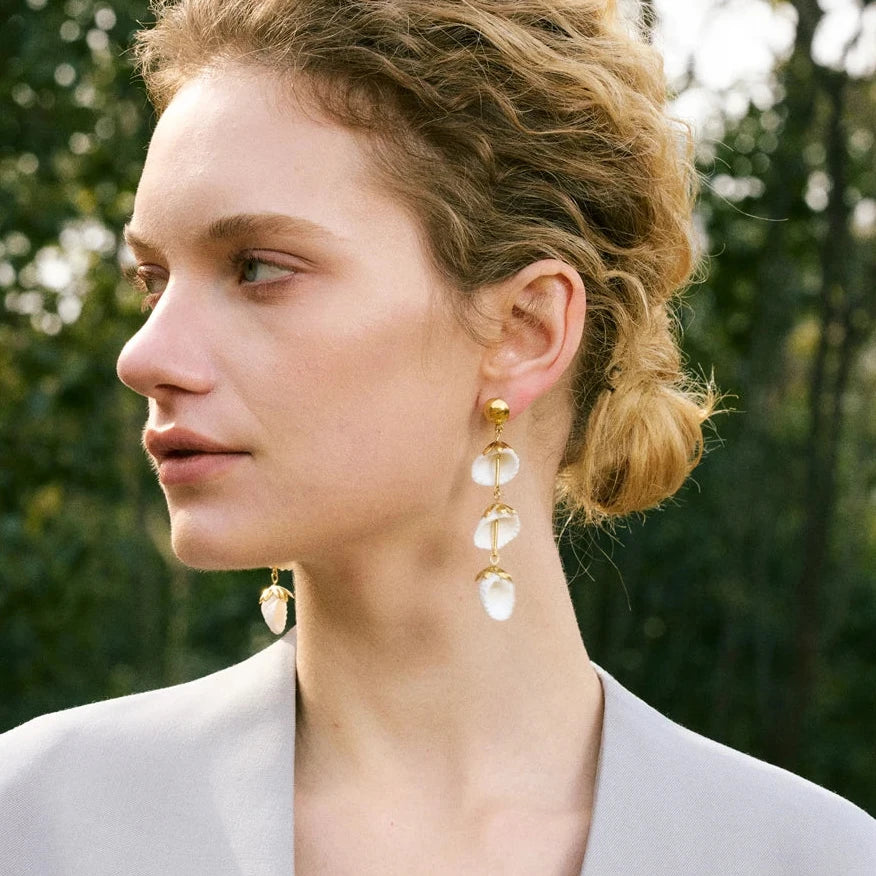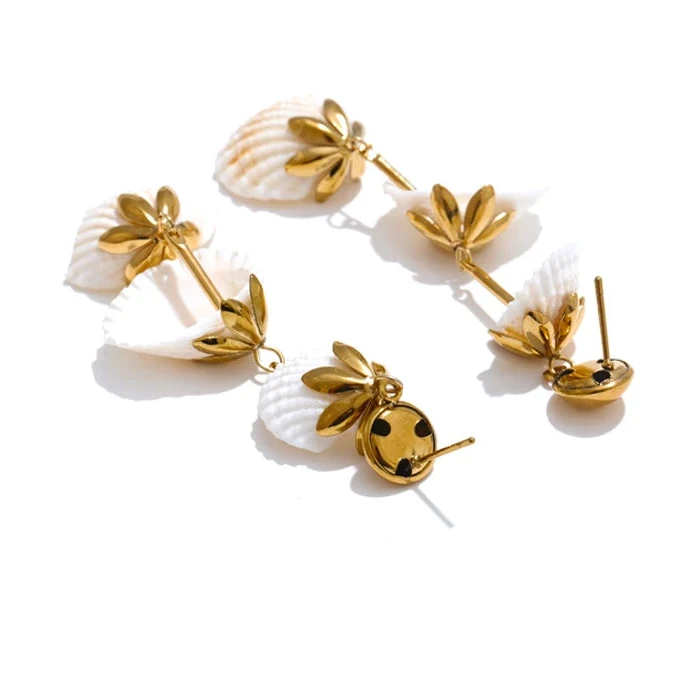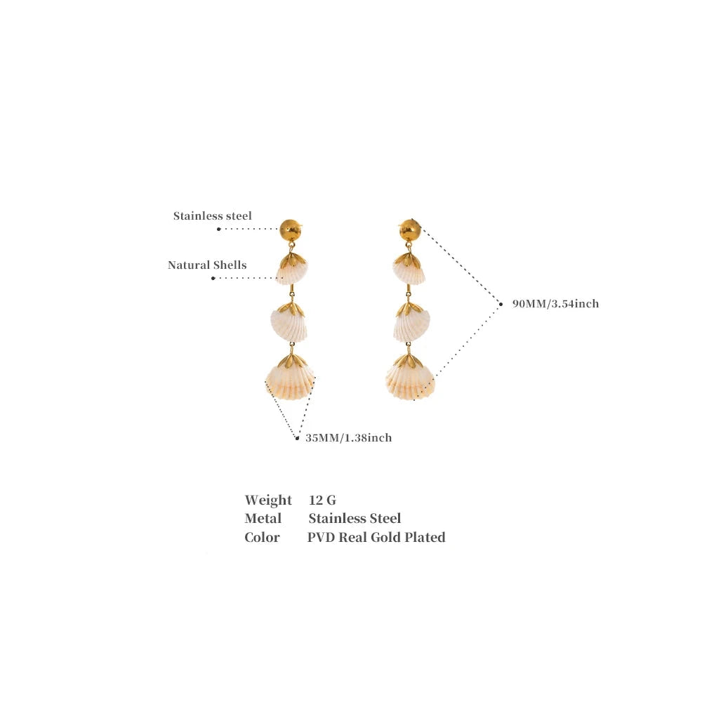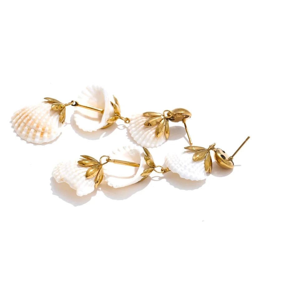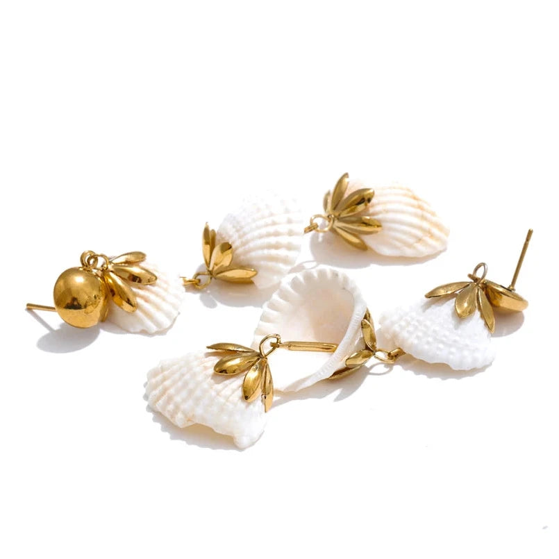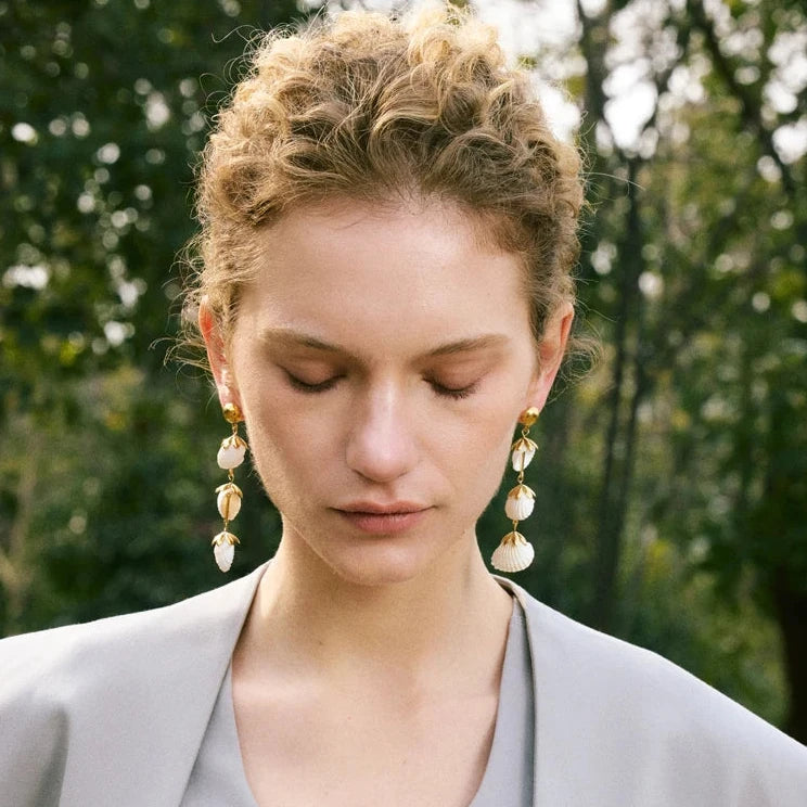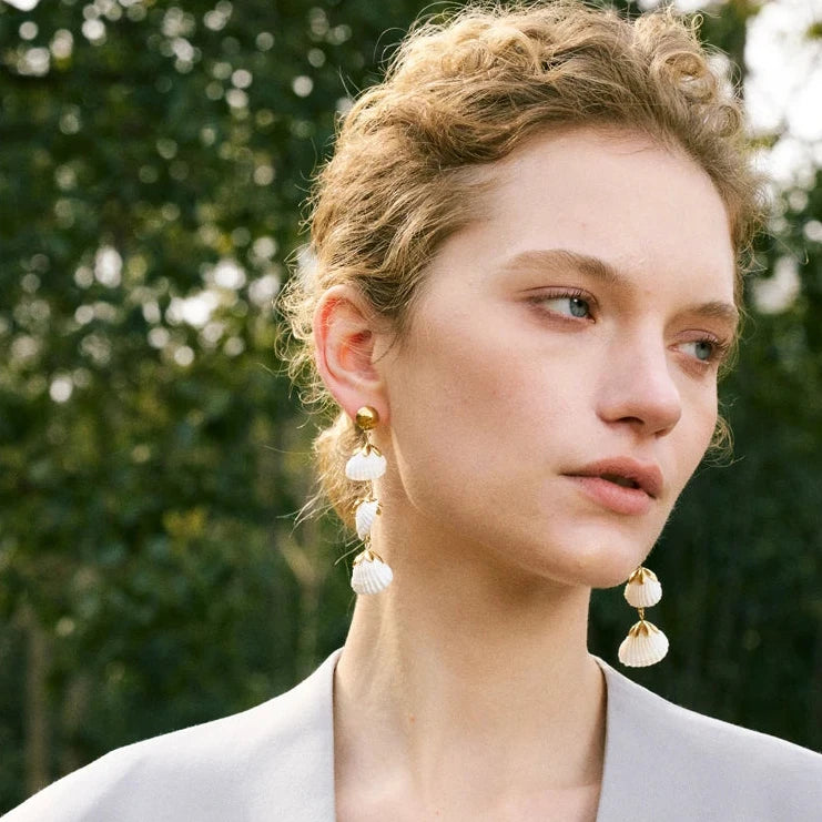 The Syra earrings feature a lightweight, corrosion-resistant design. Their distinctive shell motif brings a subtle coastal elegance, making them an excellent choice for anyone wanting to add a touch of relaxed, seaside style to their collection.
