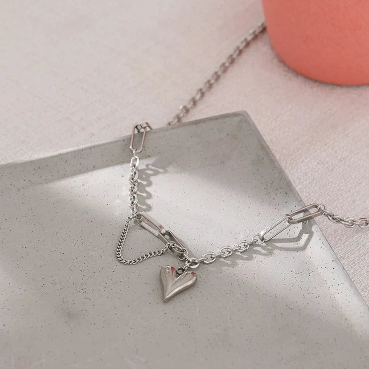 Sophisticated and stunning, this romantic heart pendant necklace is crafted with high quality stainless steel. With its elegant design, it is beautiful for everyday wear or on special occasions. It comes with a matching bracelet, a lovely set.