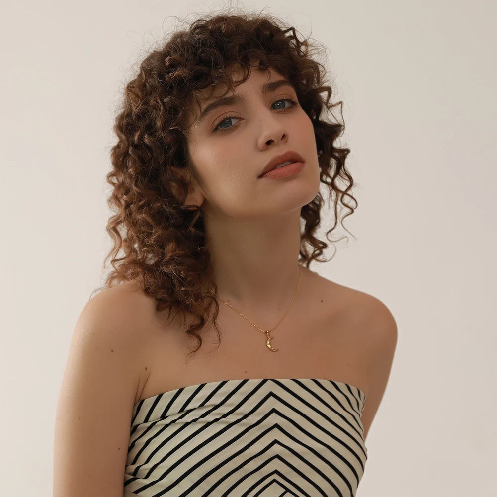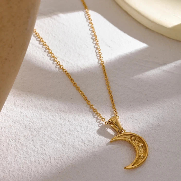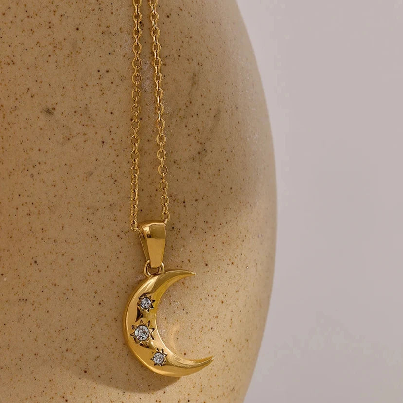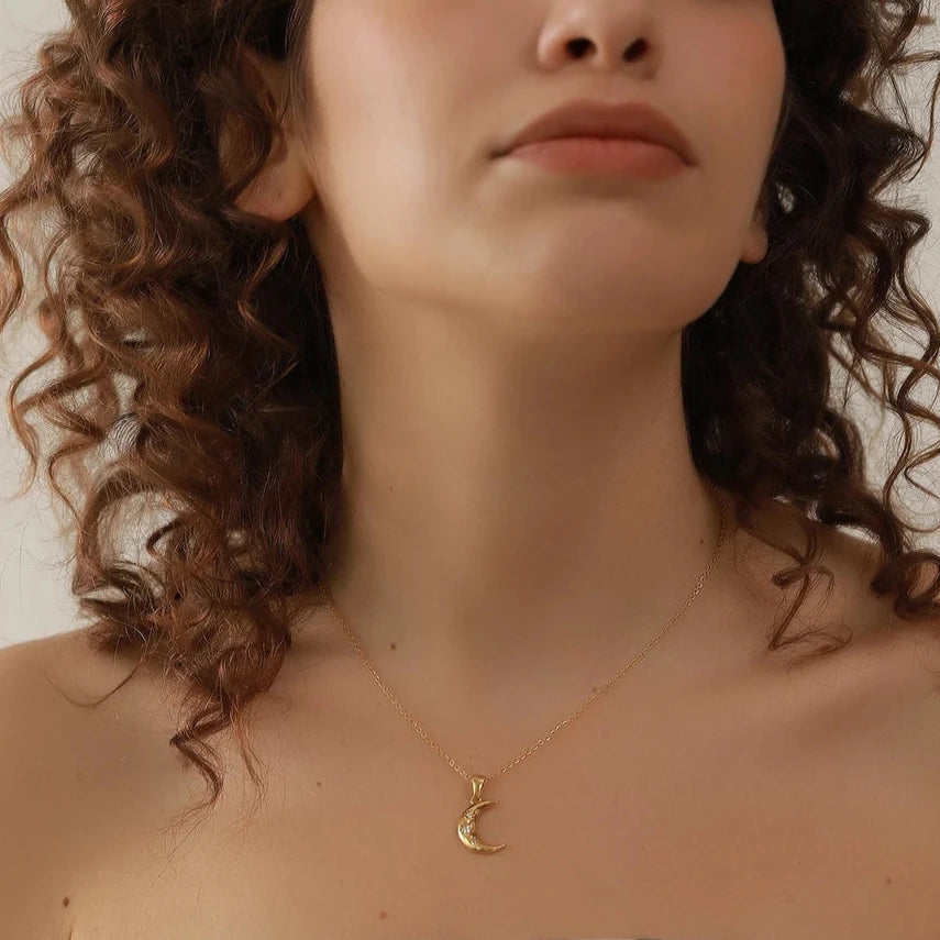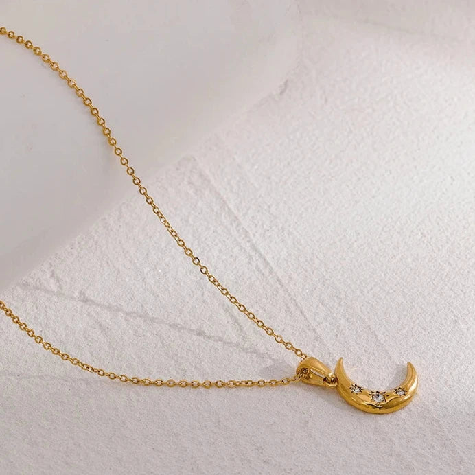 This romantic necklace features a stunning moon cubic zirconia pendant made from stainless steel. The PVD plating adds a touch of luxury, while the trendy and simple collar design makes it a lucky accessory.