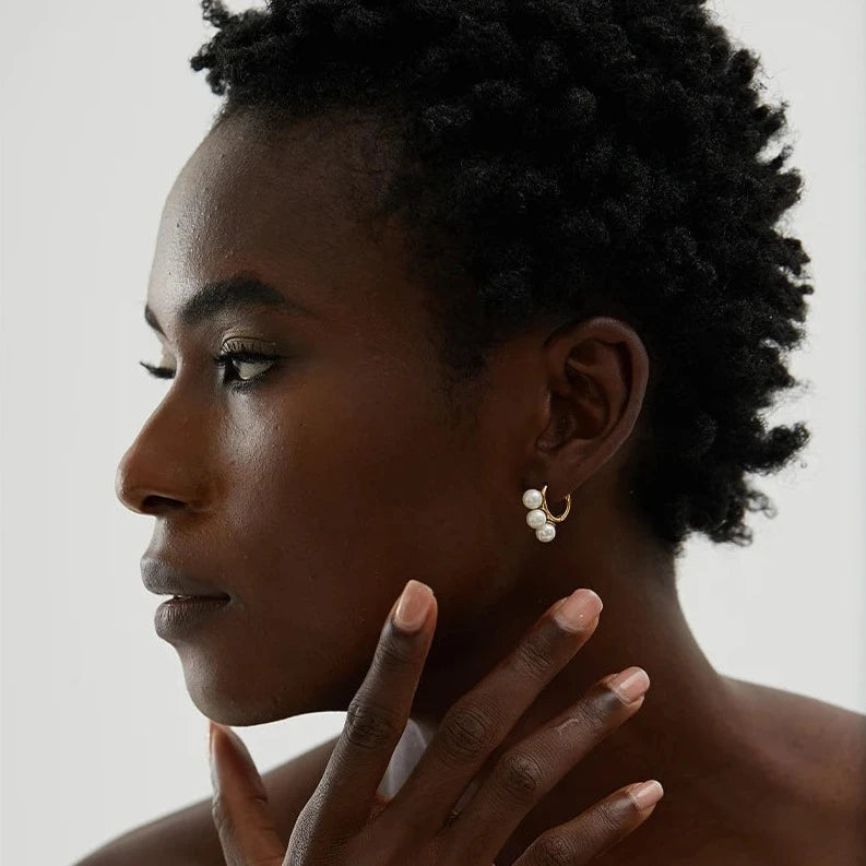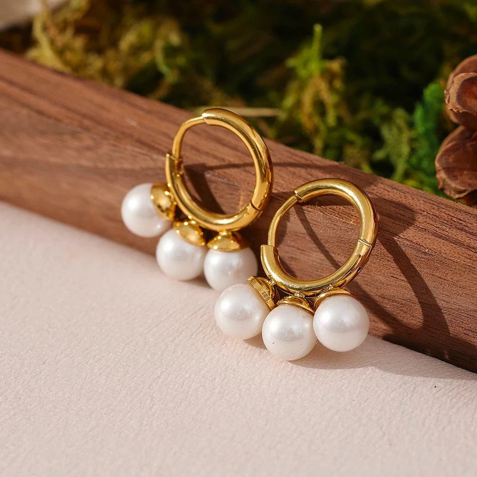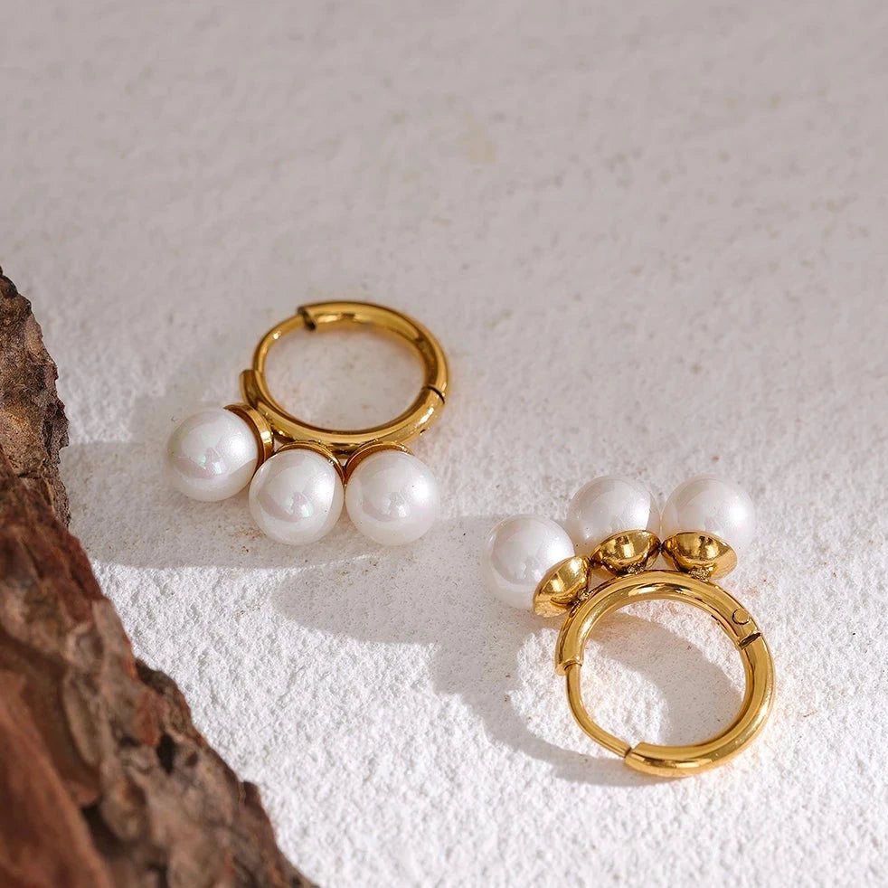 Add a touch of romance and elegance to your look with these Perla earrings. These chic hoop earrings feature beautiful shell pearls set in stainless steel and 18K gold plating, making them a luxurious addition to any outfit.