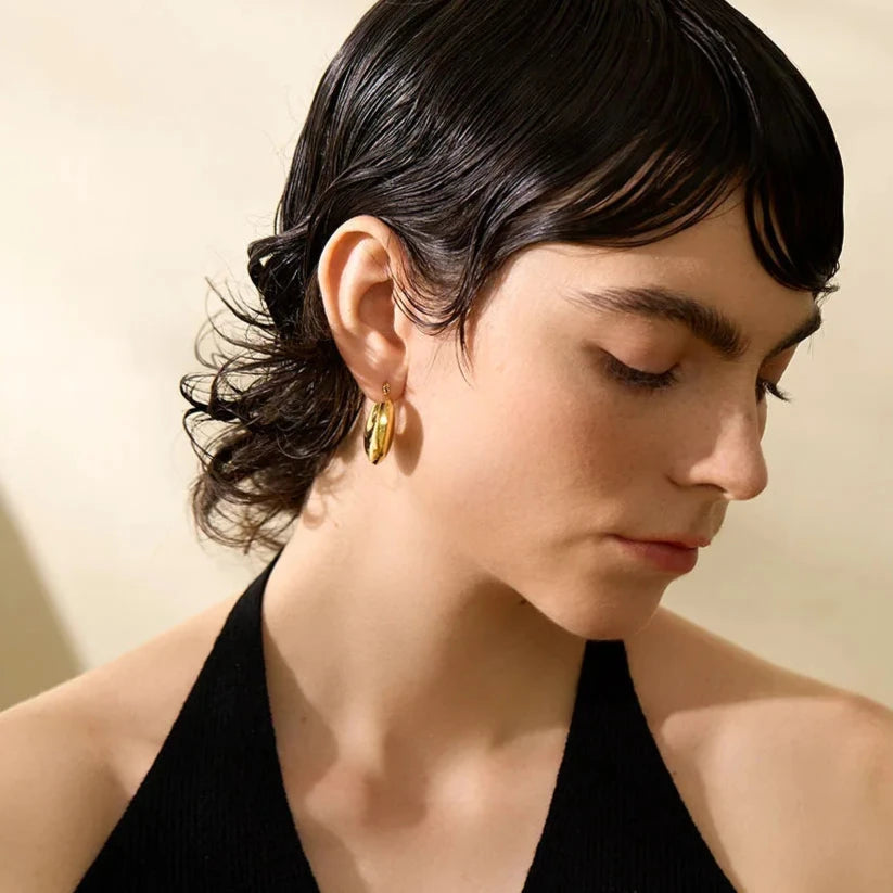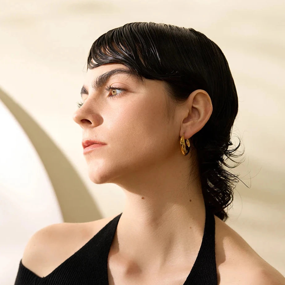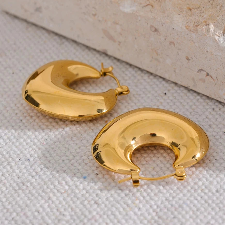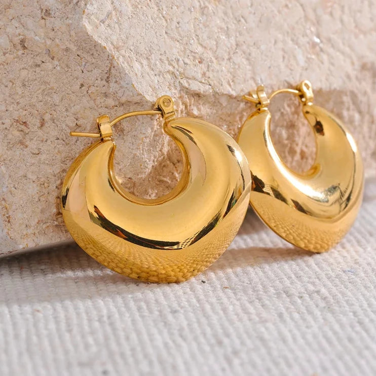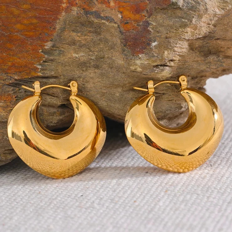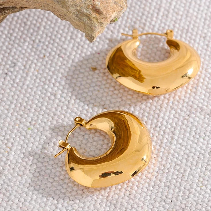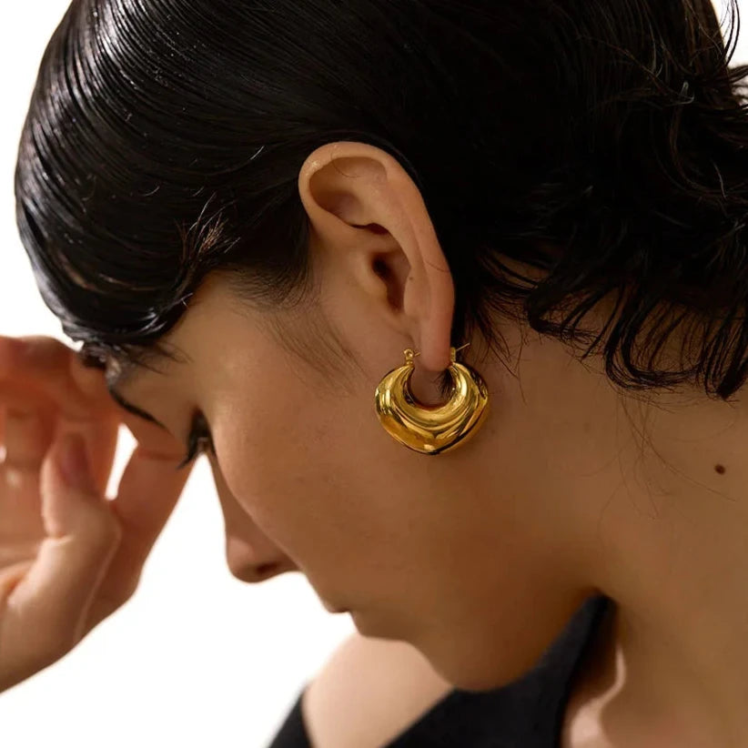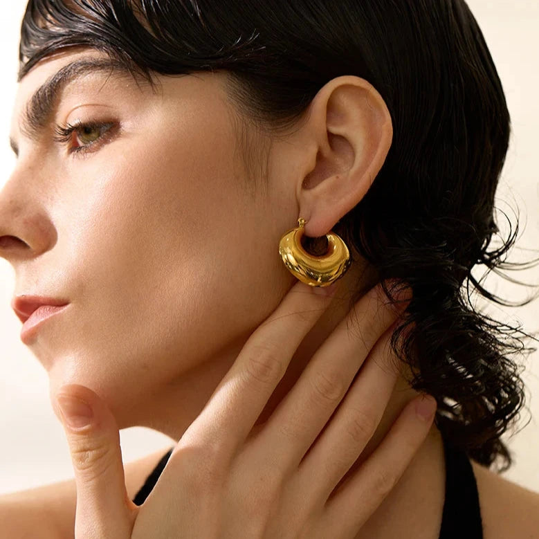 Crafted with PVD coating for a unique texture, these chunky hoops add a touch of charm to any outfit. These stainless steel design ensures long-lasting wear. Order now and elevate your style.