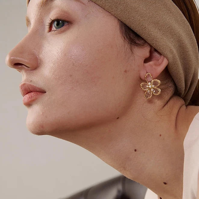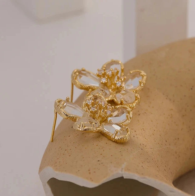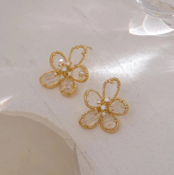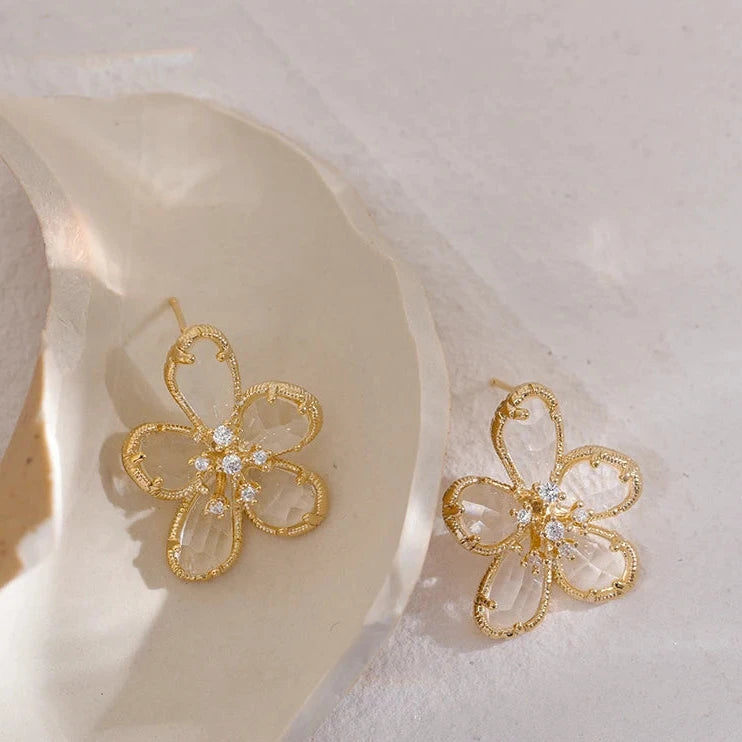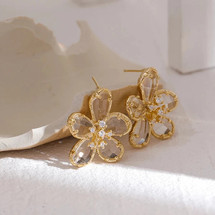 These trendy earrings feature a stunning flower design with sparkling cubic zirconia stones. Perfect for a gift or to add a touch of elegance to your outfit. They are so beautiful, shiny and show-stopping.