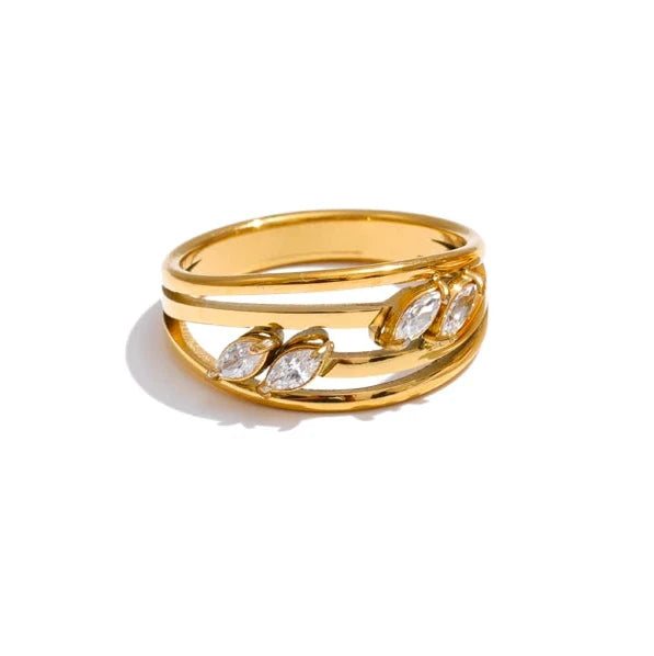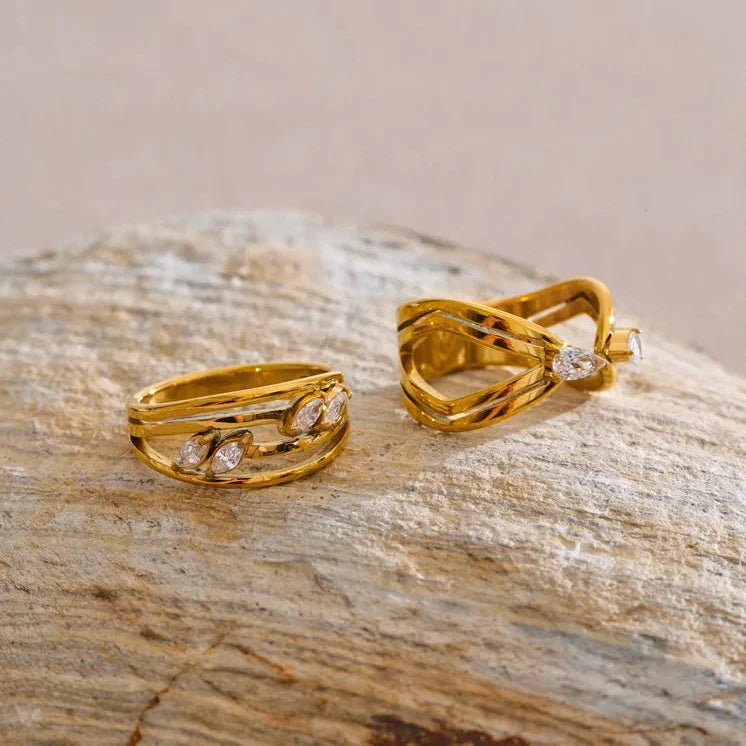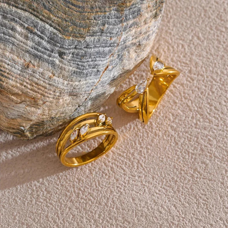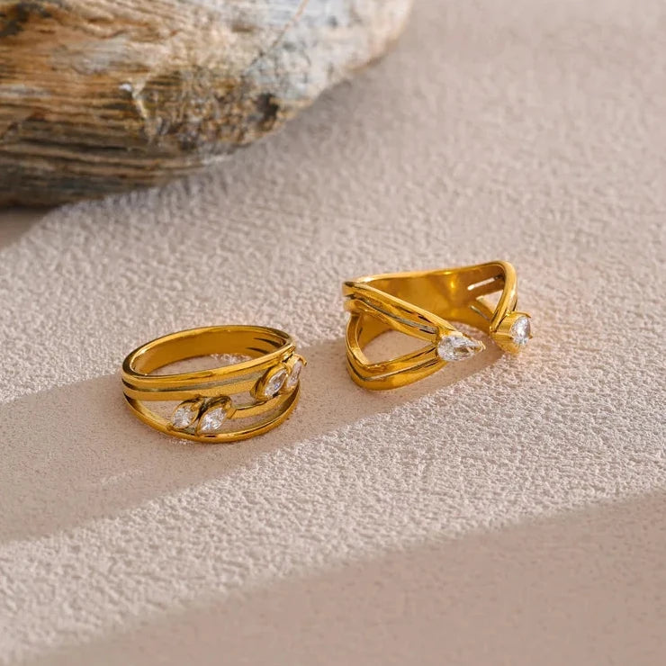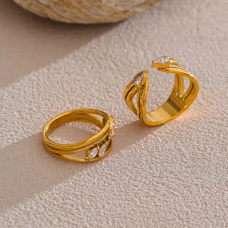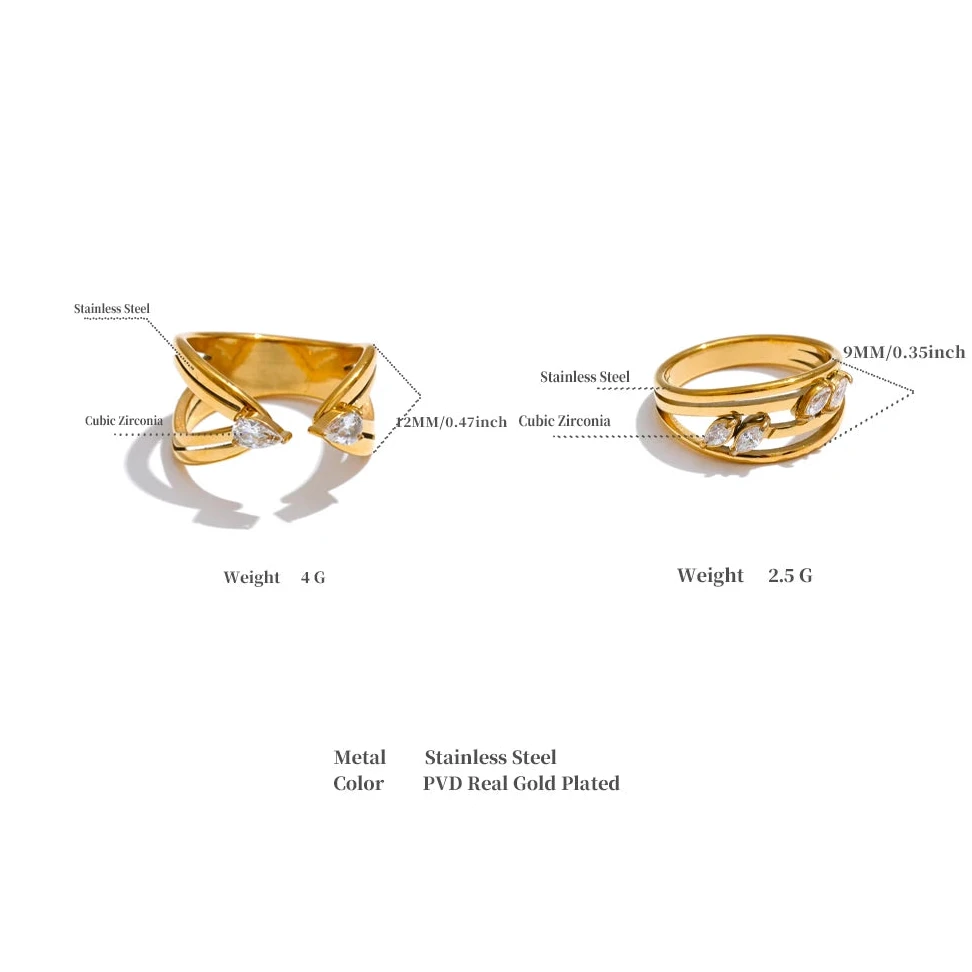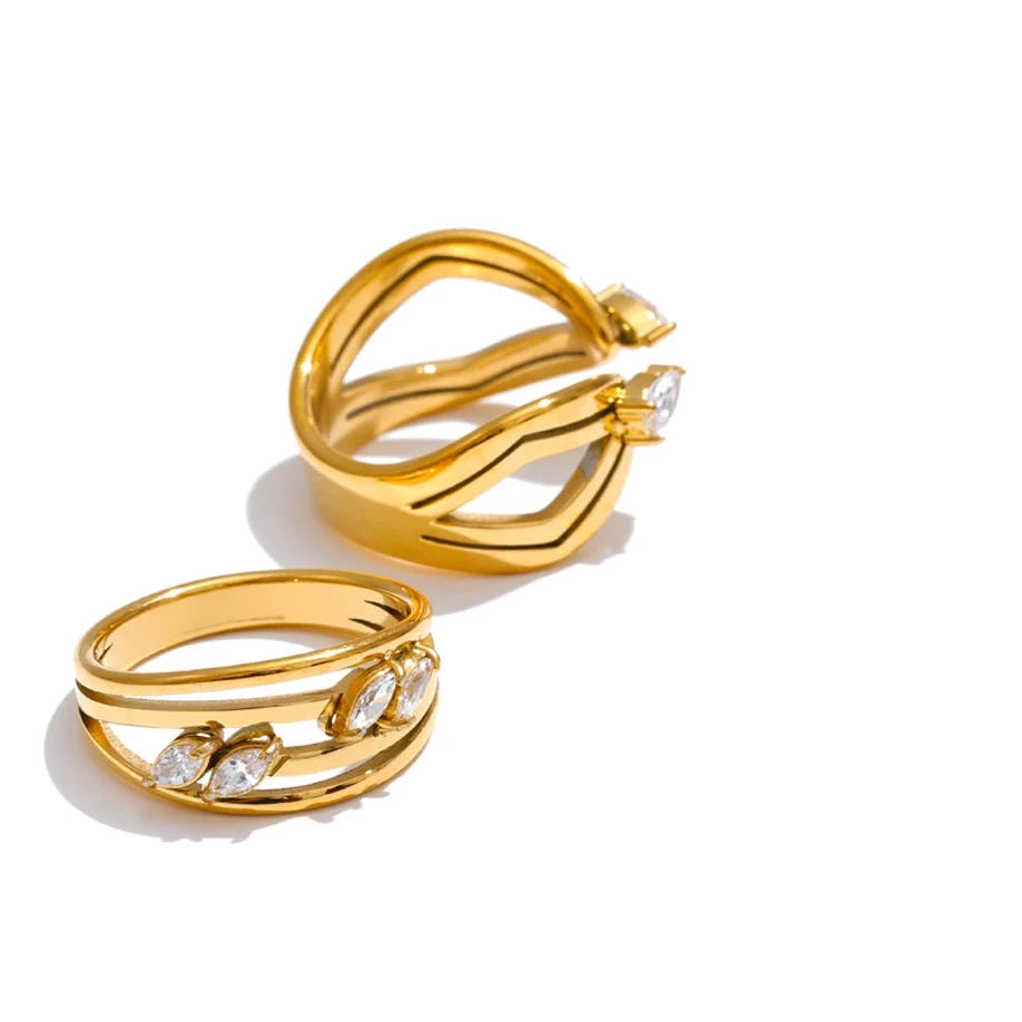 This exquisite ring combines delicate stainless steel with a zirconia-layered design, creating a lightweight yet durable piece. Its hollow geometric shape offers a modern, sophisticated aesthetic while being rust-proof for long-lasting shine.