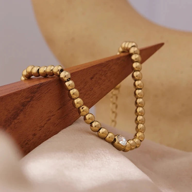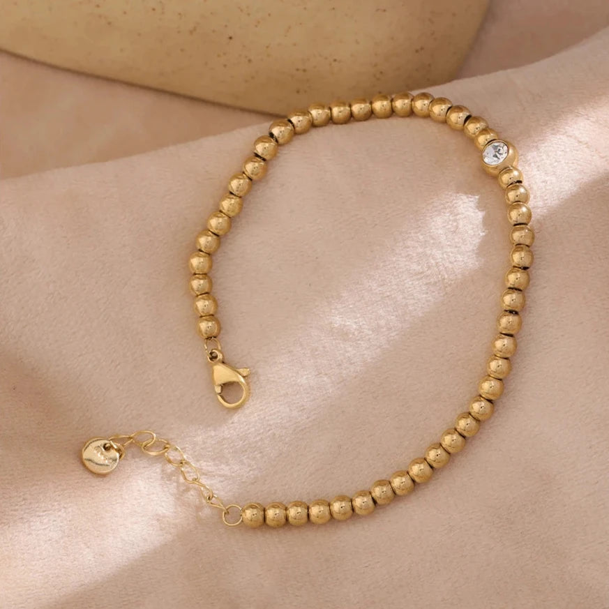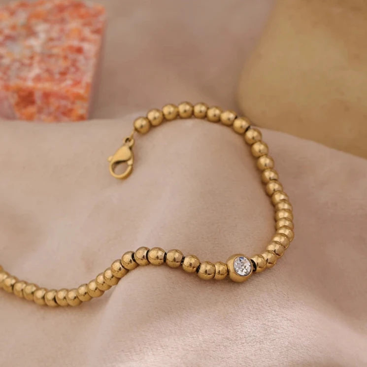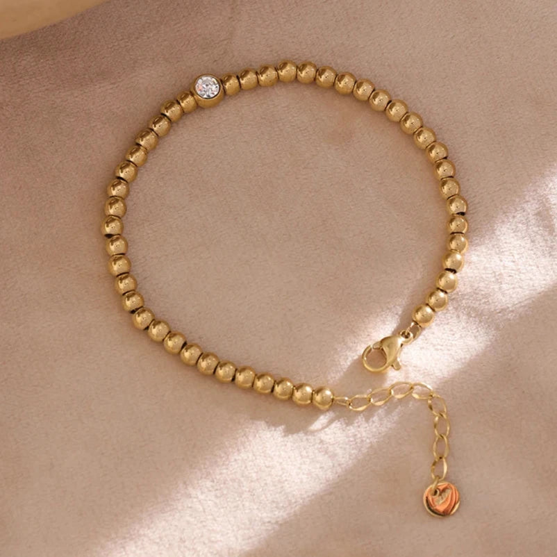 This trendy and elegant stainless steel bead chain bracelet features sparkling cubic zirconia jewelry. Made of high-quality, waterproof metal, this bracelet is both stylish and durable. Upgrade your style with this must-have accessory.