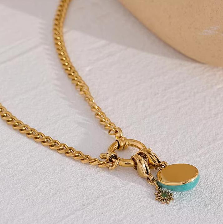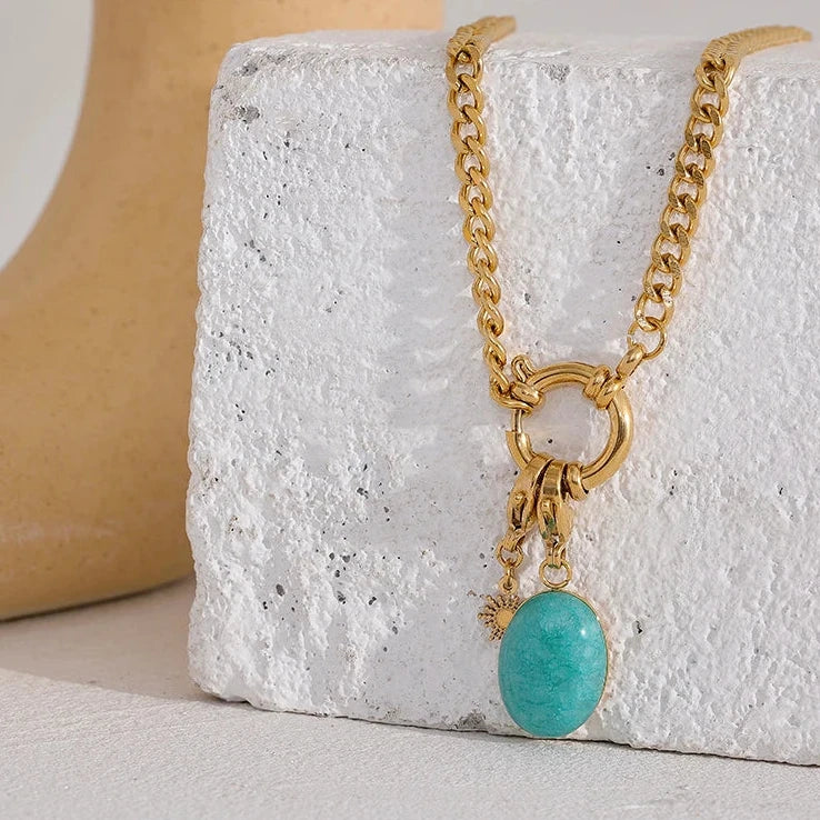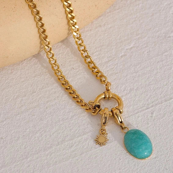 Made with high-quality materials, this waterproof necklace adds a touch of elegance and charm to any look. Its delicate design and natural stone detailing make it a must-have.