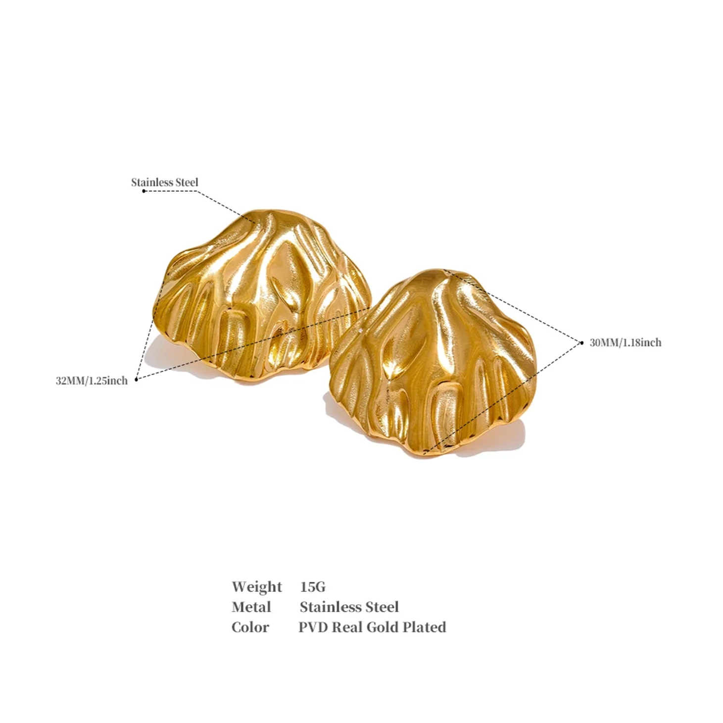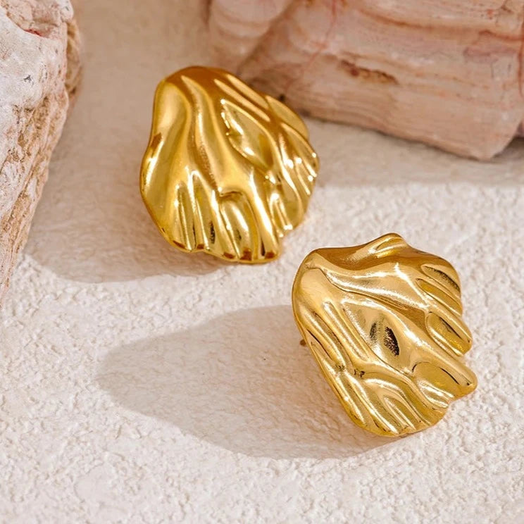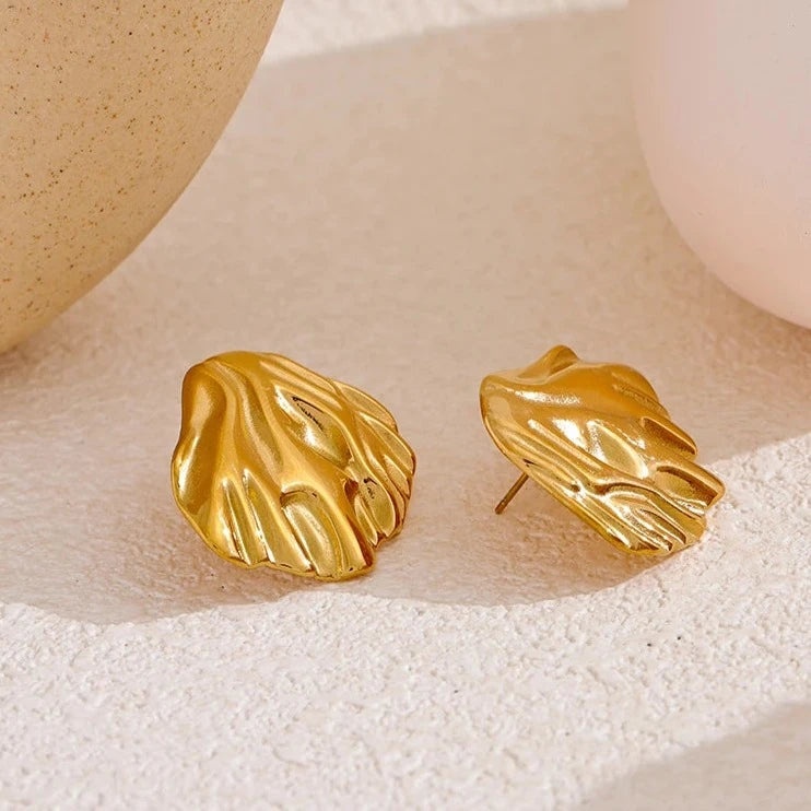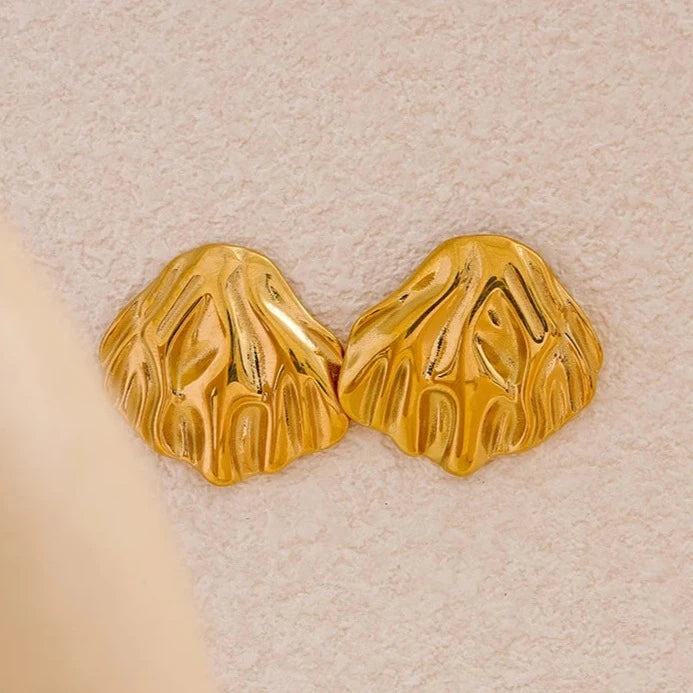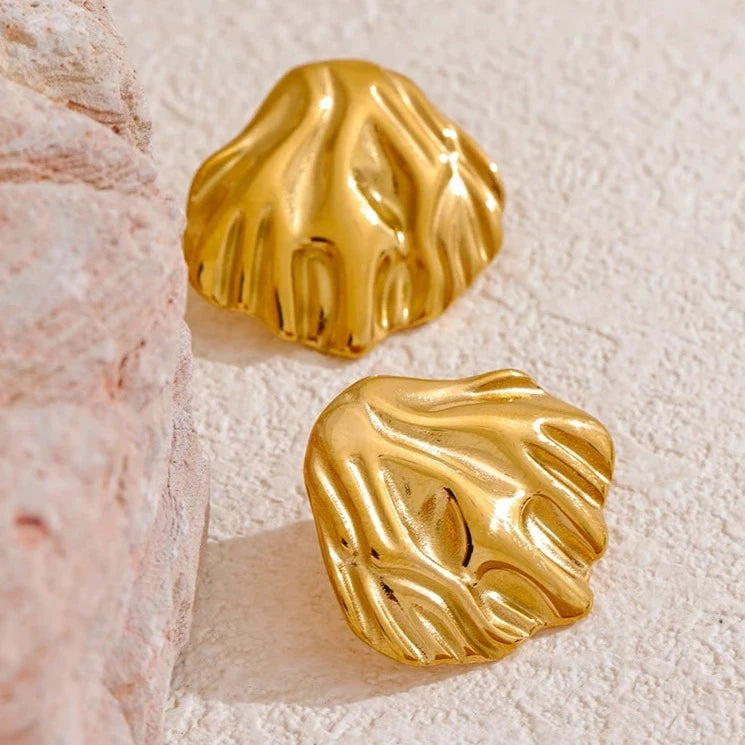 Aurela earrings feature a high-quality stainless steel metal shell design. These stud earrings are perfect for any season and are waterproof for everyday wear. Make a statement with these elegant and durable earrings.