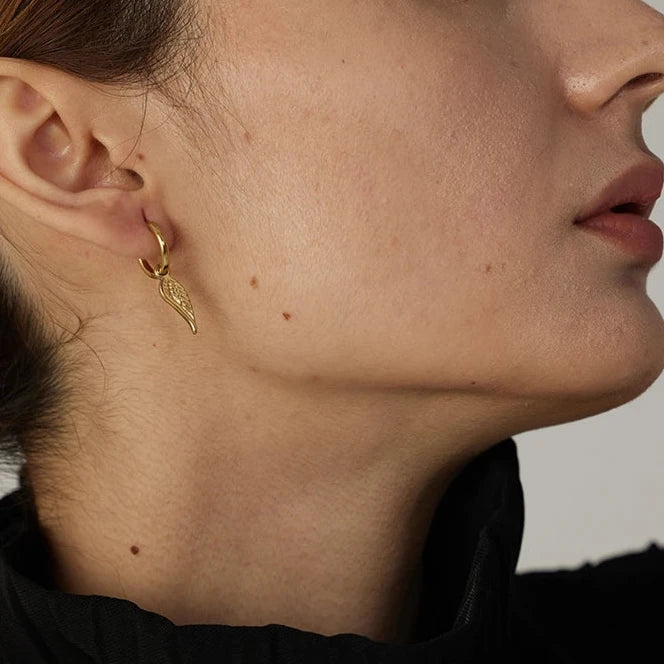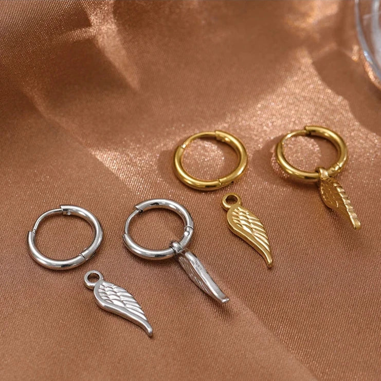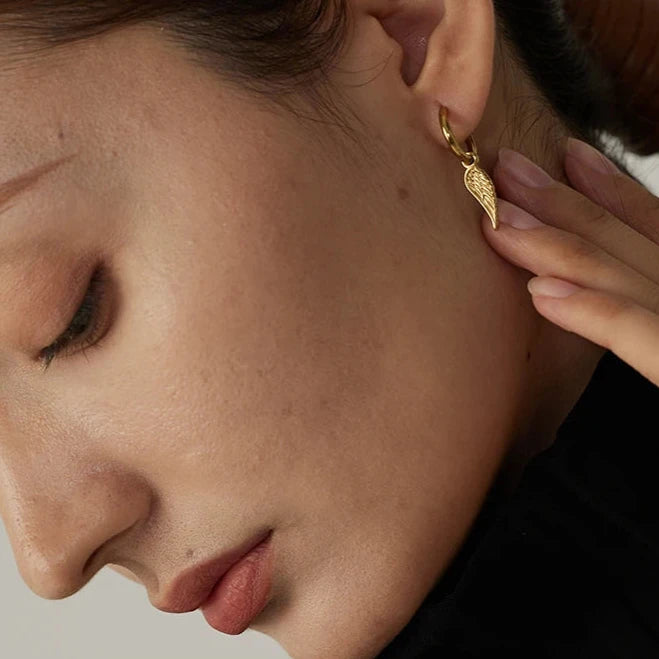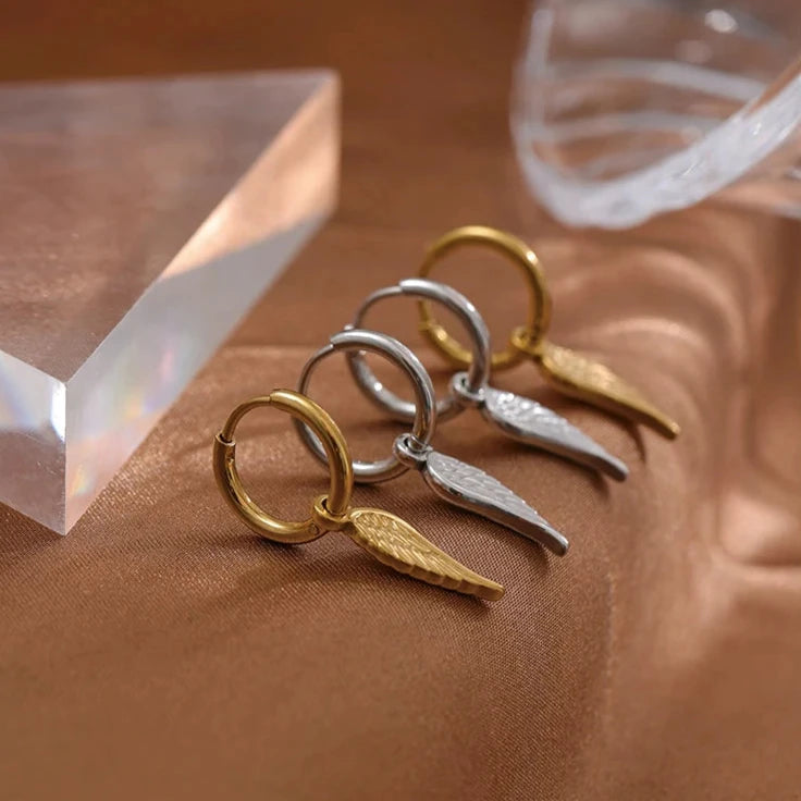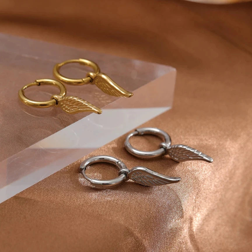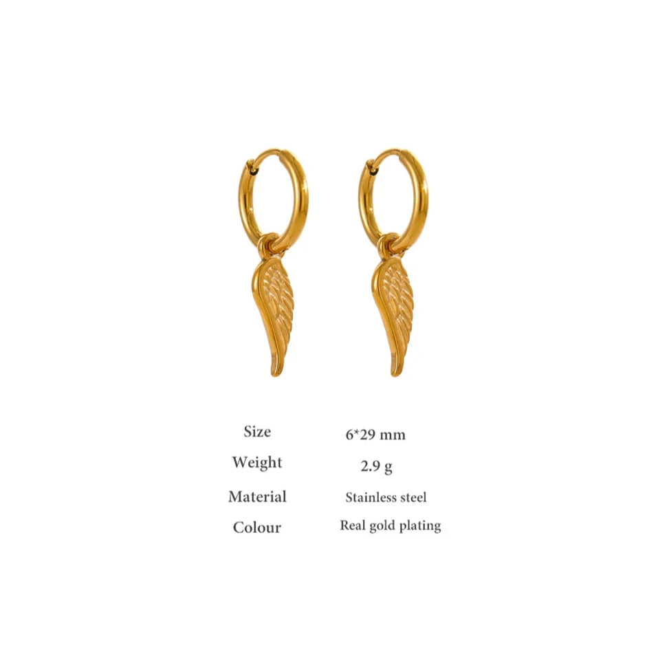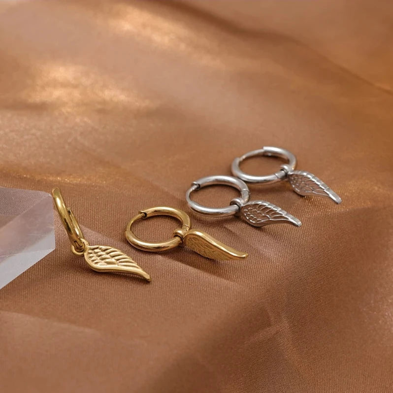 Made with durable stainless steel, these earrings feature a stylish wing design in a golden finish, making them suitable for any occasion. A perfect gift for anyone stylish and fashion-forward.