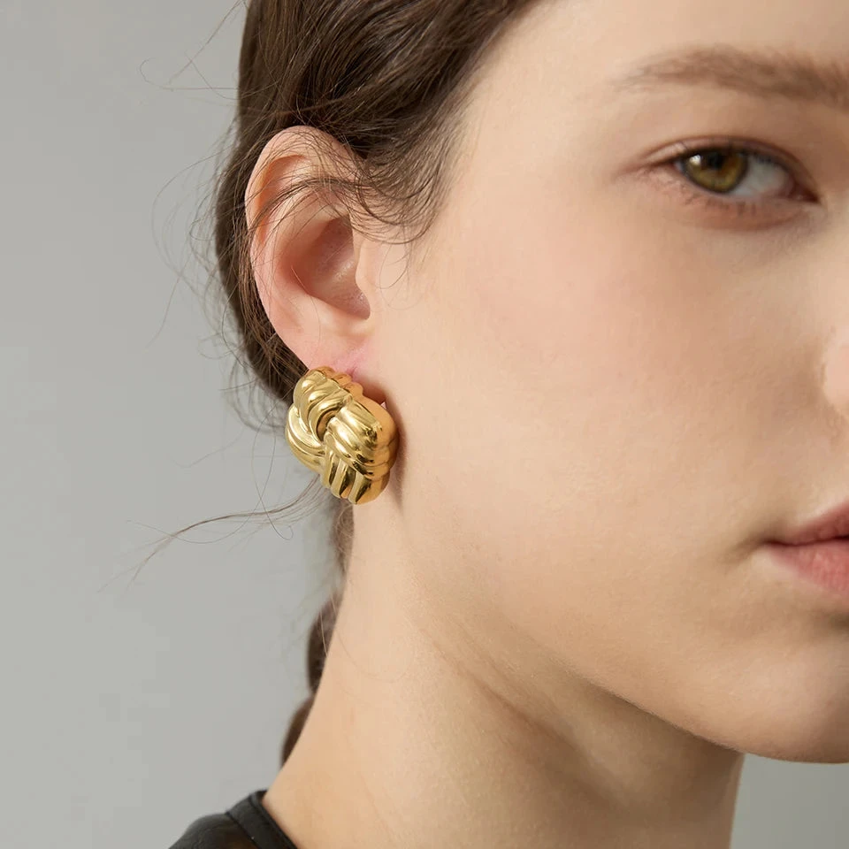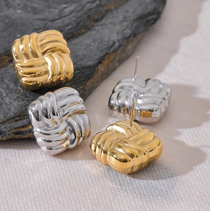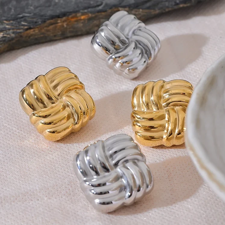 Crafted from high-quality stainless steel, the Elodie square stripe stud earrings combine durability with a sleek metal texture that resists tarnishing. Designed to prevent allergic reactions, these earrings offer a comfortable and safe wear for sensitive skin.