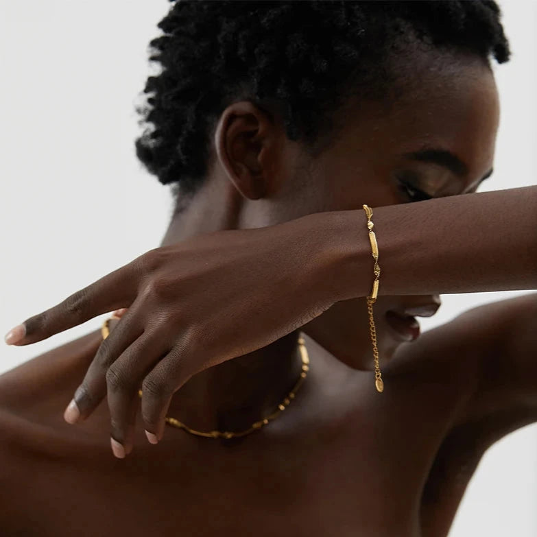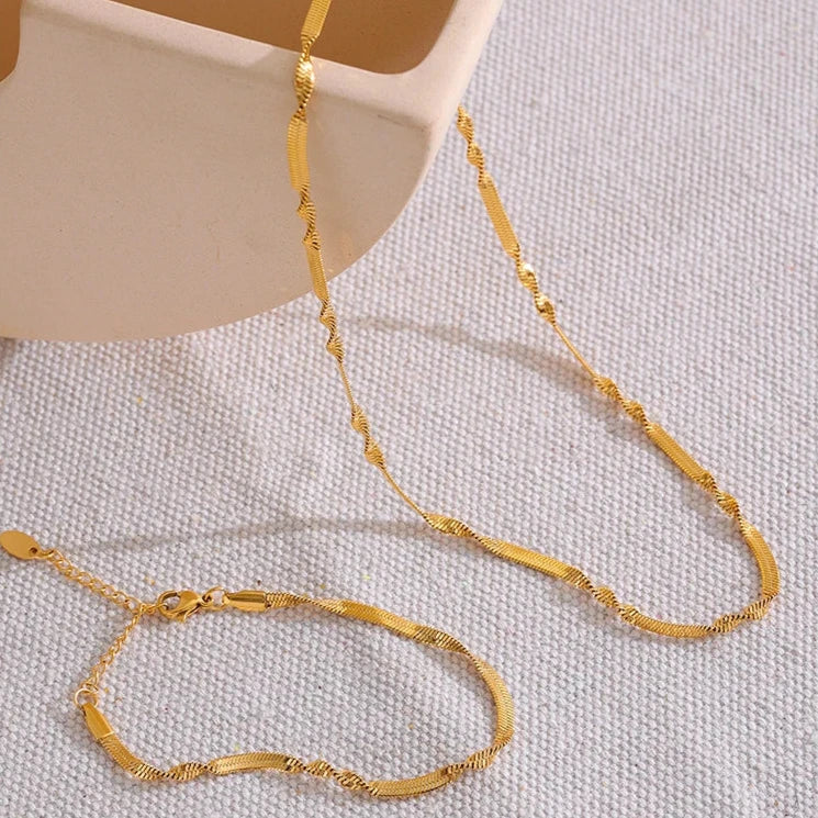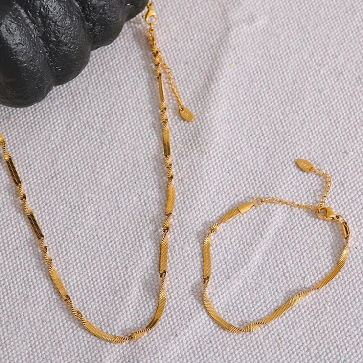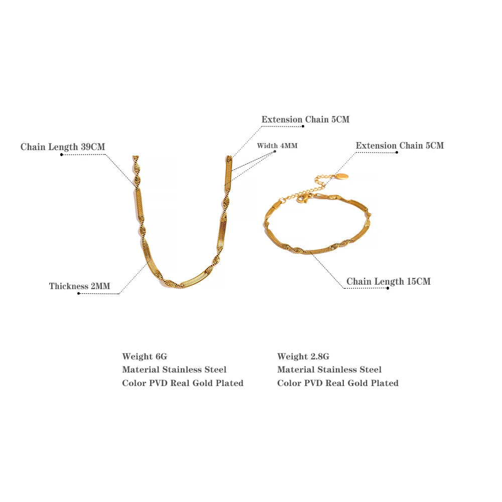 Made of high-quality stainless steel and plated with 18K gold, this set is perfect. The snake chain design adds a unique touch to your style. Complete your look with this matching necklace and bracelet.