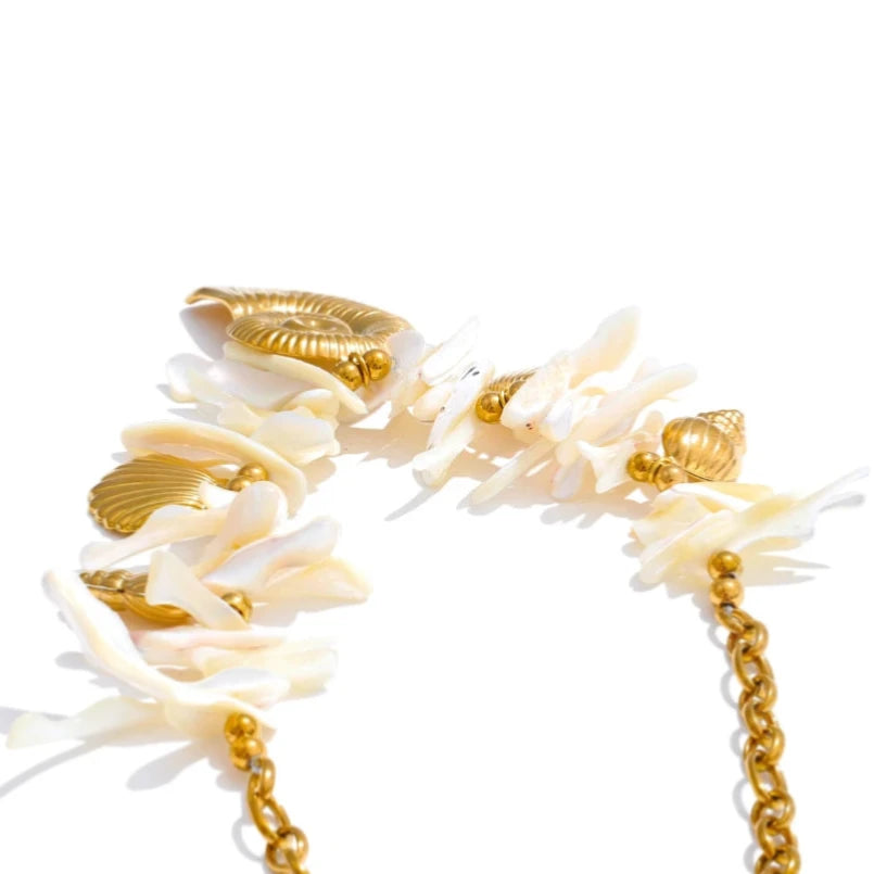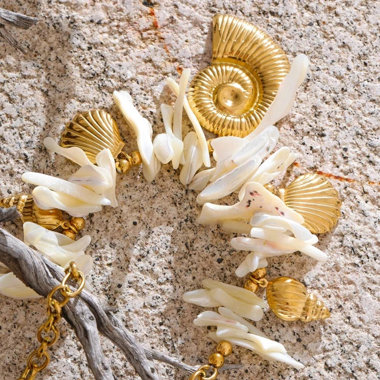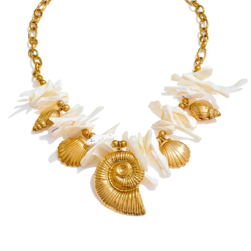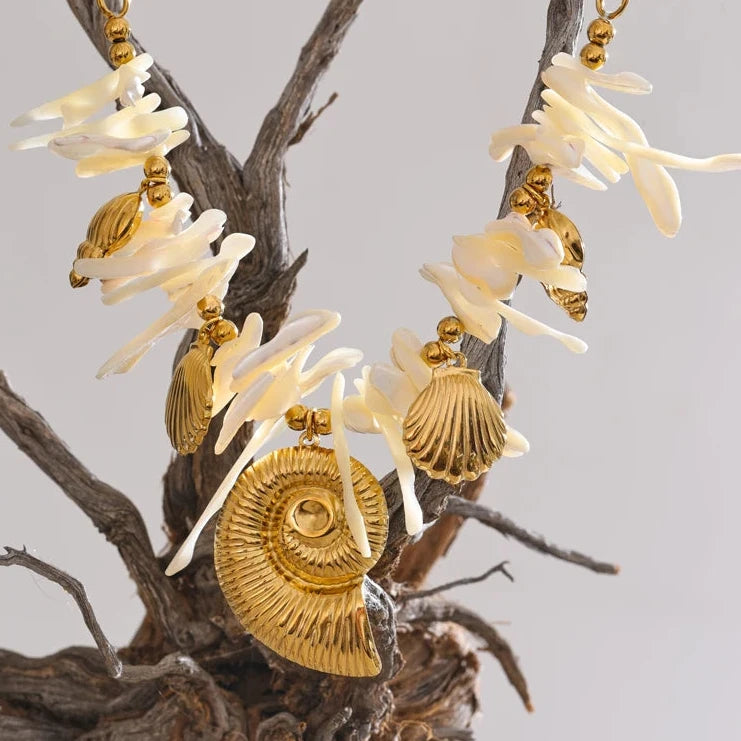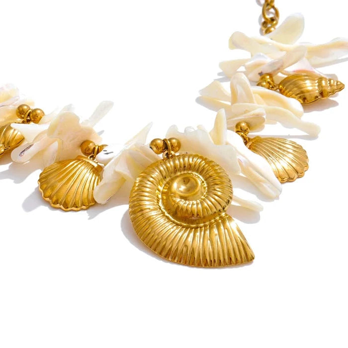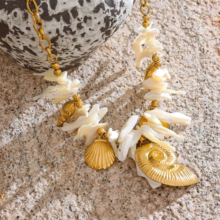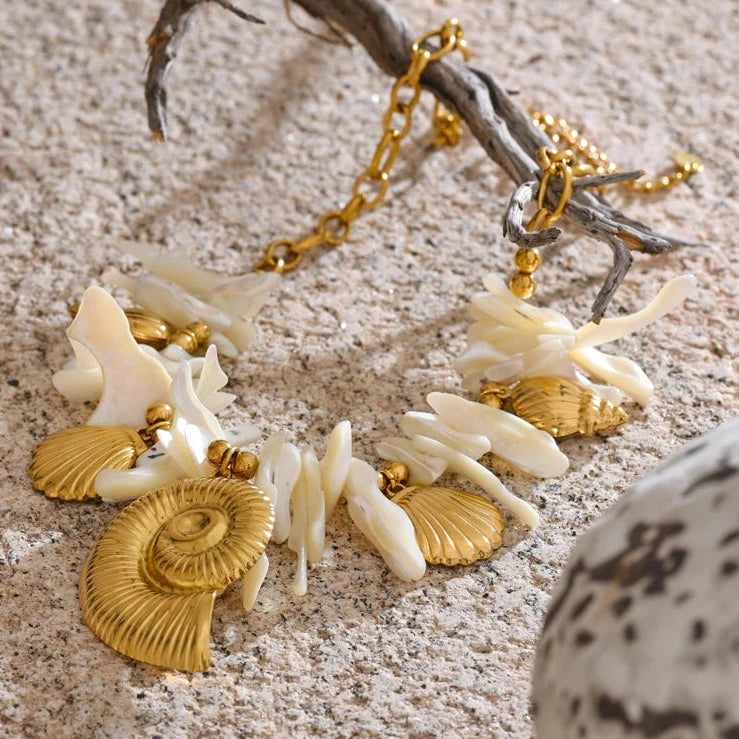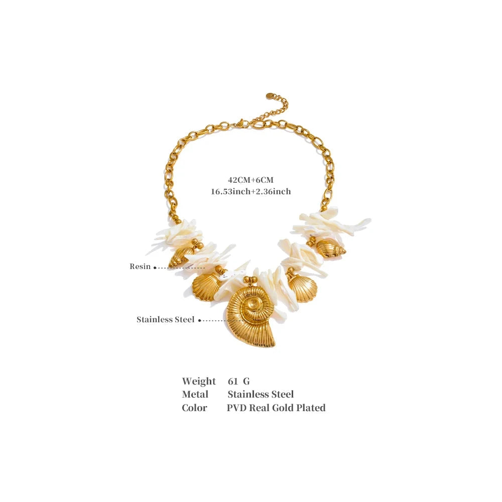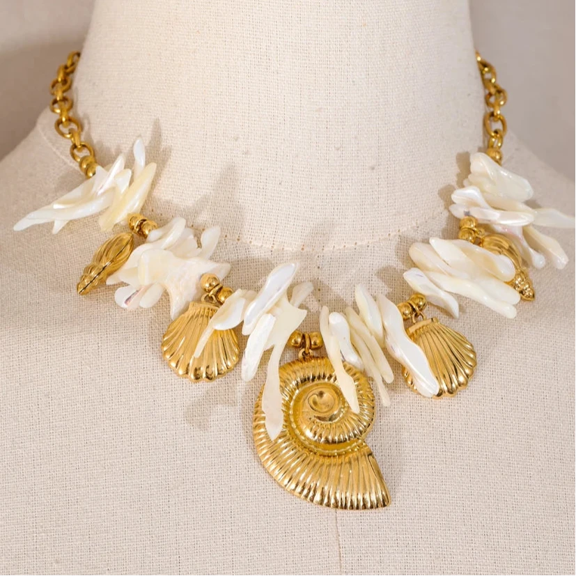 This summer, embrace elegance with a handmade drop necklace featuring a resin conch shell pendant. Ideal for holiday wear, it combines timeless craftsmanship with a fresh, coastal-inspired design.