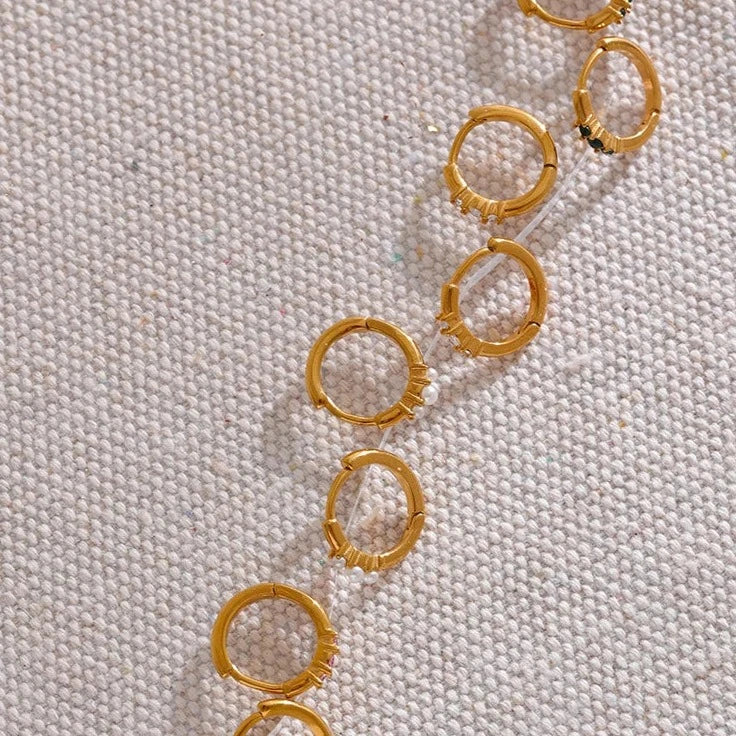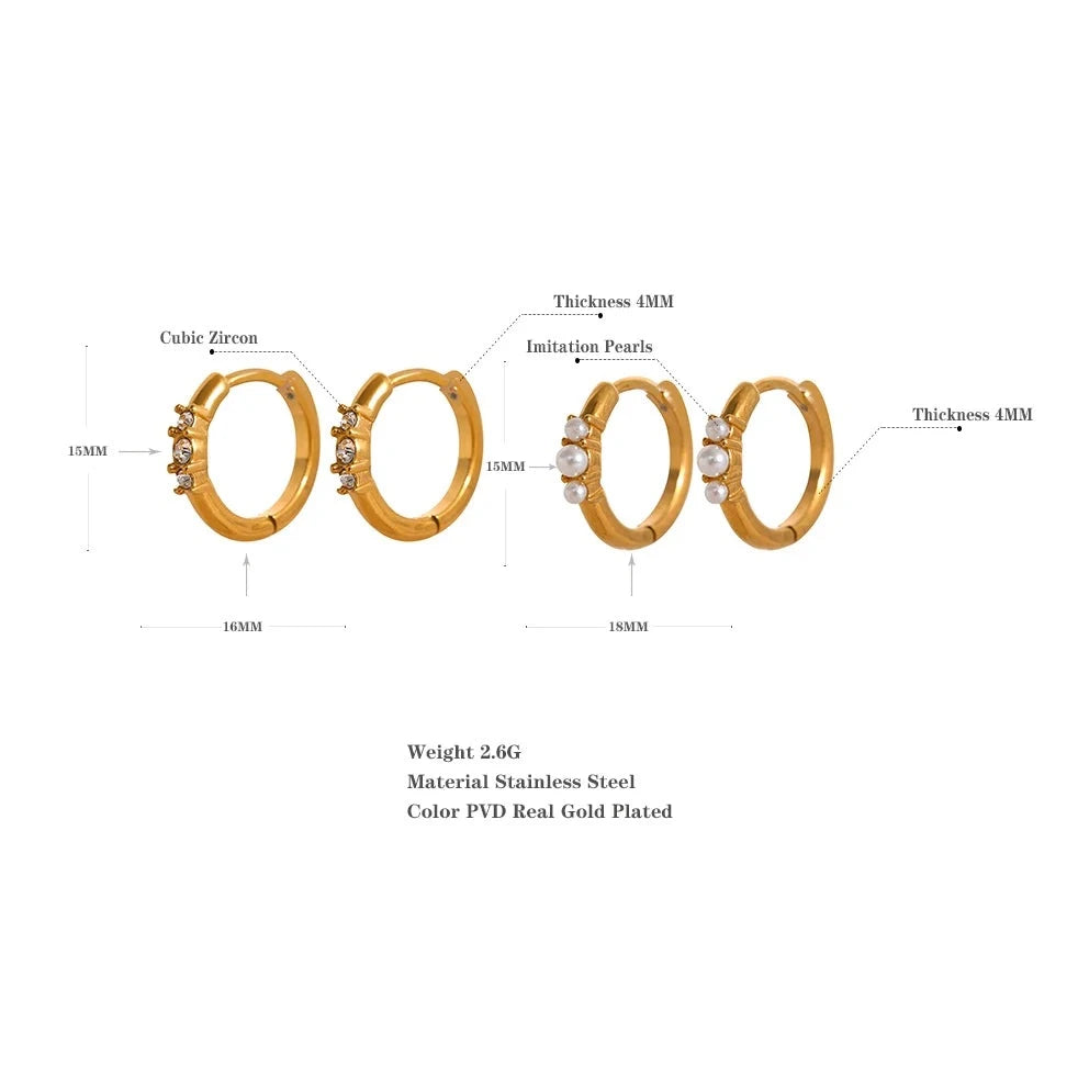 These small hoop huggie earrings are cute and sophisticated. They are made with tarnish-free stainless steel and sparkling cubic zirconia stones.