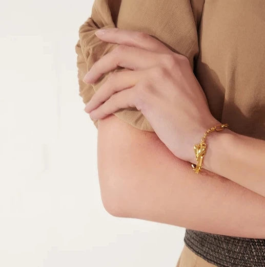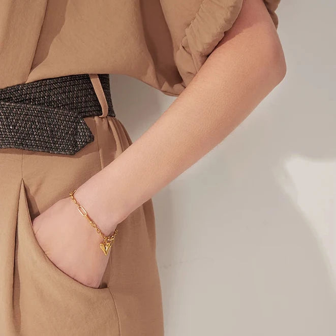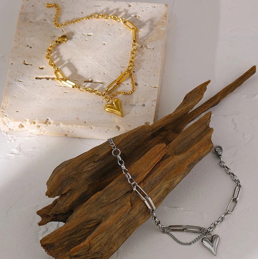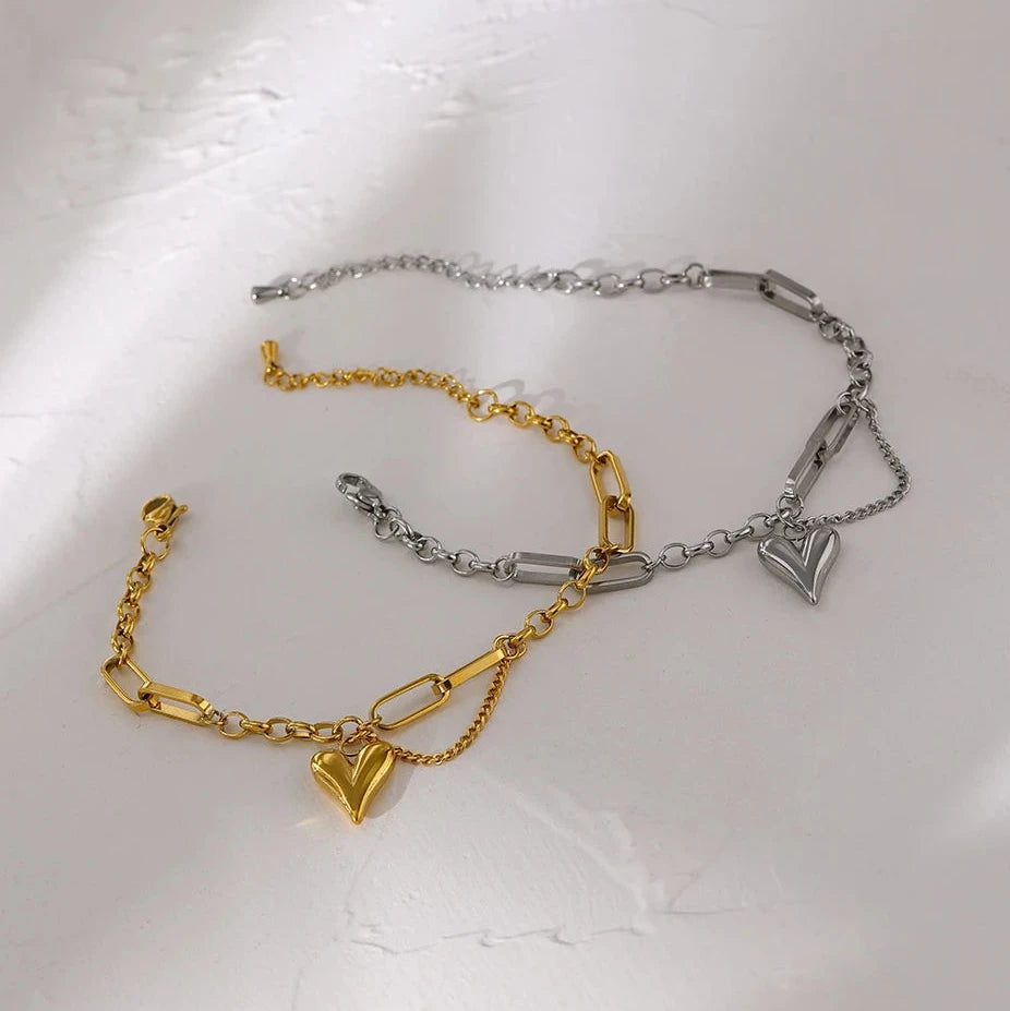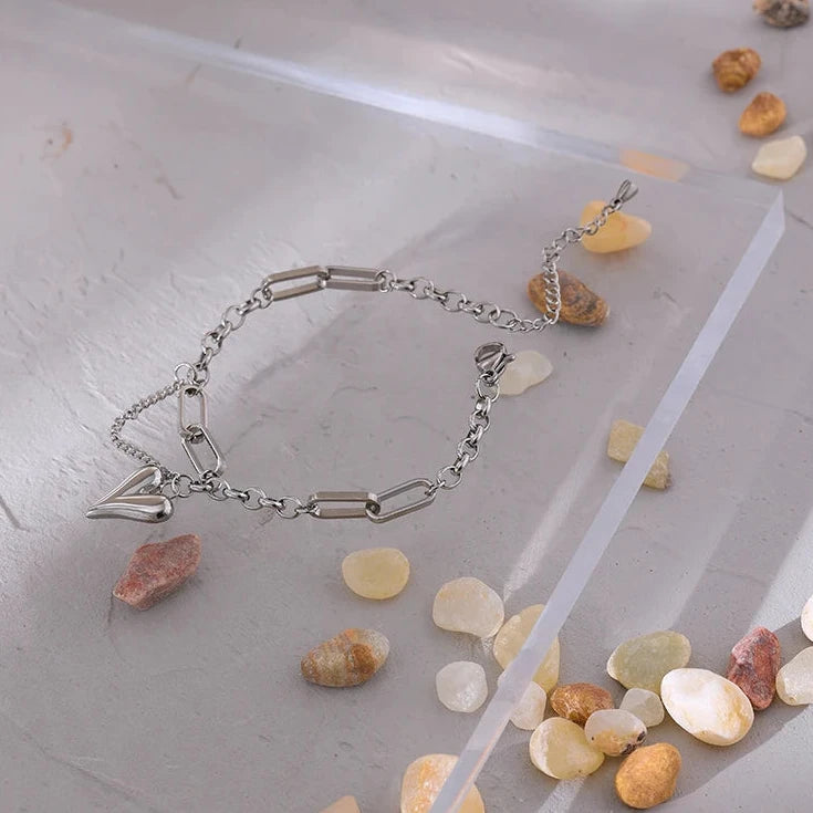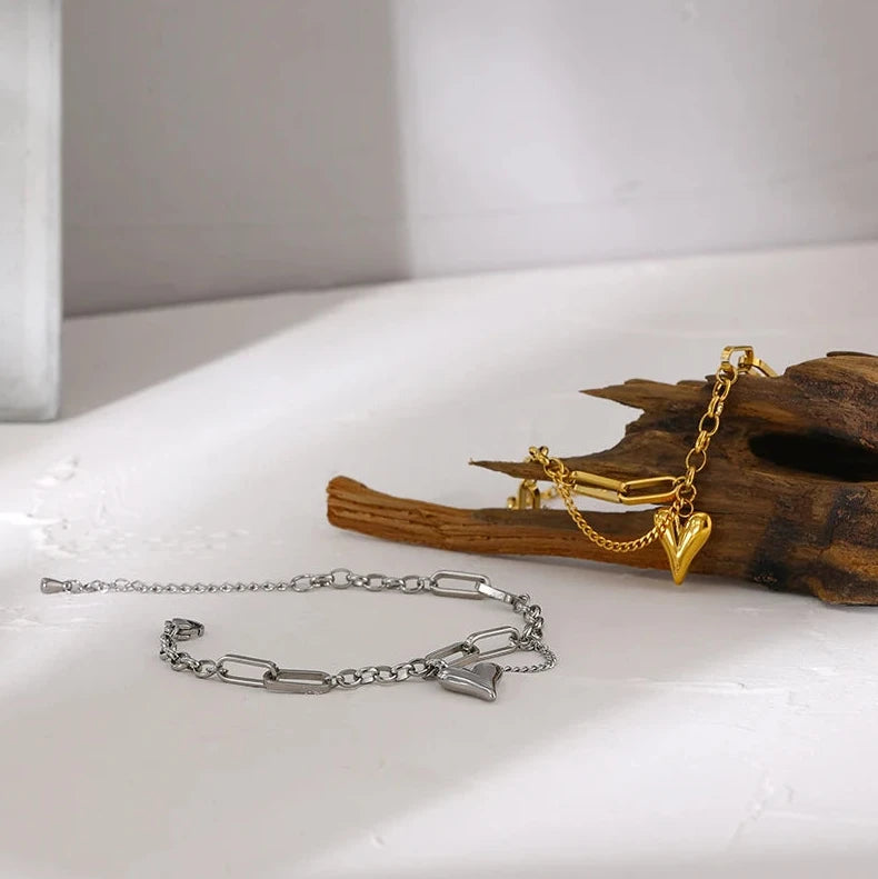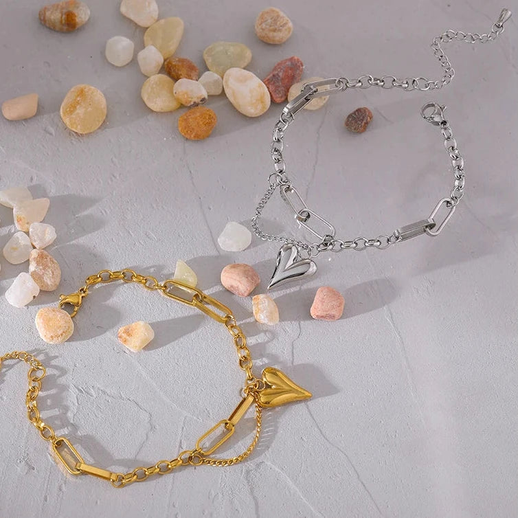 As a stainless steel double layered bracelet, this trendy heart charm bracelet adds a touch of style to any outfit. Its metal texture is both trendy and durable, making it the perfect accessory.