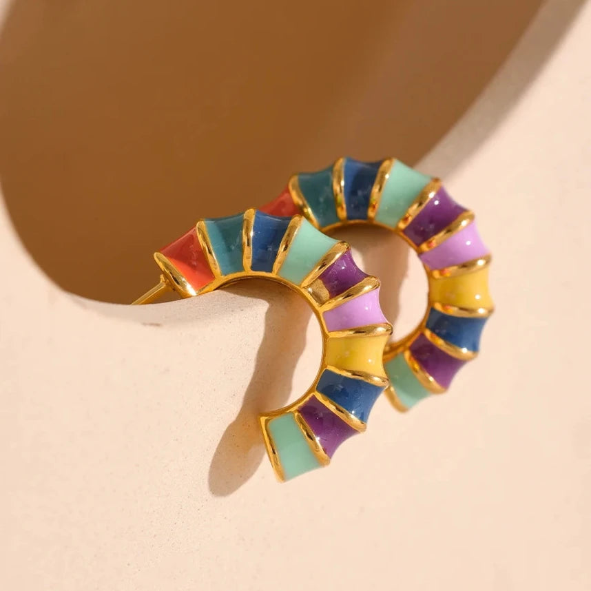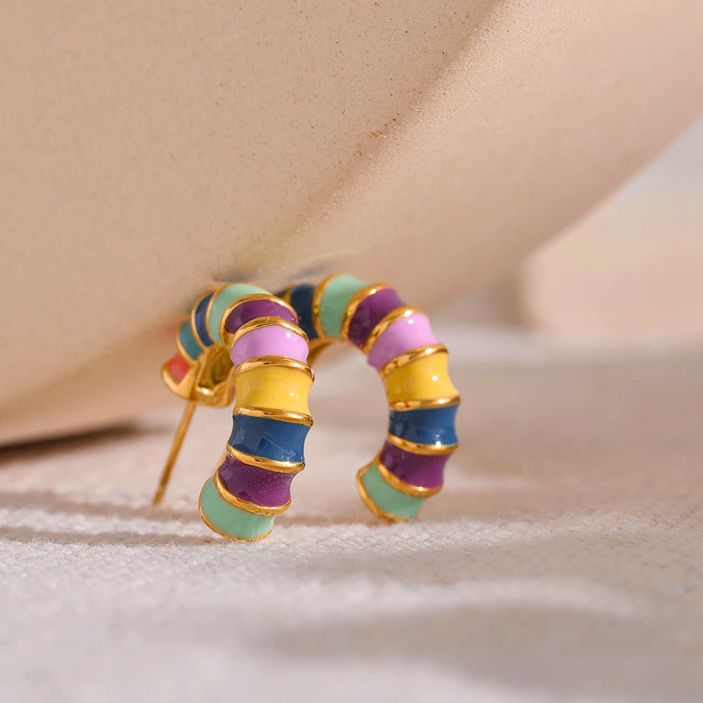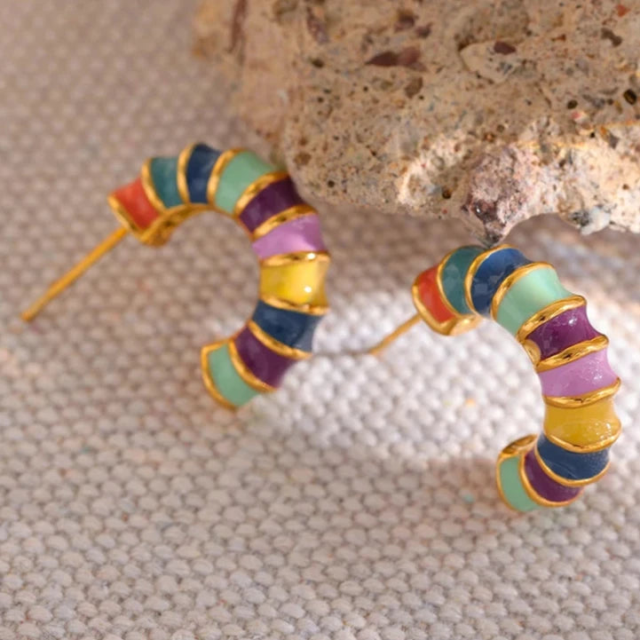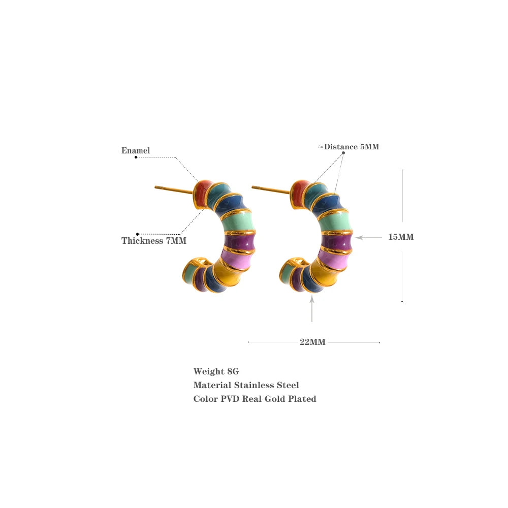 These unique and eye-catching waterproof enamel hoop earrings are made of stainless steel and add a touch of fun to any outfit with their colourful design and texture. Perfect for everyday wear or special occasions, these earrings are a must-have.