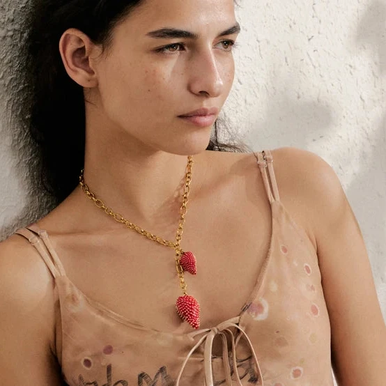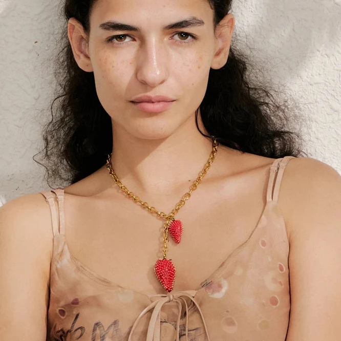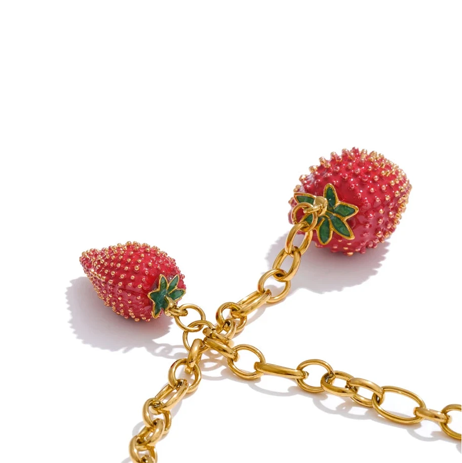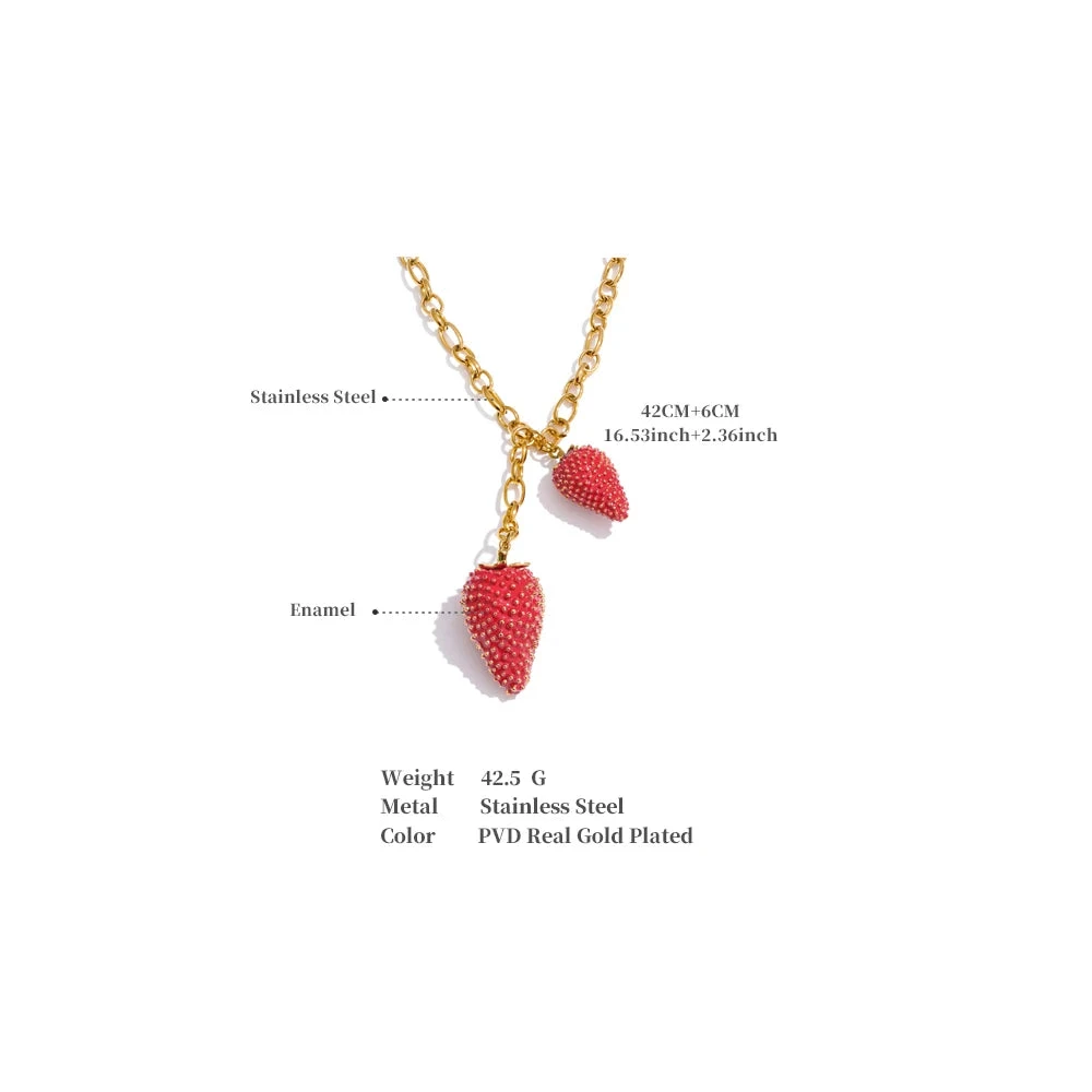 This stainless steel pendant necklace features a charming sweet red strawberry design, combining durability with a playful aesthetic. Waterproof and crafted for everyday wear, it offers lasting shine and resistance to moisture.