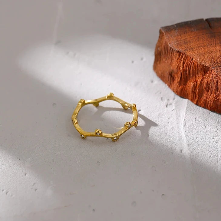 Add a touch of elegance to your outfit with this exquisite stainless steel ring. Featuring a sparkling cubic zirconia stone and a round textured design, this ring is the perfect accessory for any occasion. Made of high-quality materials, it will last for years to come.
