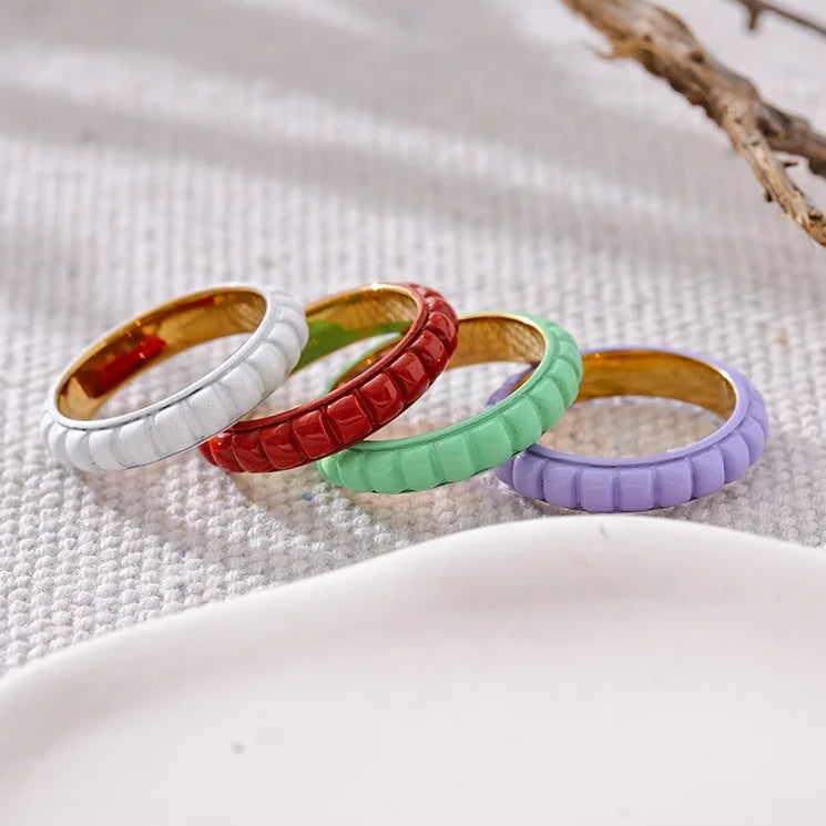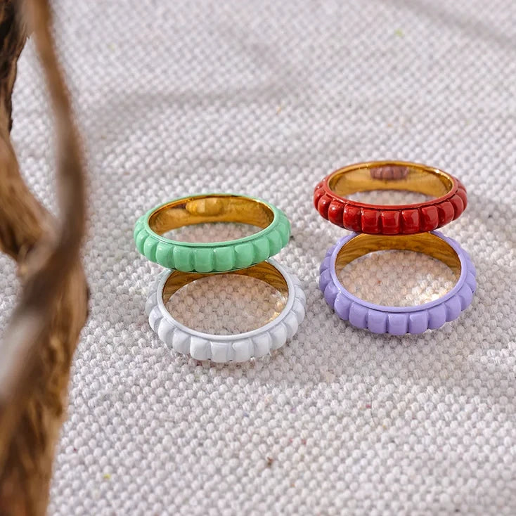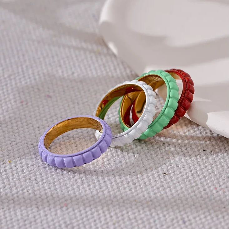 Made of high-quality stainless steel, this chic statement piece features a unique enamel design in white, red, green, and purple. Perfect as a gift for yourself or a loved one, this trendy ring will add a touch of sophistication and colour to any outfit.
