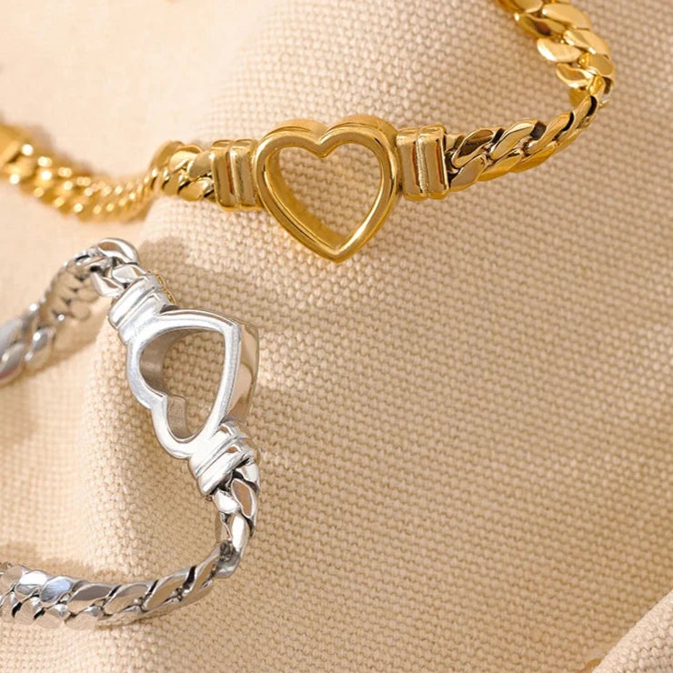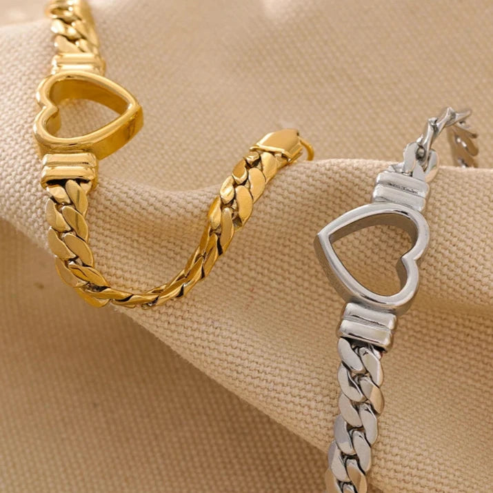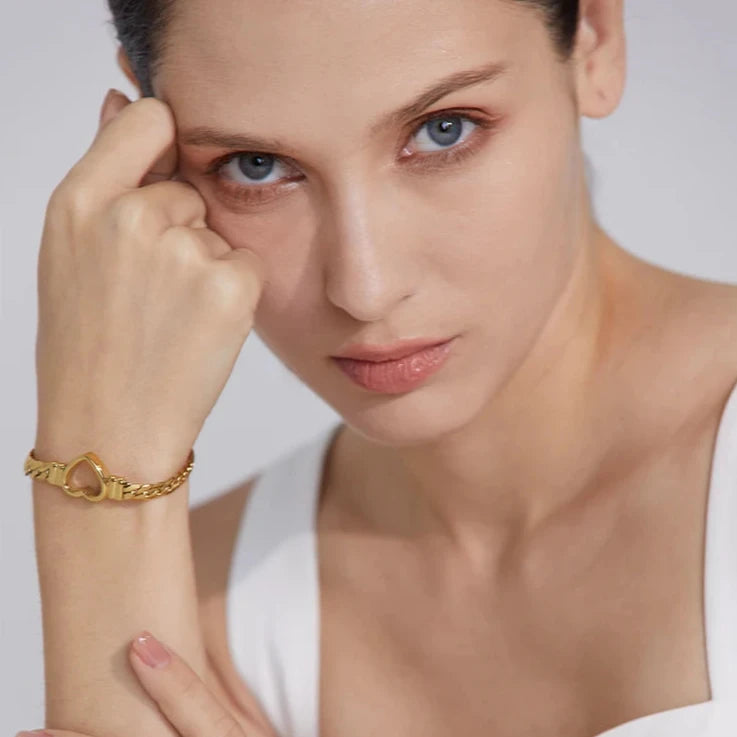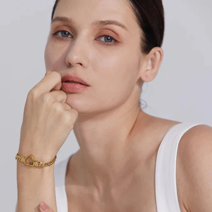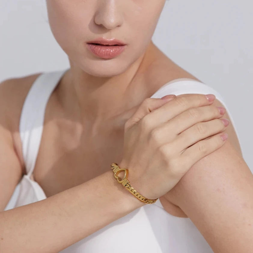 This high quality love heart cuban chain bracelet is made of stainless steel, making it both durable and waterproof. With its modern and elegant design, it is the perfect accessory for any outfit. Guaranteed to add a touch of sophistication to your style.